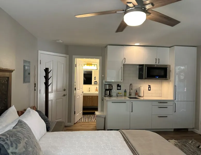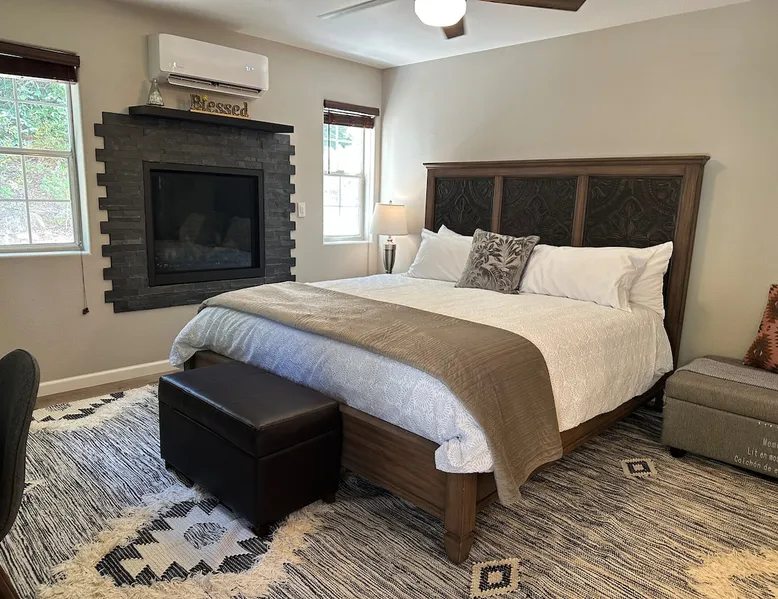 Stay in the Park. No day-use reservation needed! You've found the closest place to all the main Yosemite attractions! Skip the longer drive, slow traffic and gate waits Enjoy your Yosemite West cozy studio with attached kitchenette and private full bathroom. Feel the morning chill of the mountains - relax outside in your own sitting area and the breakfast is on us! You will have a private entrance,yard and free parking on site. Self check-in/check-out and no interaction with the host required! The space Cozy studio with King Bed, Fireplace, TV with wide selection of Dish channels, kitchenette and full bathroom. All essentials are provided: shampoo, toilet paper, linens, towels and more. Snacks and Continental breakfast will wait for you in the fridge on the arrival Guest access The entire studio, kitchenette, full bathroom and outside sitting area is for your exclusive use only! Not shared with anyone else. All doors are lockable. Entrance door has a Smart Lock with the Keypad - No interaction with the host required Other things to note Park Reservations: We guarantee park entrance for our guests even with the same day reservation - just present your Photo ID and go! Weather: snow, rain, ice and wind may happen, yet Yosemite gets mostly stable and beautiful weather Kitchenette: mini fridge, microwave, toaster, kettle and coffee machine are provided. BBQ grill with Side Burner for cooking is available right outside on your deck. Mobile Communication: In Yosemite West you will have reception for Verizon and Sprint only. ATT will not work, unless you are in the valley. Internet: WiFi is slow and free data is limited to 300MByte/device/24hours. You can buy more data for couple of dollars. Consider to bring Verizon JetPack (or use your Verizon phone hotspot) for cellular internet Entertainment: 65' TV with Dish Satellite High Definition choice of channels. Service can be interrupted (ie snow on the dish). Consider to download your content when home on your laptop and connect it to our SmartTV through HDMI. Cooling/Heating: We have added window AC in your suite. You will have full control of it. The heating is central - send a message to adjust. In addition - The fireplace in the studio can be used for ambiance and heating.