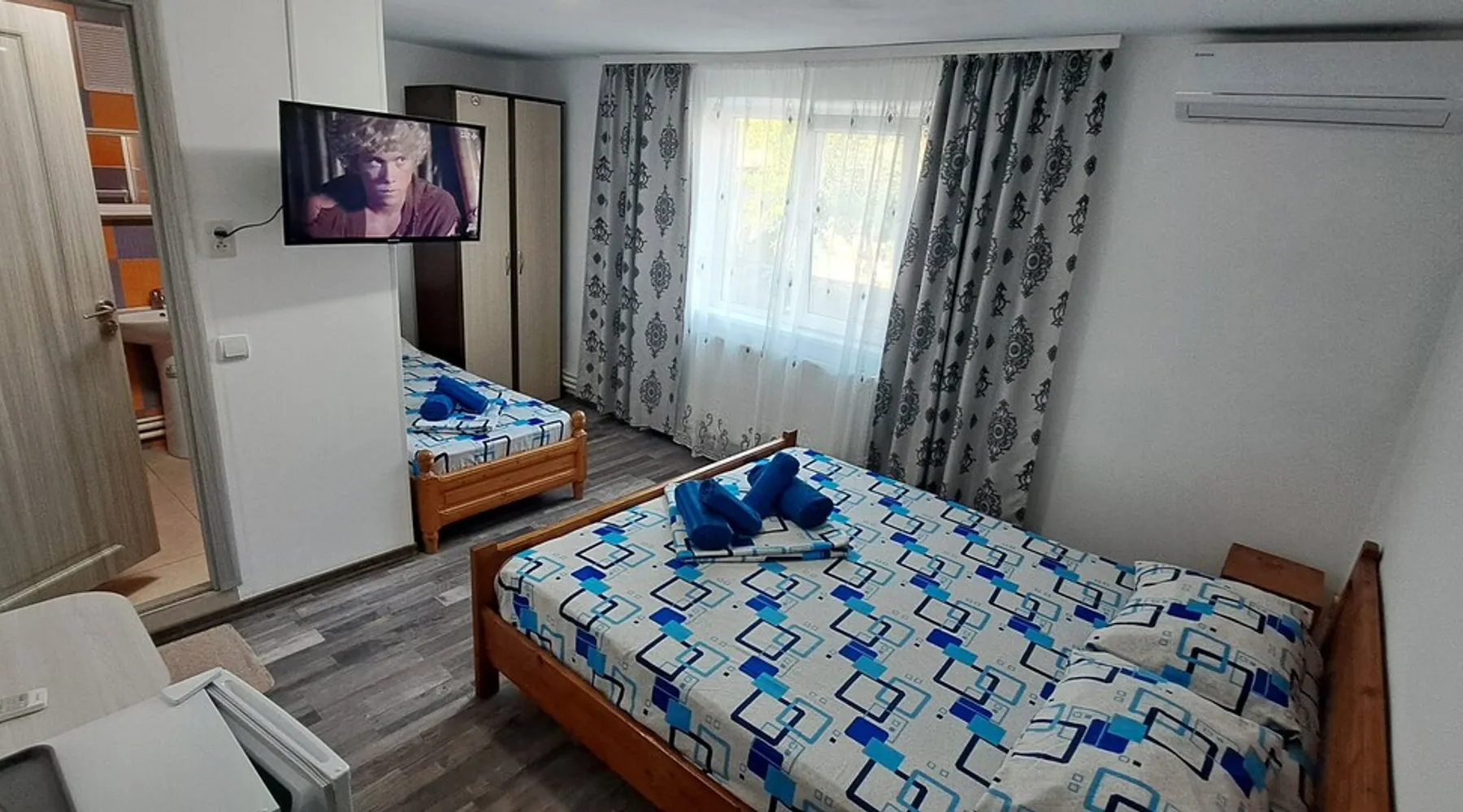Come to the sea! Casa Nikolas offers you for rent 4 rooms in 2 Mai Resort, 6 min walk to the beach,3 min to restaurants,pizzeria on the hearth. We have 2 triple rooms, 2 double rooms. Each room has a private bathroom,Refrigerator,Air conditioning,Smart TV and wi-fi. Large gazebo: Barbecue,Stove with oven, microwave, sink,fridge and Smartv, also for children is set up a Playground.At this property you will find family rooms and a children's playground. The space Reservations at tel no: zero seven three four eight nine five eight eight three. Come to the sea! Casa Nikolas offers you for rent 4 rooms in 2 Mai Resort, 6 min walk to the beach,3 min to restaurants,pizzeria on the hearth and to shops. We have 2 triple rooms, 2 double rooms. Each room has a private bathroom,Refrigerator,Air conditioning,Smart TV and wi-fi. Large gazebo: Barbecue,Stove with oven, microwave,sink,fridge and smart tv,dishes. grill accessories and kitchen. Also for children a Playground is set up. We provide parking! Check-in - 2pm Check out - 11 AM The booking confirmation is made by advance payment. We do not receive Vauchere for vacation. We are waiting for you to spend a pleasant and relaxing holiday! Casa Nikolas is located in 2 Mai, 2.5 km from Amphora Beach and features accommodation with a garden, free private parking, barbecue facilities and a terrace. Also at this property you will find family rooms and a children's playground. The accommodation has a front desk open 24/7. Access to people who are not staying is not allowed. Guest access All the space seen in photos. During your stay Phone or at the accommodation.