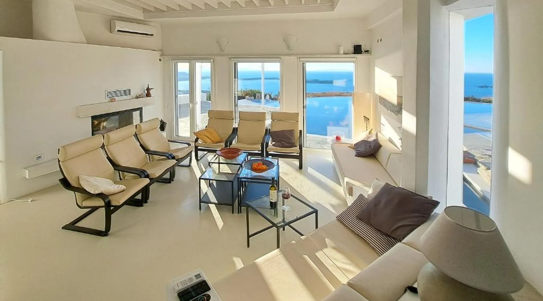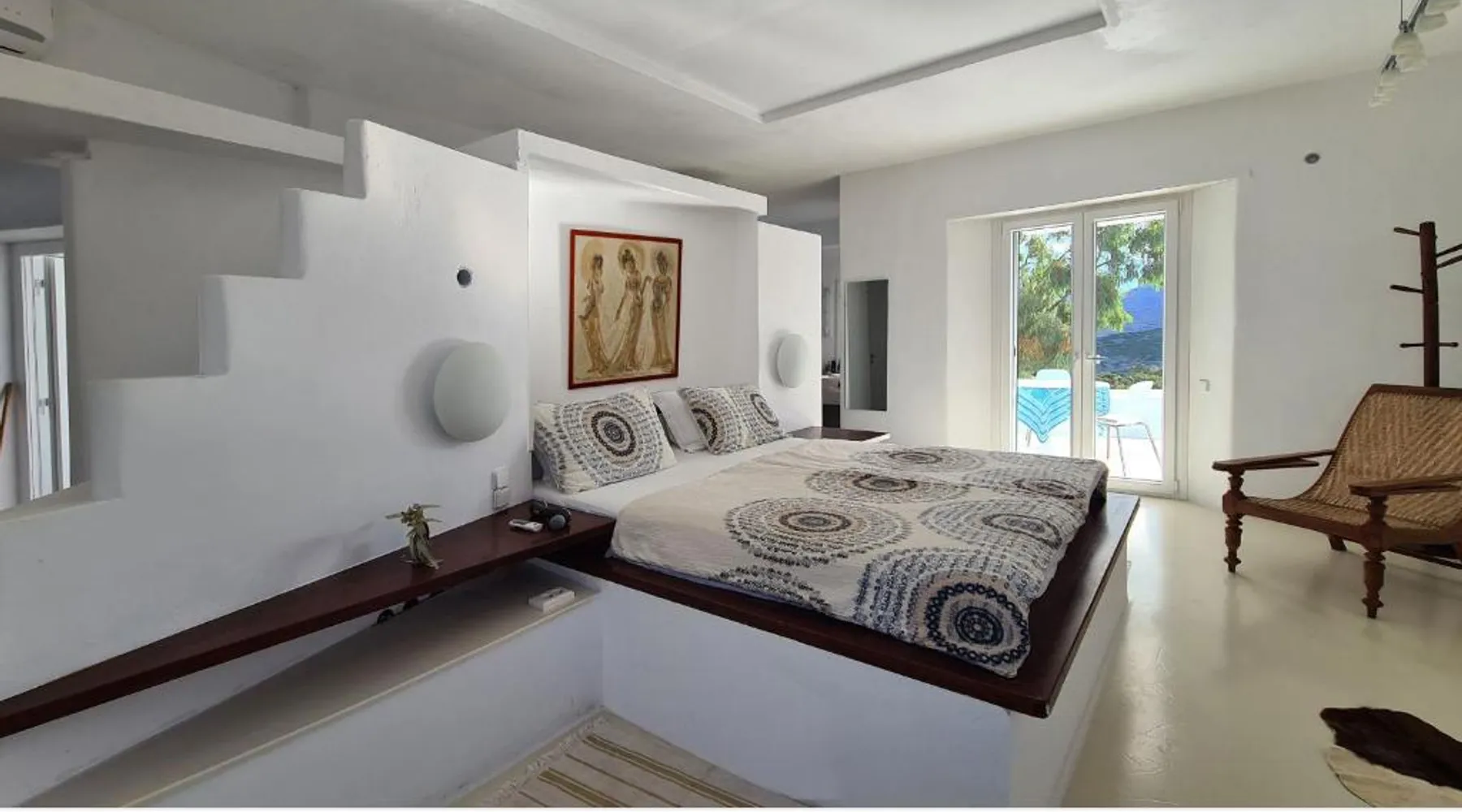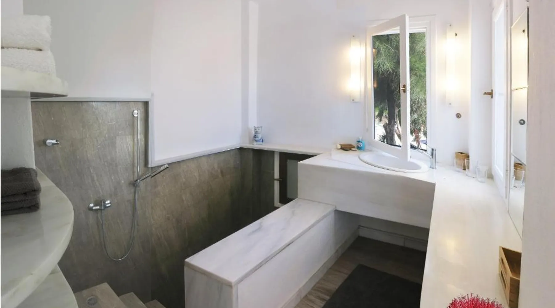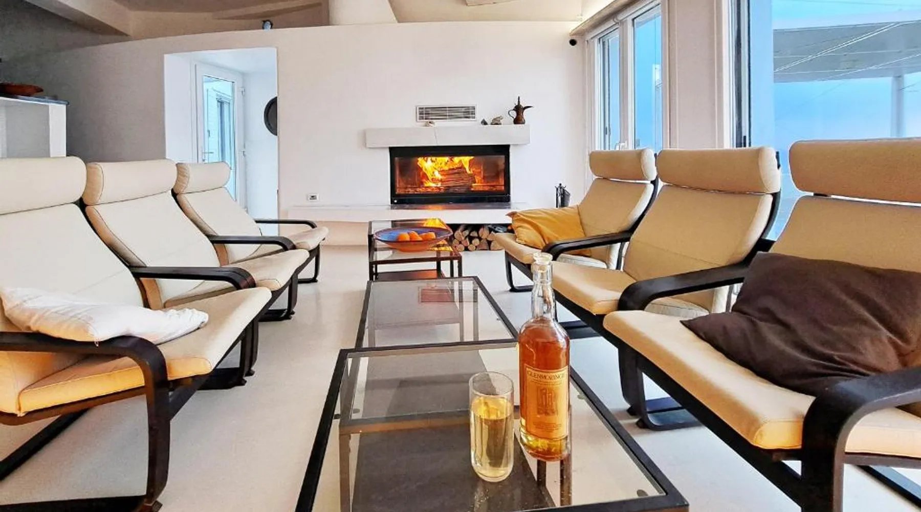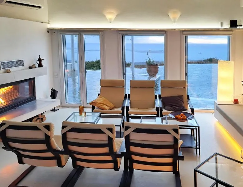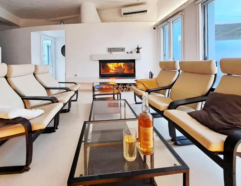 Spacious Accommodations: The SPA in Parikia offers a spacious villa with five bedrooms and four bathrooms. Guests enjoy sea views, a terrace, balcony, and a fully equipped kitchen. Wellness Facilities: The property features a hot spring bath, infinity swimming pool, sauna, and spa and wellness center. Additional amenities include a steam room, hammam, and indoor play area. Leisure Activities: Guests can relax on the sun terrace, enjoy the open-air bath, and play in the kids' pool. The bar provides a perfect spot for socializing. Convenient Location: Located 6.2 mi from Paros National Airport, The SPA is a short walk from Parikia Beach and close to the Church of Ekatontapyliani. Nearby attractions include the Archaeological Museum and Venetian Harbor. The pool with a view and fireplace are the standout features of this villa. This spacious villa features 2 living rooms, 5 separate bedrooms and 4 bathrooms with a shower and free toiletries. Guests will find a stovetop, a refrigerator, a dishwasher and kitchenware in the well-fitted kitchen. The villa also comes with a barbecue. The air-conditioned villa features a flat-screen TV with satellite channels, a washing machine, a private entrance, soundproof walls as well as sea views. The unit has 8 beds.