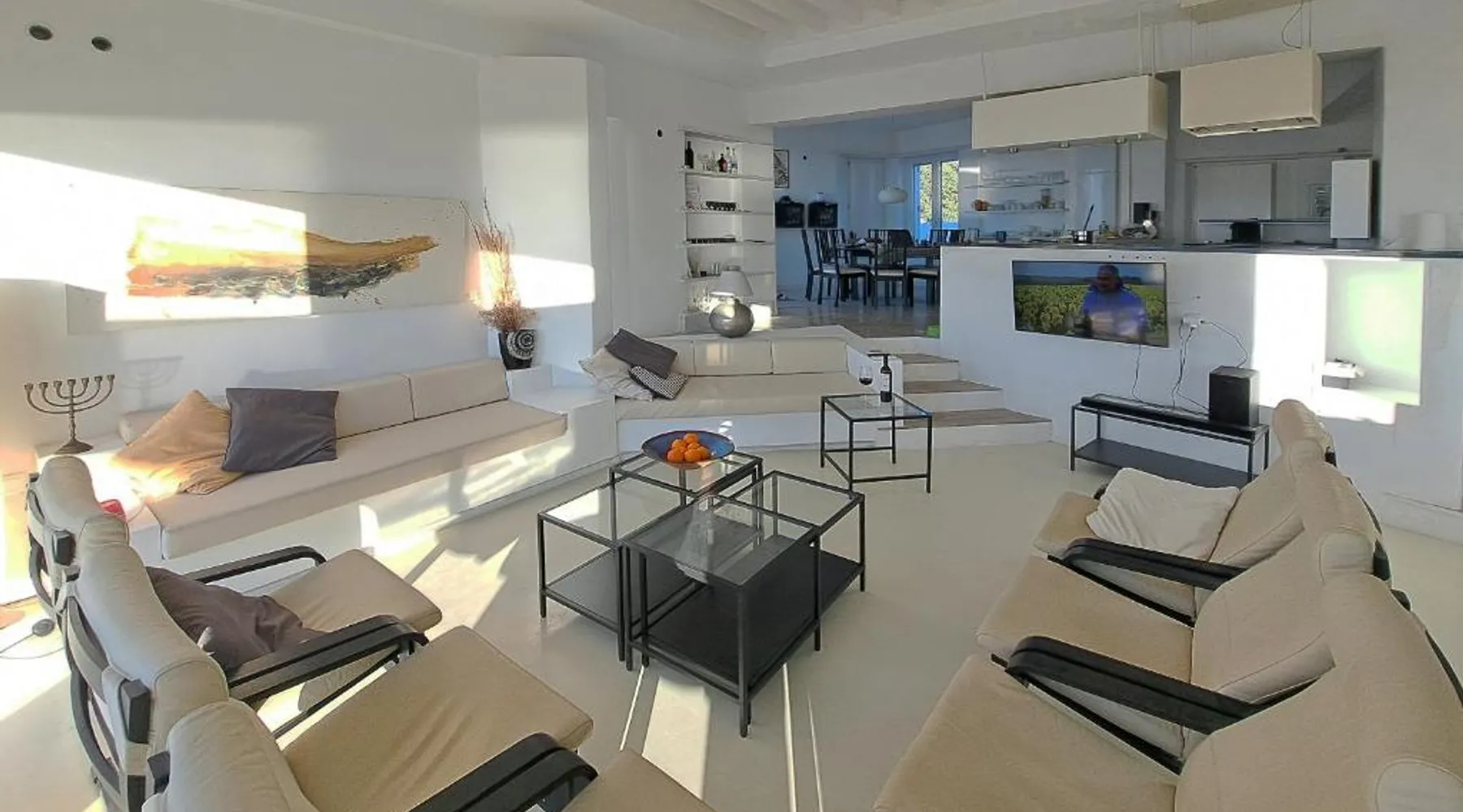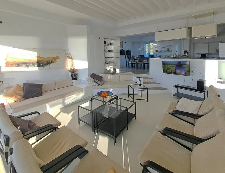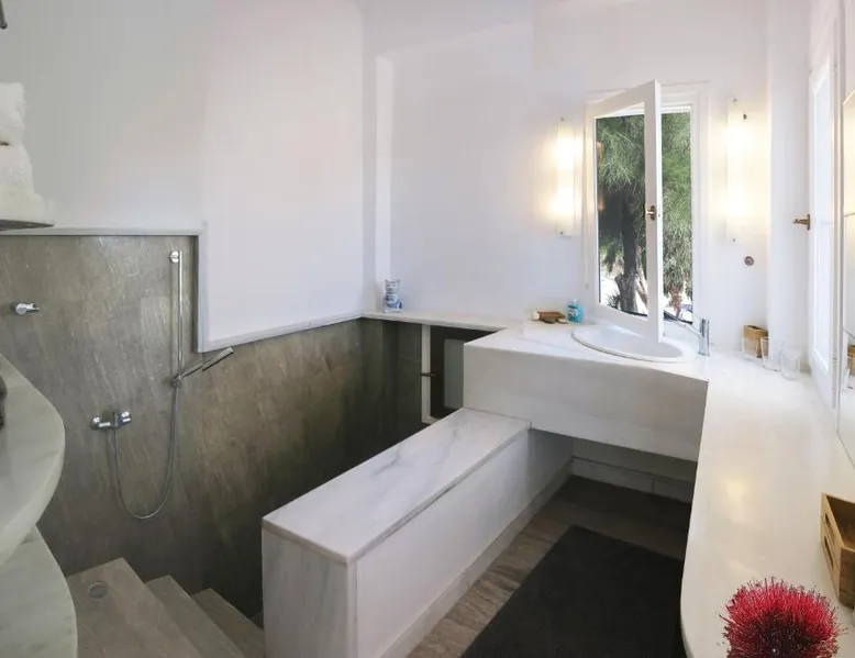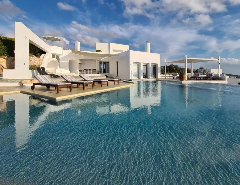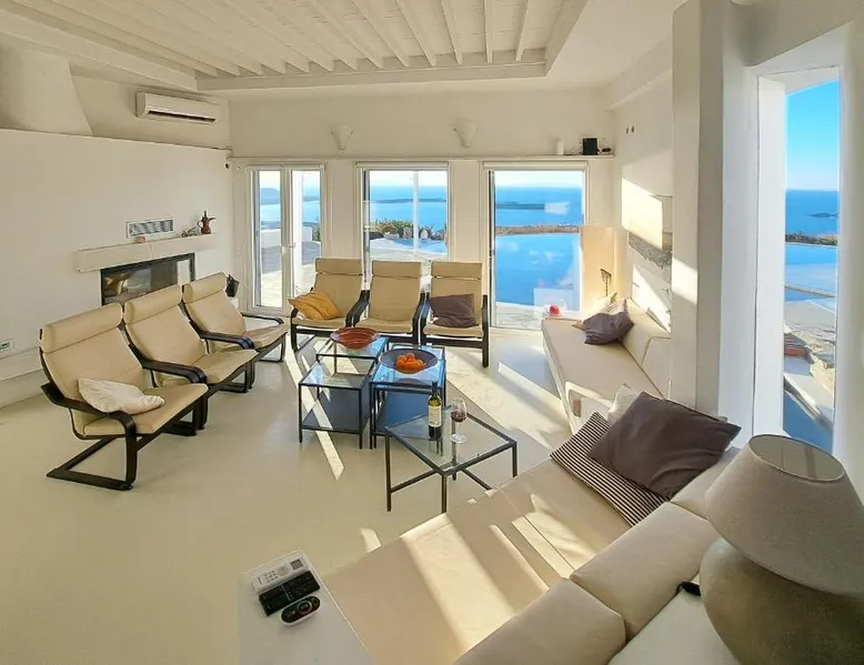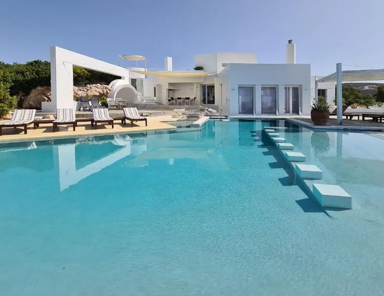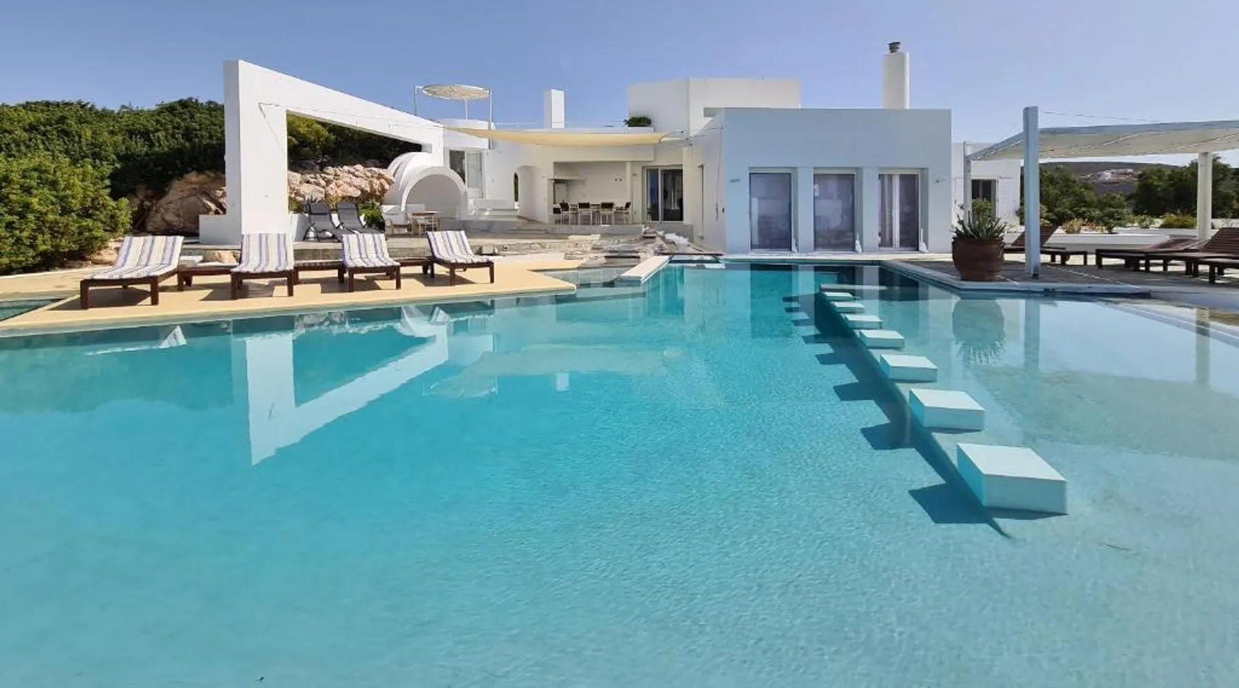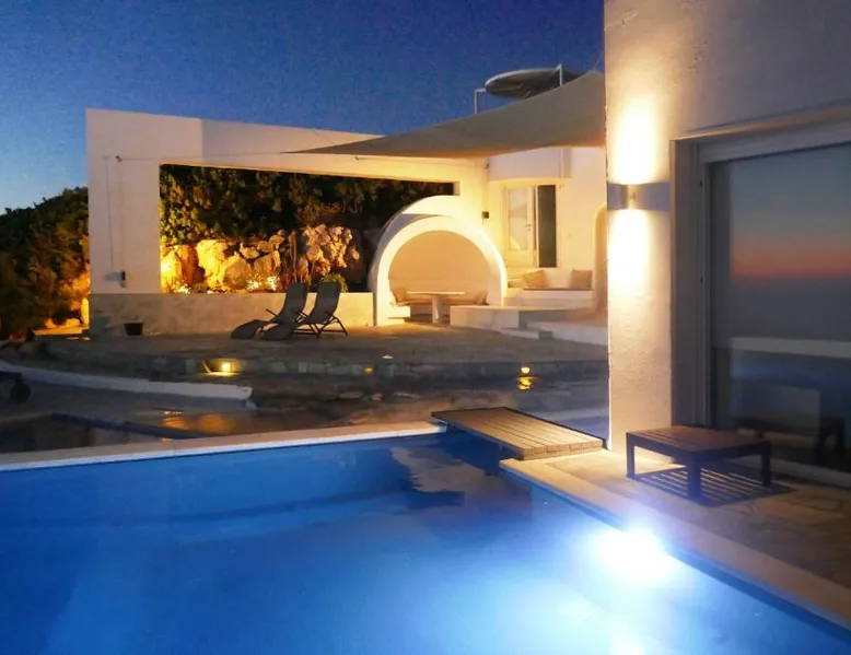 Spacious Accommodations: The SPA in Parikia offers a spacious villa with five bedrooms and four bathrooms. Guests enjoy sea views, a terrace, balcony, and a fully equipped kitchen. Wellness Facilities: The property features a hot spring bath, infinity swimming pool, sauna, and spa and wellness center. Additional amenities include a steam room, hammam, and indoor play area. Leisure Activities: Guests can relax on the sun terrace, enjoy the open-air bath, and play in the kids' pool. The bar provides a perfect spot for socializing. Convenient Location: Located 6.2 mi from Paros National Airport, The SPA is a short walk from Parikia Beach and close to the Church of Ekatontapyliani. Nearby attractions include the Archaeological Museum and Venetian Harbor. The pool with a view and fireplace are the standout features of this villa. This spacious villa features 2 living rooms, 5 separate bedrooms and 4 bathrooms with a shower and free toiletries. Guests will find a stovetop, a refrigerator, a dishwasher and kitchenware in the well-fitted kitchen. The villa also comes with a barbecue. The air-conditioned villa features a flat-screen TV with satellite channels, a washing machine, a private entrance, soundproof walls as well as sea views. The unit has 8 beds.
