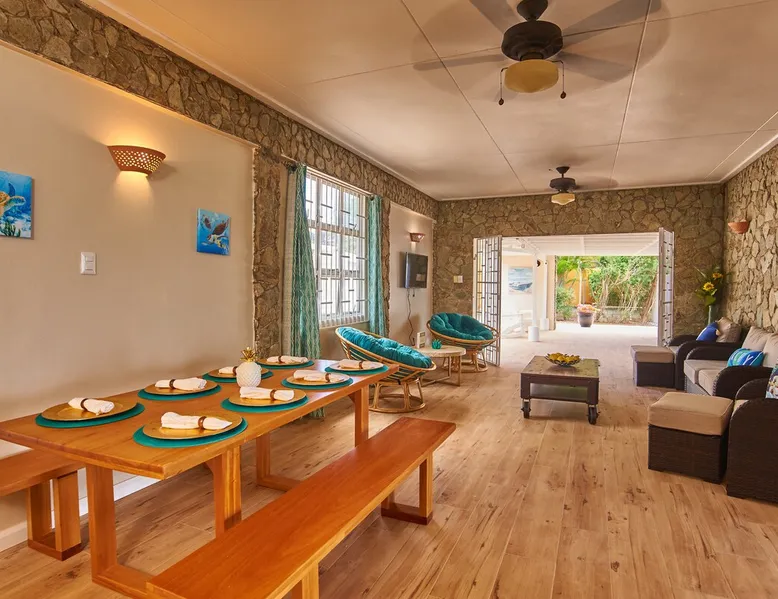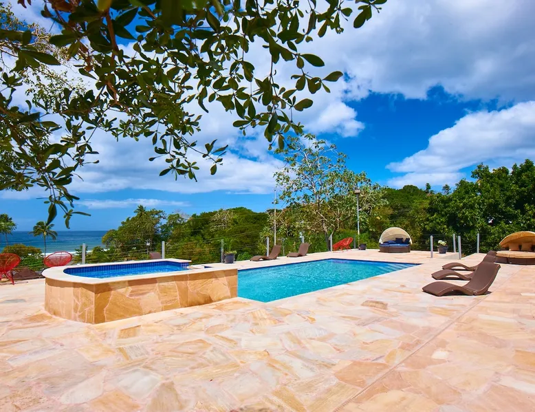 Surfers Paradise Villa is every vacationer’s dream. Surfers Paradise is the ONLY VILLA on the ISLAND that can accommodate LARGE GROUPS in such LUXURY & comfort with BEACHFRONT access to the Beautiful Mt Irvine Beach Our villa's prime location allows you front row seats to the most breathtaking sunsets, while you relax in our jacuzzi or pool. It's is within walking distance from the beach’s restaurant & bar and the various sporting activities like snorkeling, paddle boarding, kayaking & surfing The space Surfers Paradise is outfitted for you to have the most luxurious experience Tobago has to offer, while enjoying some of the best surf breaks with local positive beach vibes. Our love for surf and beach can be seen throughout the villa. Everything was designed to meet our guests’ needs to ensure a comfortable & relaxing stay. The Main house comes with 5 bedrooms which can sleep a maximum of 22 persons with additional pull out beds and futons. Each bedroom has an en-suite bathroom and are fully air conditioned. It has a fully equipped kitchen , living room space and an outdoor patio area. Above the main house is the 'Treehouse’ studio apartment with a stunning ocean front view. The treehouse can sleep up to 5-7 people but is also perfect for couples who want a private, romantic setting. The entire studio styled apartment is fully air conditioned with its own full bathroom & kitchenette. The treehouse also offers its own dining area and patio area, which overlooks the pool, with a perfect view of stunning sunsets, offering a romantic ambience. Our Surfer’s Lounge is perfect for couples, small families or surfers. It's attached to the Main House but yet situated in an area that gives you full privacy from the main house with its own private entrance. Decorated with the inspiration of the beach, surfing with a hint of romance makes the Surfers Lounge Apartment an ideal vacation getaway. The apartment has a full kitchen equipped with everything needed to prepare and serve meals. There is a TV with cable, free wifi, hot/cold water and in a secure compound. There is a small outdoor patio with seating for 4 in the lower gardens of the property and beach access is just 30 footsteps away! It is outfitted with a comfortable Queen size bed, Queen size pull-out bed and futon and sleeps 4 standard and 5 at maximum capacity. Surfers Paradise offers an open, spacious courtyard, with a barbecue grill perfect for evening get togethers. Making full use of the available pull-out beds and futons, we can accommodate a maximum of 34 guests. Enjoy the cool Caribbean breeze in a hammock or you can lose yourself with a good book while sunbathing in a lounge chair. Whatever the occasion, we’ve got you covered. Our resort is eminently suited for weddings, retreats, family re-unions and get togethers at an additional cost. Please note that if necessary, staff will be on the premises from time to time to do maintenance. Other things to note Please note that upon booking, guests will receive a contract that must be signed and returned at least 2 weeks before their arrival. This contract requires all guest names, contact details, and valid identification documents for security and emergency purposes. Your safety and comfort are our top priorities, and providing this information helps us ensure a smooth and secure stay for everyone. Additionally, please be aware that while our villa sleeps up to 34 persons utilising the pull-out beds and sofa couches, Airbnb only allows up to 16 guests for booking purposes. In cases where the number of guests exceeds this limit, you have the option to either pay for the extra guest fee on Airbnb or directly through us. The extra fee is $50 USD per person per night. House keeping is available daily from 8:30am - 3pm upon request (for a small fee of $35USD) to change towels, linens, tidy the house and answer any questions you may have. We are located beach front in Mt. Irvine. The area is perfectly secure with convenient stores and restaurants at close proximity. Taxi services are easily available and you can even walk to nearby restaurants and amenities.