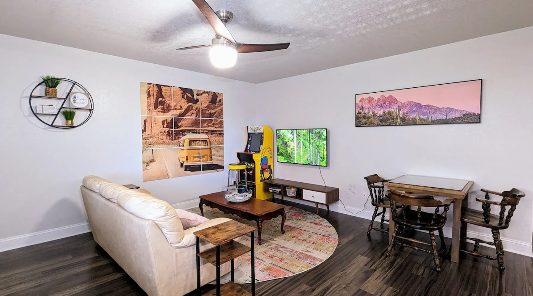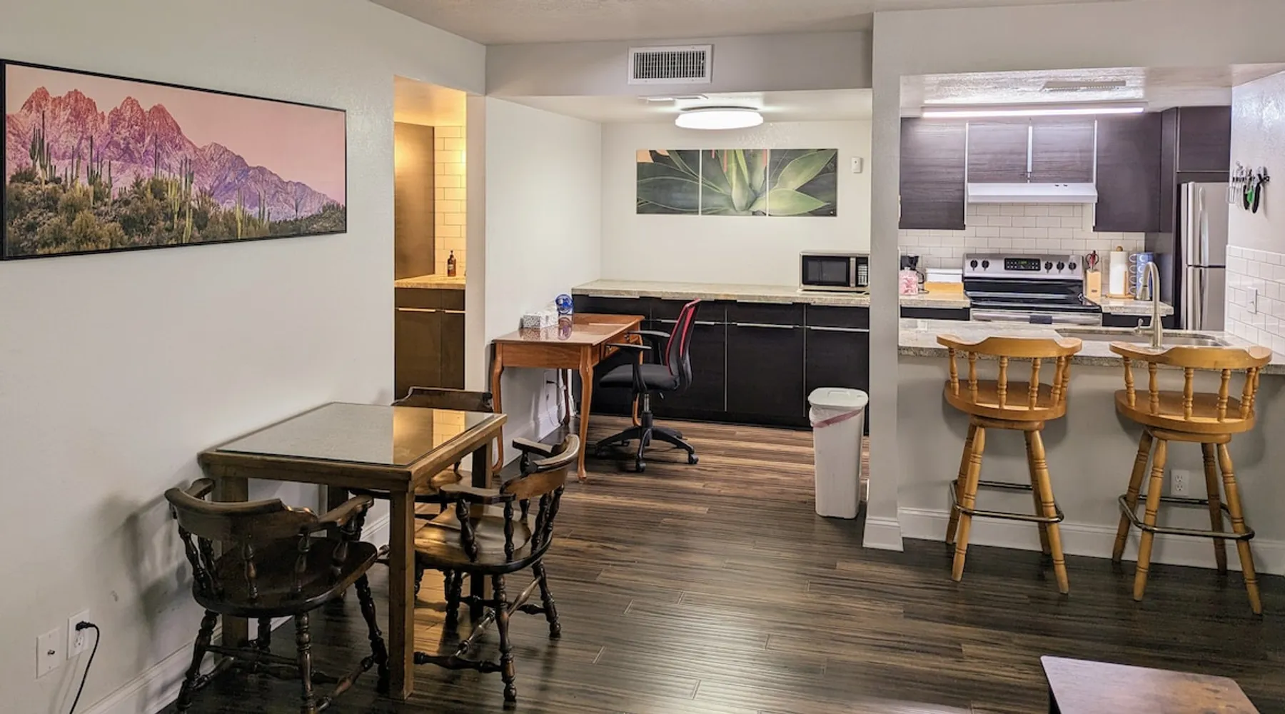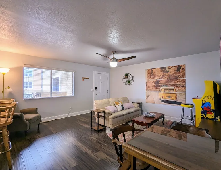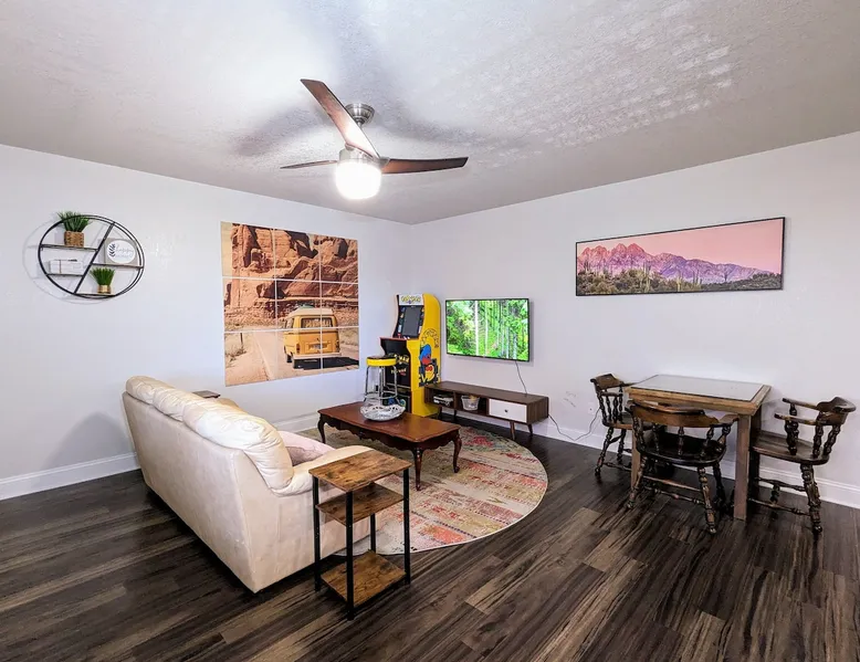 Your family will be close to everything when you stay at this centrally-located home. Walking distance to ASU; come tour the campus and catch a game! Arcade setup in the living room with a fully equipped kitchen and subscriptions to Hulu and Disney + on both TVs. Come enjoy this home-away-from-home while you can! TPT: 21505741 Tempe License Number: STR-000479 Other things to note This is a second story unit. Not ADA compliant. Check in time for same day bookings is 3 hours after booking or 7pm, whichever is greater Please note, there is no use of the mailbox at this time Pool is not a heated pool
