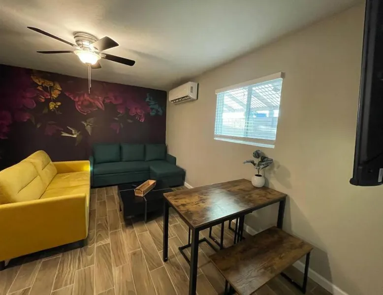 Modern Comforts: New Stylish Midtown With One Bedroom (Unit D) in Phenix offers a comfortable apartment with one bedroom and one bathroom. Guests enjoy air-conditioning, a fully equipped kitchenette, and free WiFi throughout the property. Outdoor Spaces: The apartment features a garden and terrace, perfect for relaxation. An outdoor fireplace and seating area provide additional outdoor spaces, while free on-site parking is available for convenience. Convenient Location: Located 3.7 mi from Phenix Sky Harbor International Airport, the property is close to attractions such as the Heard Museum (2.3 mi) and Phenix Art Museum (2.9 mi). Guests appreciate the convenient location and proximity to key points of interest. Guests will find a stovetop, a refrigerator, kitchenware and a microwave in the well-equipped kitchen. The apartment also offers a barbecue. This air-conditioned apartment consists of a dining area, a flat-screen TV with streaming services a washing machine and a patio. The unit offers 1 bed.