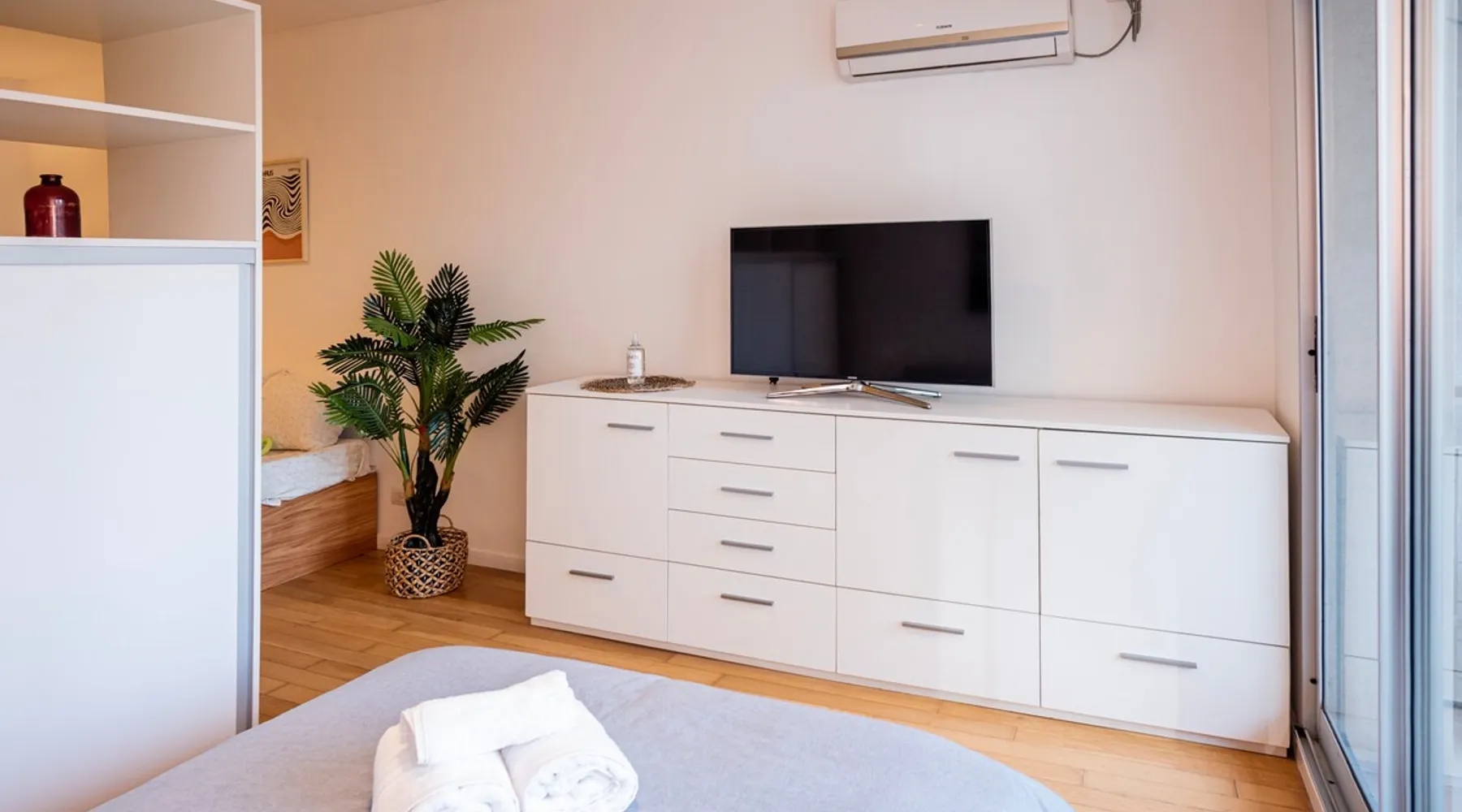 From this perfectly located home in Colegiales, enjoy a stay with access to everything you need. It combines the tranquility of tree-lined streets with a 'neighborhood' flavor with the commercial activity of Cabildo and Lacroze, from where you can get anywhere in the city. You can walk through its historic cobblestone streets, enjoy a coffee in one of the nearby shops, or shop for all kinds of things. The space Located 200 meters from Av. Cabildo, metrobus and Olleros subway station "D". 650 meters from Colegiales station on the Mitre train. The area has numerous dining options, specialty coffee shops, and shops of different kinds. The studio apartment is very comfortable, located on the 5th floor with elevator access. It has a double bed and a single sofa bed in the living room. Optional: an extra passenger, minor, up to 10 years old approx., can stay in a bunk bed (living room). The integrated kitchen has an electric stove and oven, microwave, electric kettle, coffee maker and toaster. Equipped with air conditioning (hot/cold); Wi-Fi; 45" Smart TV. Bathroom with bathtub and shower. It has a large balcony that gives it a lot of light. It does not have a washing machine but has a laundry room one block away. Important: Subway line D is out of service until March. Guest access We agreed on a schedule by message and we met at the apartment. Please don't hesitate to contact us if you need a different time. Whenever we can and it doesn't affect other reservations, we're flexible!!!