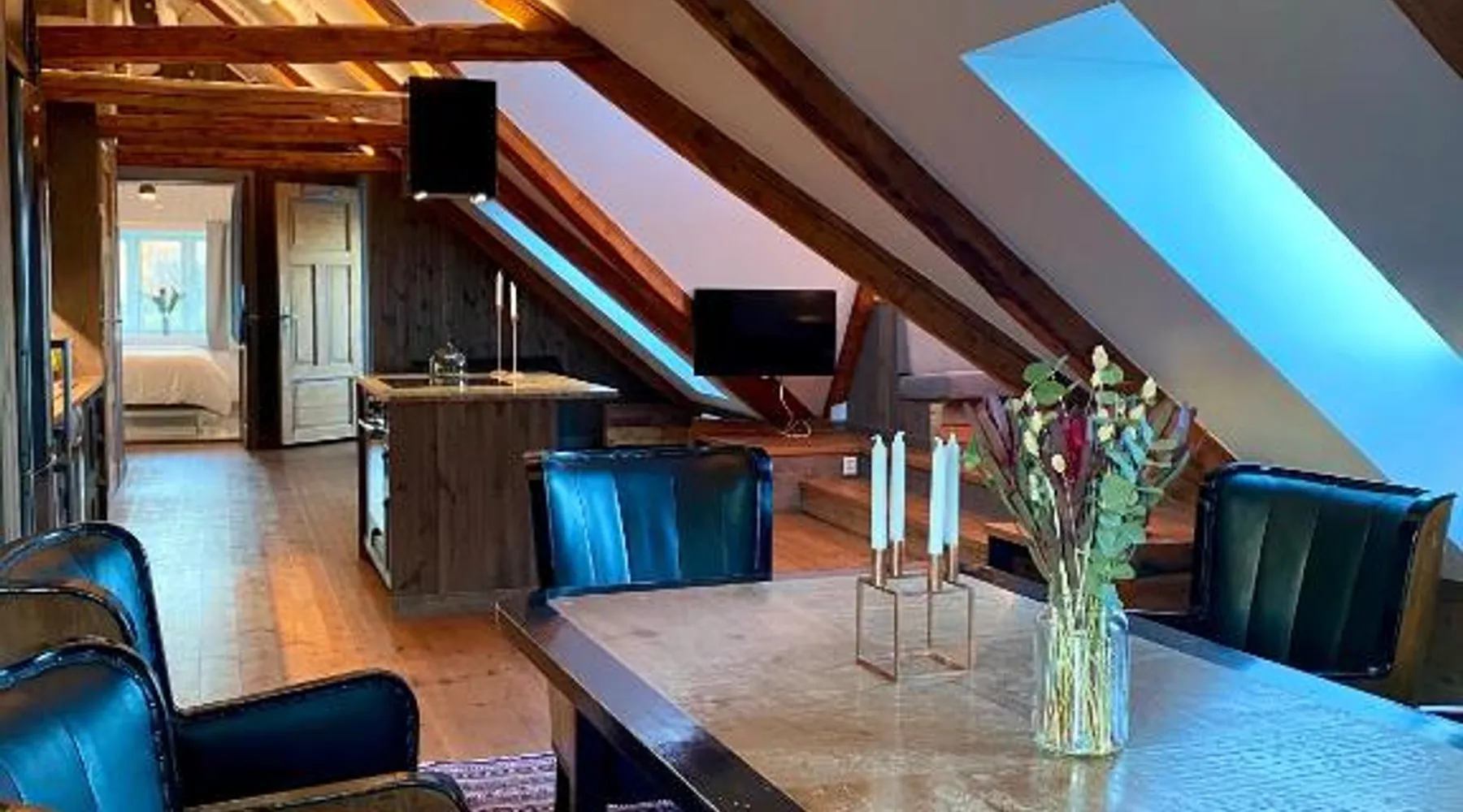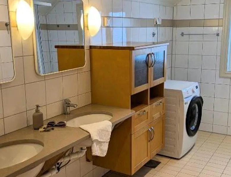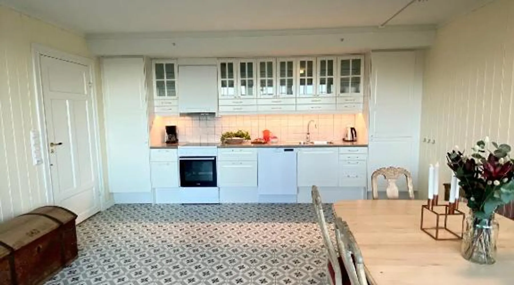 Historic Setting: Storsand Gård in Trondheim offers a unique apartment experience within a historic building. Guests enjoy sea views and a private beach area, complemented by a lush garden and terrace. Modern Amenities: The apartment features a fully equipped kitchenette, private bathroom, and free WiFi. Additional facilities include a elevator, outdoor play area, picnic spots, and free on-site parking. Local Attractions: Located 12 mi from Trondheim Airport, Storsand Gård is close to Ringve Botanical Gardens (9.3 mi) and Ringve Museum (9.3 mi). Other nearby points of interest include SINTEF Ocean (9.9 mi) and Trondheim Maritime Museum (11 mi). Featuring a private entrance, this spacious apartment also consists of 1 living room, 2 separate bedrooms and 1 bathroom with a shower. In the well-fitted kitchen, guests will find a stovetop, a refrigerator, a dishwasher and kitchenware. The apartment provides a washing machine, a tea and coffee maker, a seating area, a flat-screen TV with cable channels, as well as sea views. The unit offers 2 beds.