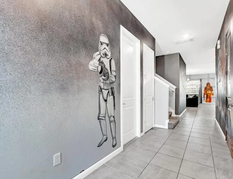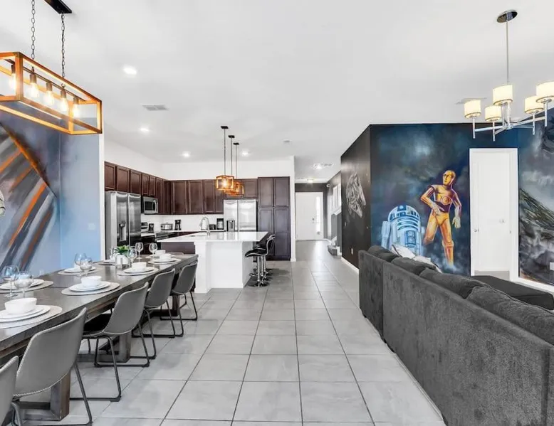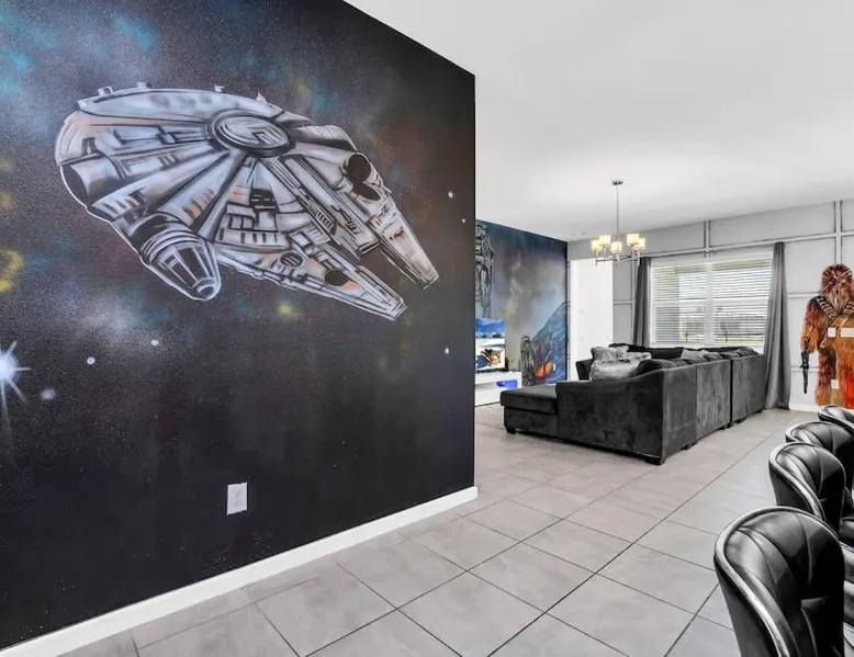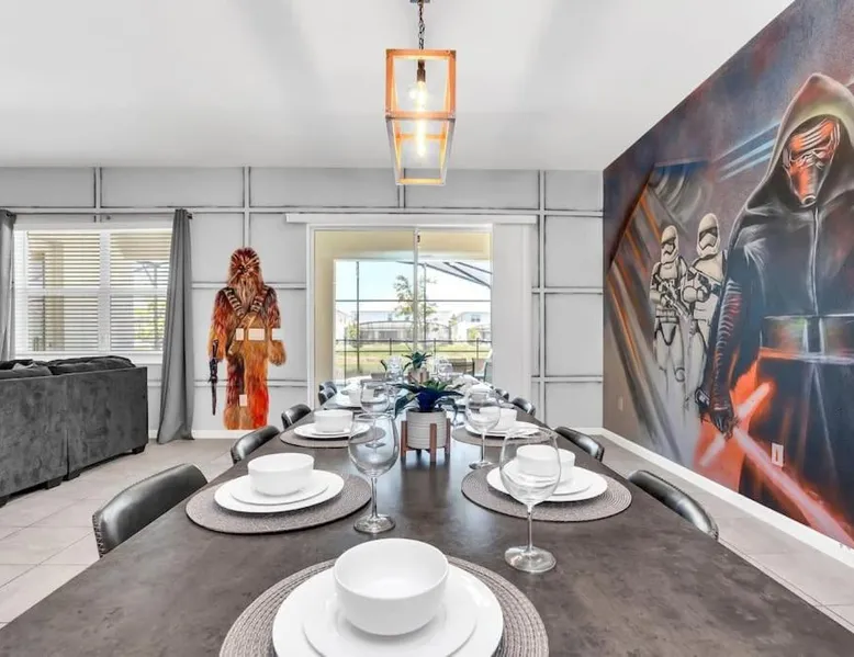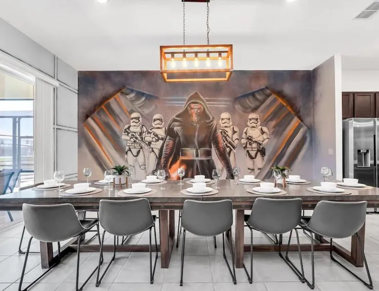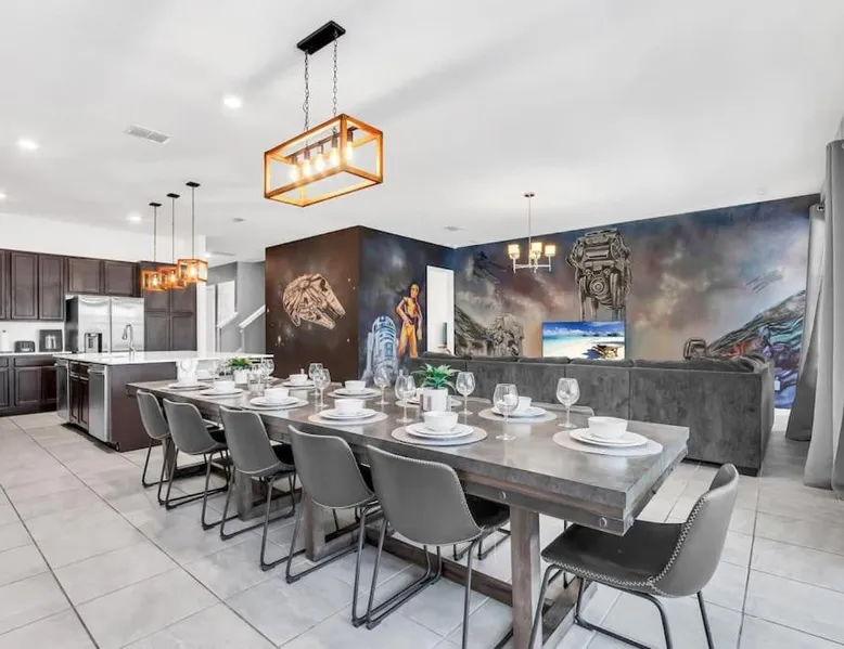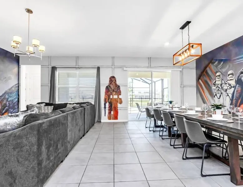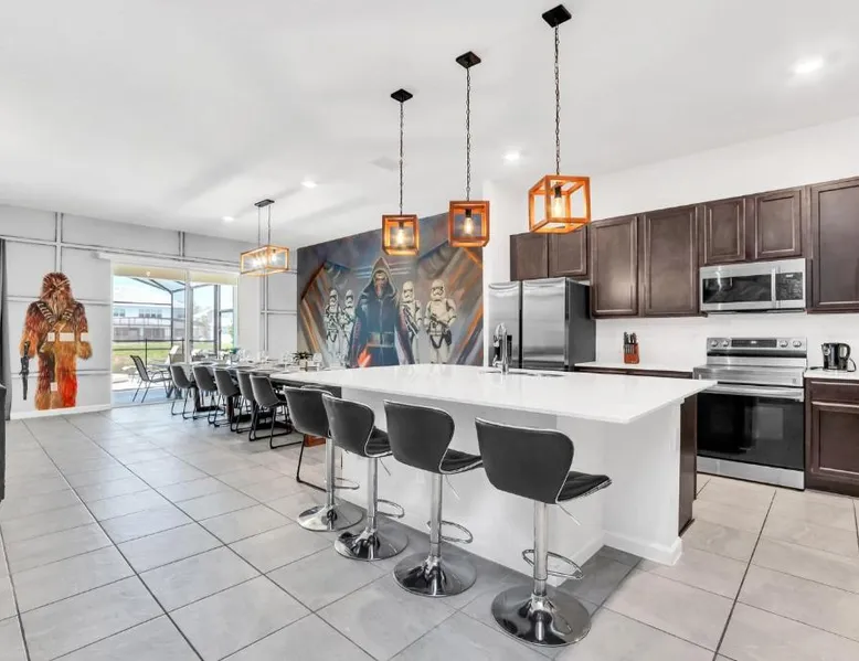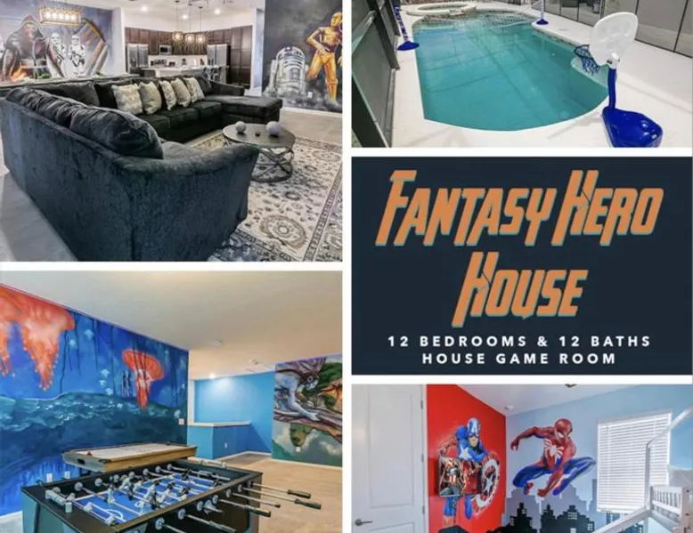 7.7 miles from Gatorland in Kissimmee, The Fantasy Hero Mansion w pool near Disney offers accommodations with access to a hot tub and fitness room. This property offers a private pool, free Wifi, and free private parking. The indoor pool features a pool bar and water slide. Leading onto a patio, the vacation home consists of 12 bedrooms. The air-conditioned vacation home also provides a flat-screen TV, a fully equipped kitchen with a dishwasher, a seating area, washing machine, and 12 bathrooms with a hot tub, a bath, and a shower. The property has an outdoor dining area. A water park is also available for guests at the vacation home. Disney Springs is 8.3 miles from The Fantasy Hero Mansion w pool near Disney, while Disney's Wide World of Sports is 8.5 miles away. Orlando International Airport is 15 miles from the property. The private pool and hot tub are the special features of this holiday home. Boasting a private entrance, this spacious holiday home also comes with 12 bedrooms, a seating area and 12 bathrooms with a bath and a shower. Meals can be prepared in the well-fitted kitchen, which features a stovetop, a refrigerator, a dishwasher and an oven. This air-conditioned holiday home is consisted of of a dining area, a flat-screen TV with streaming services a washing machine and a patio. The unit has 13 beds.