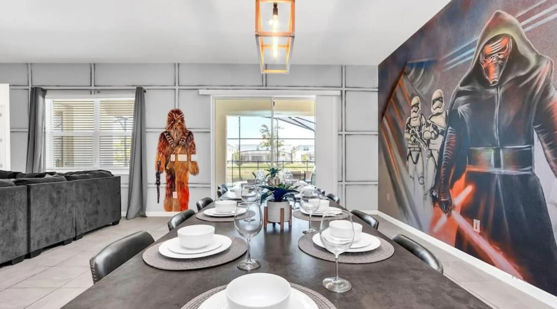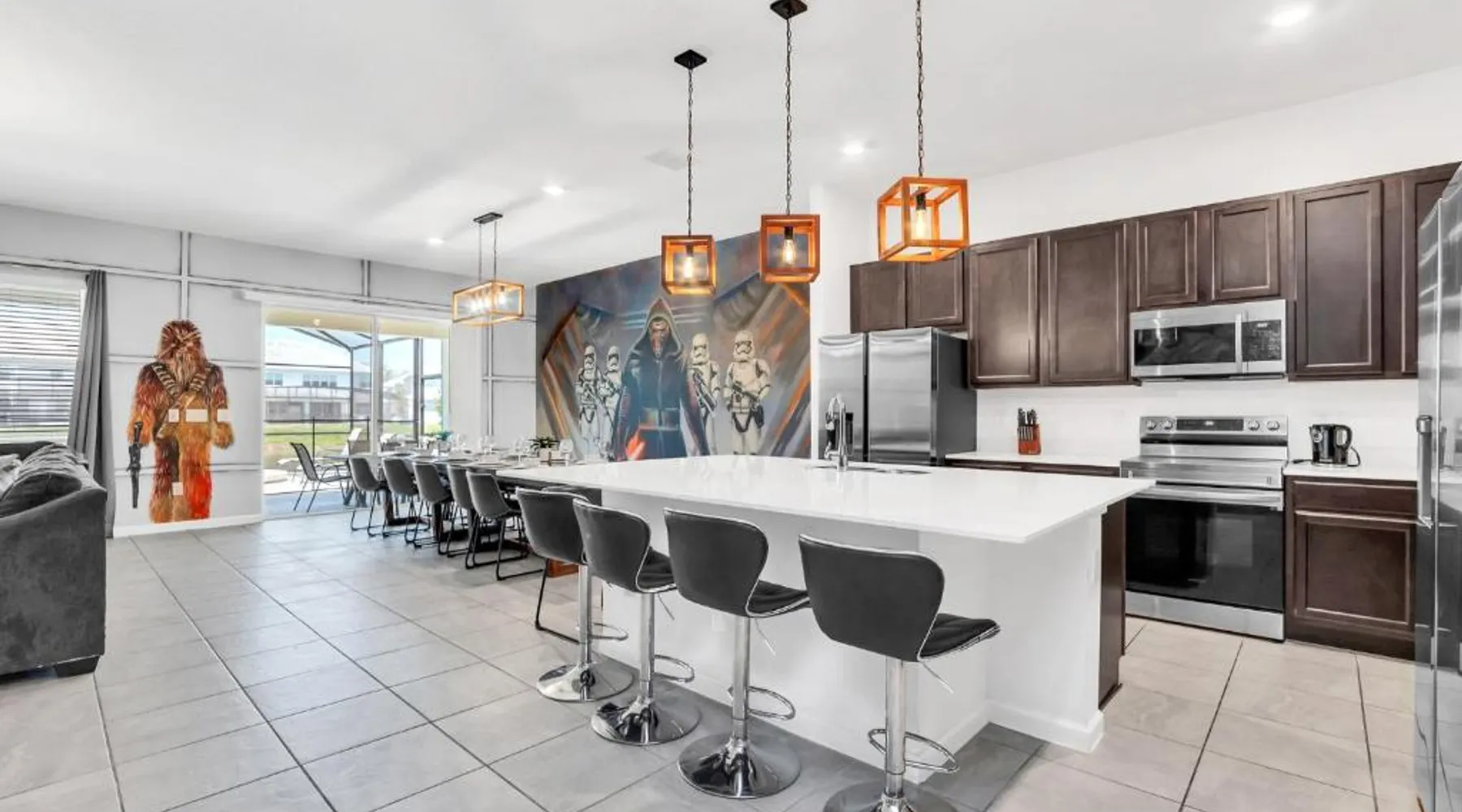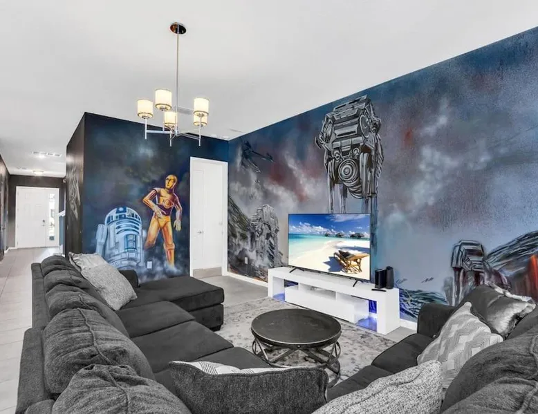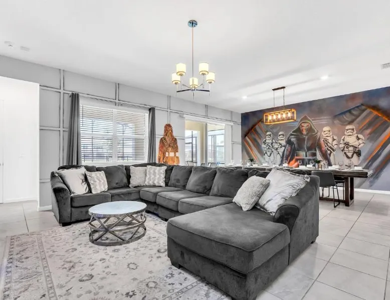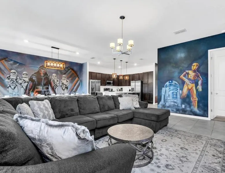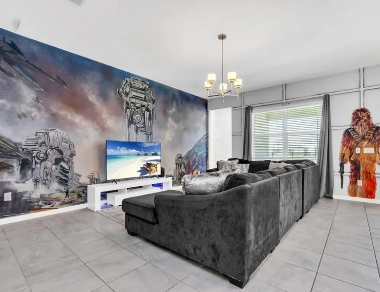 7.7 miles from Gatorland in Kissimmee, The Fantasy Hero Mansion w pool near Disney offers accommodations with access to a hot tub and fitness room. This property offers a private pool, free Wifi, and free private parking. The indoor pool features a pool bar and water slide. Leading onto a patio, the vacation home consists of 12 bedrooms. The air-conditioned vacation home also provides a flat-screen TV, a fully equipped kitchen with a dishwasher, a seating area, washing machine, and 12 bathrooms with a hot tub, a bath, and a shower. The property has an outdoor dining area. A water park is also available for guests at the vacation home. Disney Springs is 8.3 miles from The Fantasy Hero Mansion w pool near Disney, while Disney's Wide World of Sports is 8.5 miles away. Orlando International Airport is 15 miles from the property. The private pool and hot tub are the special features of this holiday home. Boasting a private entrance, this spacious holiday home also comes with 12 bedrooms, a seating area and 12 bathrooms with a bath and a shower. Meals can be prepared in the well-fitted kitchen, which features a stovetop, a refrigerator, a dishwasher and an oven. This air-conditioned holiday home is consisted of of a dining area, a flat-screen TV with streaming services a washing machine and a patio. The unit has 13 beds.