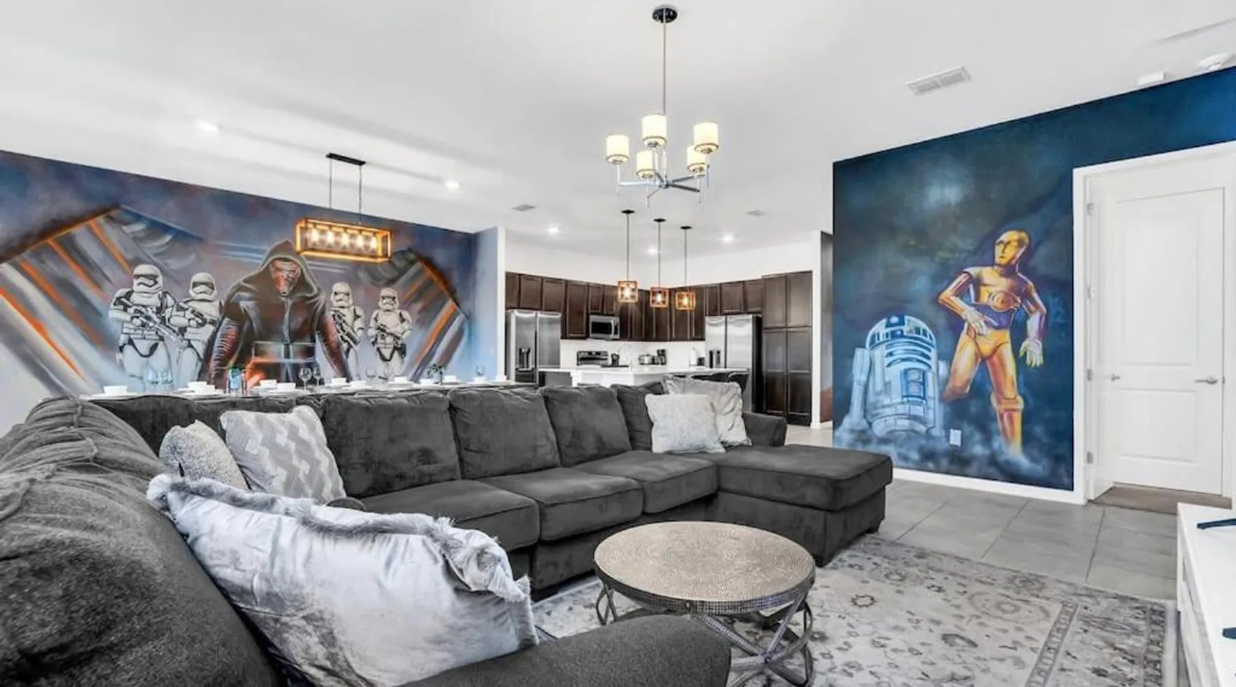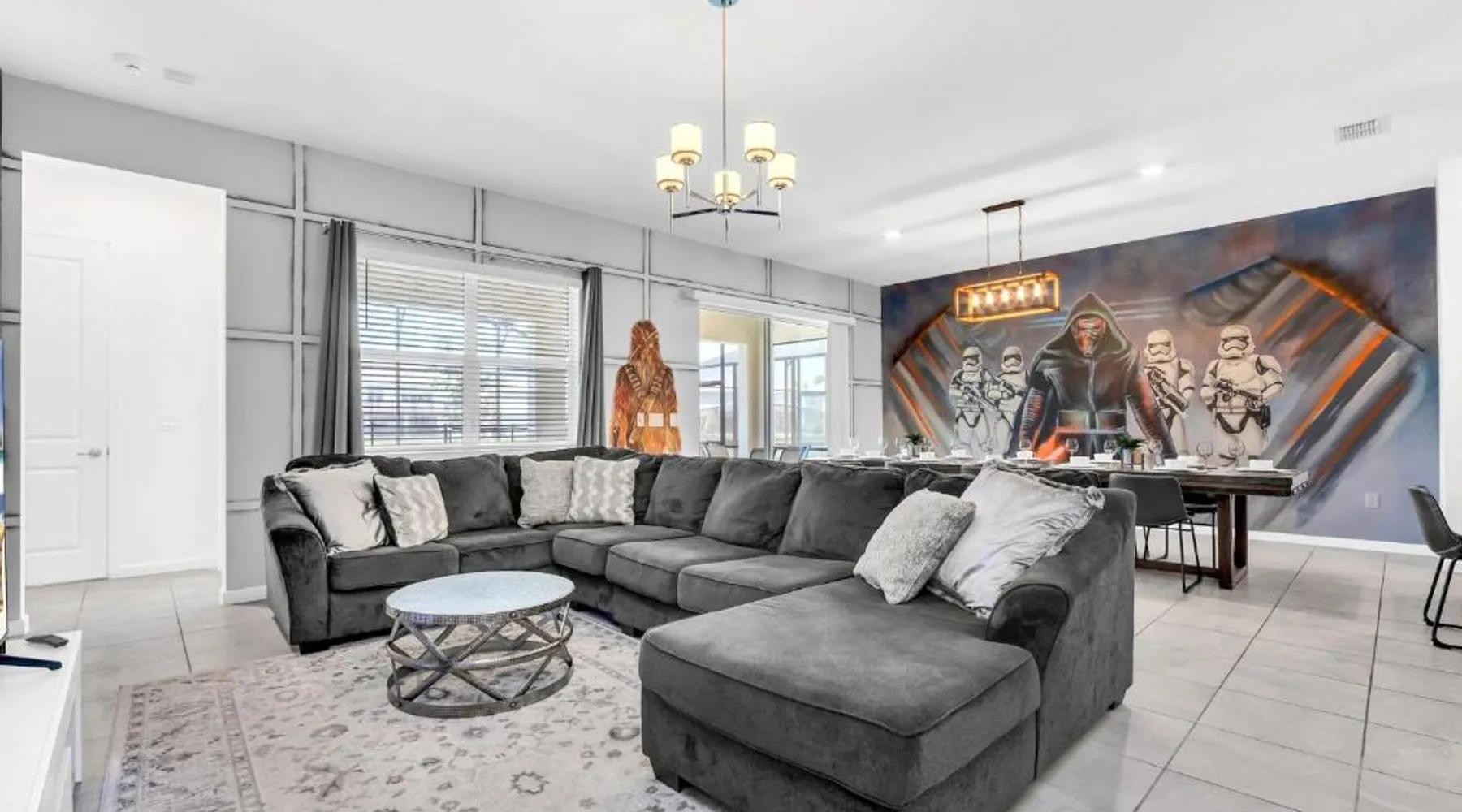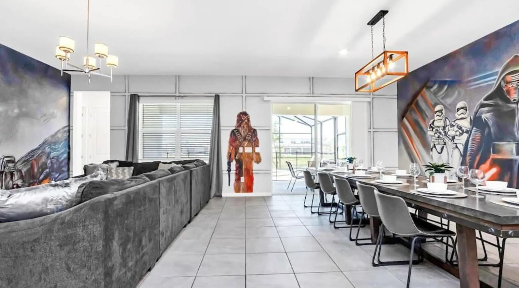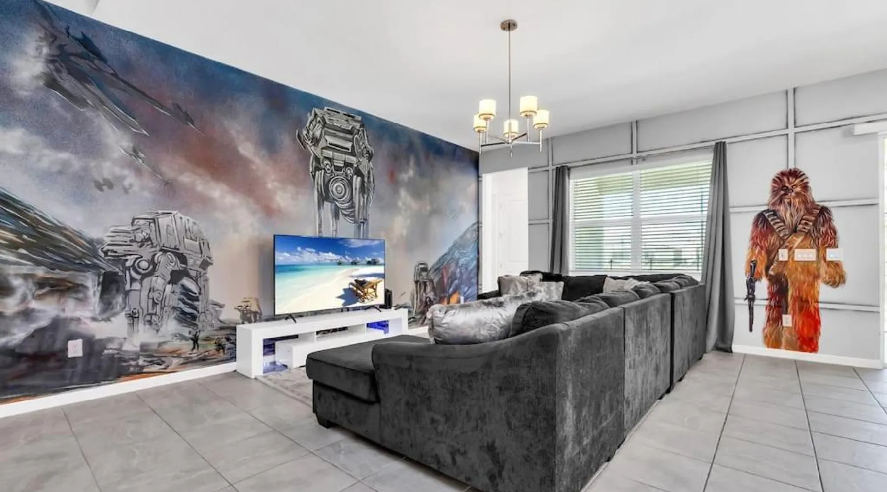7.7 miles from Gatorland in Kissimmee, The Fantasy Hero Mansion w pool near Disney offers accommodations with access to a hot tub and fitness room. This property offers a private pool, free Wifi, and free private parking. The indoor pool features a pool bar and water slide. Leading onto a patio, the vacation home consists of 12 bedrooms. The air-conditioned vacation home also provides a flat-screen TV, a fully equipped kitchen with a dishwasher, a seating area, washing machine, and 12 bathrooms with a hot tub, a bath, and a shower. The property has an outdoor dining area. A water park is also available for guests at the vacation home. Disney Springs is 8.3 miles from The Fantasy Hero Mansion w pool near Disney, while Disney's Wide World of Sports is 8.5 miles away. Orlando International Airport is 15 miles from the property. The private pool and hot tub are the special features of this holiday home. Boasting a private entrance, this spacious holiday home also comes with 12 bedrooms, a seating area and 12 bathrooms with a bath and a shower. Meals can be prepared in the well-fitted kitchen, which features a stovetop, a refrigerator, a dishwasher and an oven. This air-conditioned holiday home is consisted of of a dining area, a flat-screen TV with streaming services a washing machine and a patio. The unit has 13 beds.
