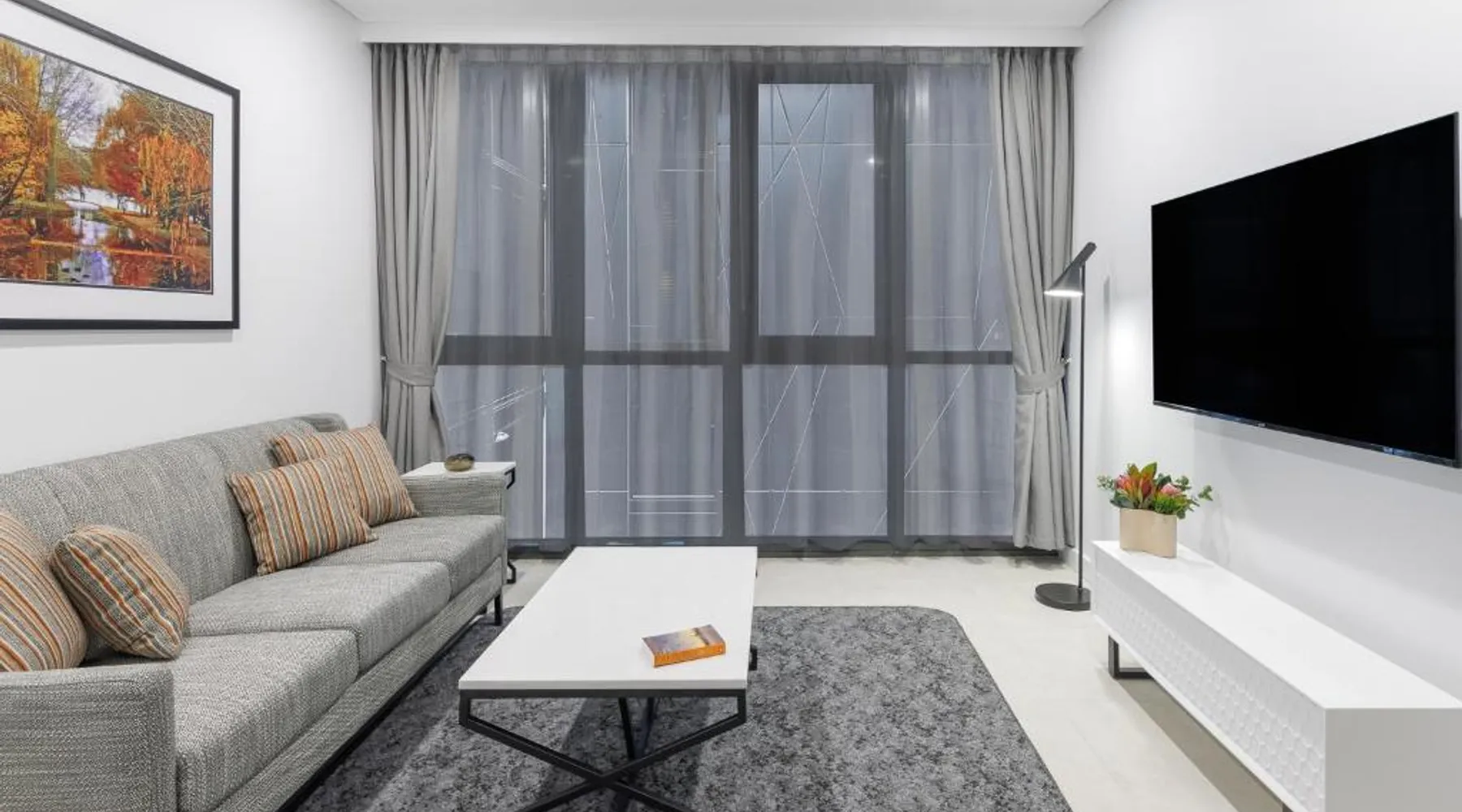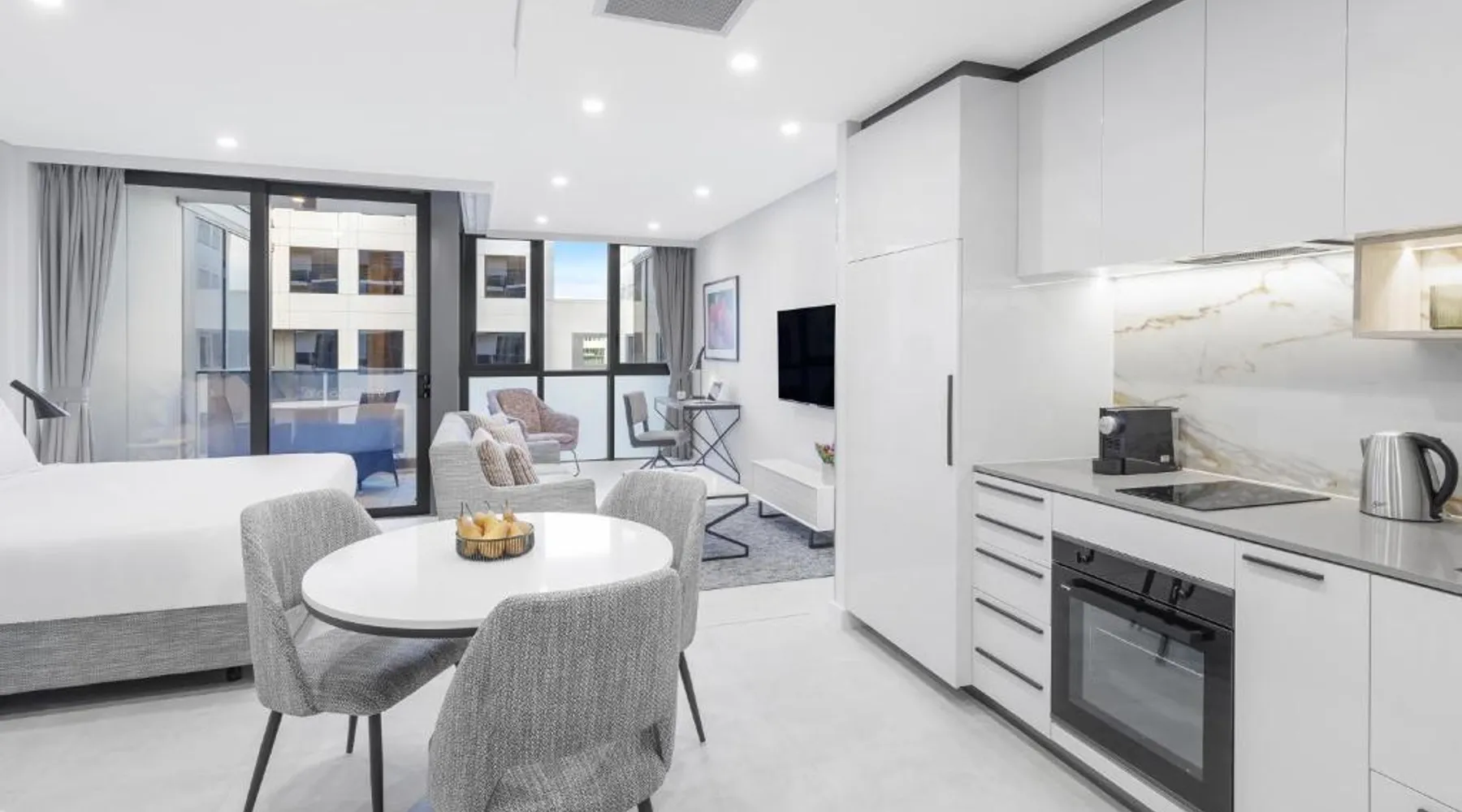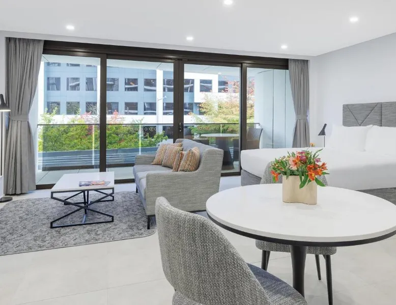 Prime City Location: Meriton Suites Canberra is located in Canberra city center, offering easy access to key attractions. The National Convention Center Canberra is a 4-minute walk away, while Canberra Center lies 1640 feet nearby. Exceptional Facilities: Guests enjoy a rooftop swimming pool, sauna, and indoor swimming pool. The aparthotel features a fitness center, free WiFi, and a 24-hour front desk. Additional amenities include a fitness room, elevator, electric vehicle charging station, family rooms, and luggage storage. Comfortable Accommodations: Each apartment offers a private bathroom with modern amenities. The property provides paid on-site private parking and boating opportunities in the surrounding area. Nearby Attractions: The Australian War Memorial is 1.1 mi away, while the National Museum of Australia and Questacon are 1.4 mi and 1.6 mi respectively. Other points of interest include the National Gallery of Australia and Parliament House, each 2 mi from the aparthotel. Featuring a king size bed, sofa and dining area and a private balcony, this suite has a fully equipped kitchen and a laundry with a washing machine and dryer. Guest can enjoy Kevin Murphy bathroom amenities. All suites have STAYCAST by Google Chromecast.