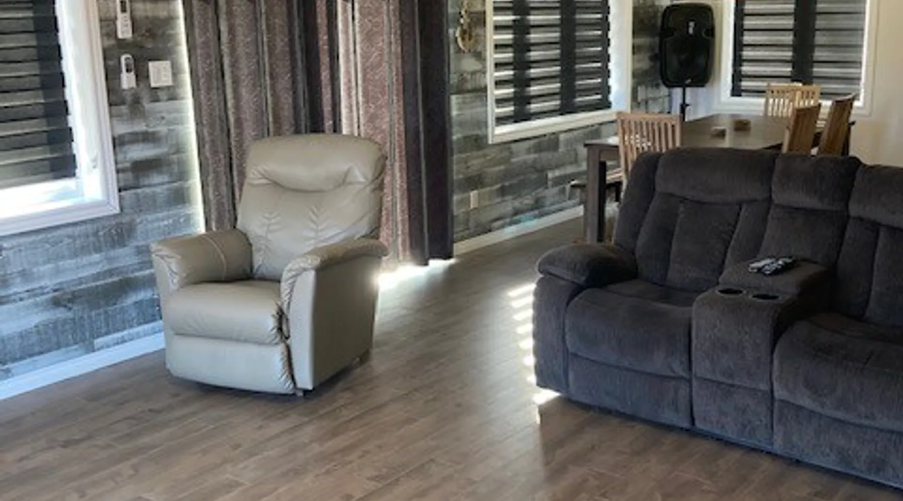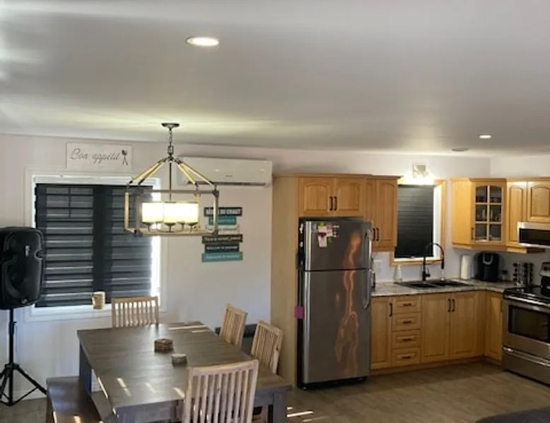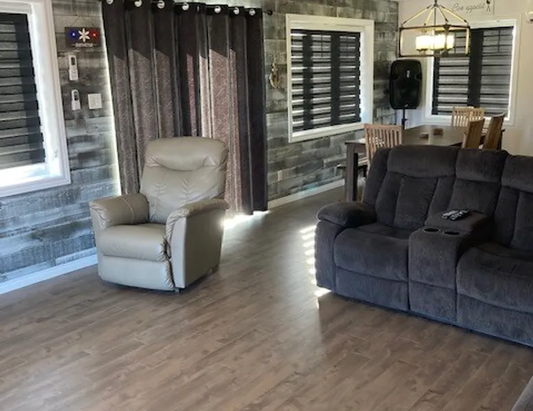 In the beautiful Acadian peninsula, this 34x36 chalet built in 2019 with 2 acres of land is located in Evangeline on the beautiful Pokemouche River and 1 km from the fully paved bike path and mountain bike and snowmobile trails. For golf lovers, a very nice course is located a few km away. A boat or wakeboard ramp is accessible. Possibility of making a fire, BBQ outside. The space This cottage has 2 bedrooms and a bathroom including washer-dryer, living room and kitchen on the ground floor. The 2nd floor includes a living room and a double bed and an extra mattress if needed. Guest access The entire cottage.