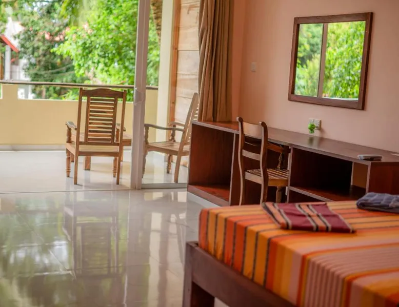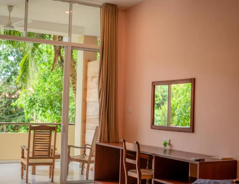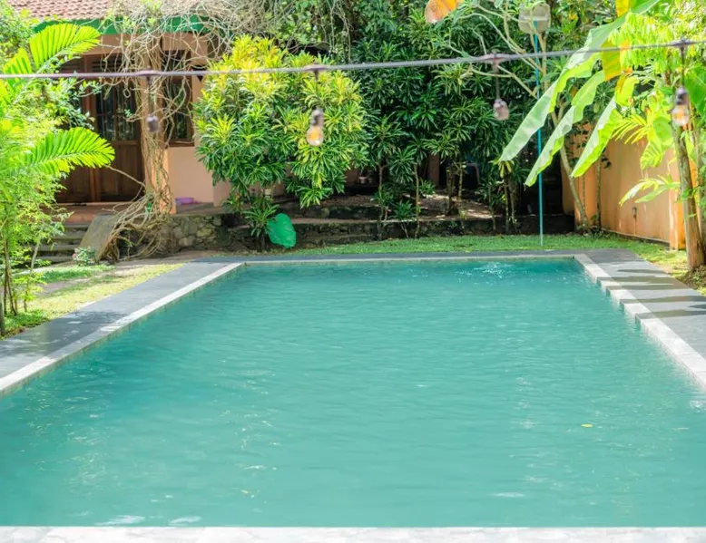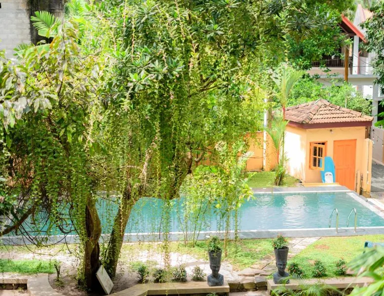 Elegant Accommodations: Monkey villa in Hikkaduwa offers a sun terrace, lush garden, and a year-round outdoor swimming pool. Guests enjoy free WiFi throughout the apartment. Comfortable Amenities: The property features private check-in and check-out services, a 24-hour front desk, and free on-site parking. Additional facilities include an outdoor play area, laundry service, and bicycle parking. Prime Location: Located 19 mi from Koggala Airport, Monkey villa is a 4-minute walk from Narigama Beach. Nearby attractions include Hikkaduwa Coral Reef (1.2 mi) and Galle Fort (11 mi). Scuba diving is available in the surroundings. Meals can be prepared in the kitchen, which features a refrigerator, kitchenware and a tea and coffee maker. The spacious family room features air conditioning, a washing machine, a balcony with garden views as well as a private bathroom boasting a bath or a shower. The unit has 2 beds.