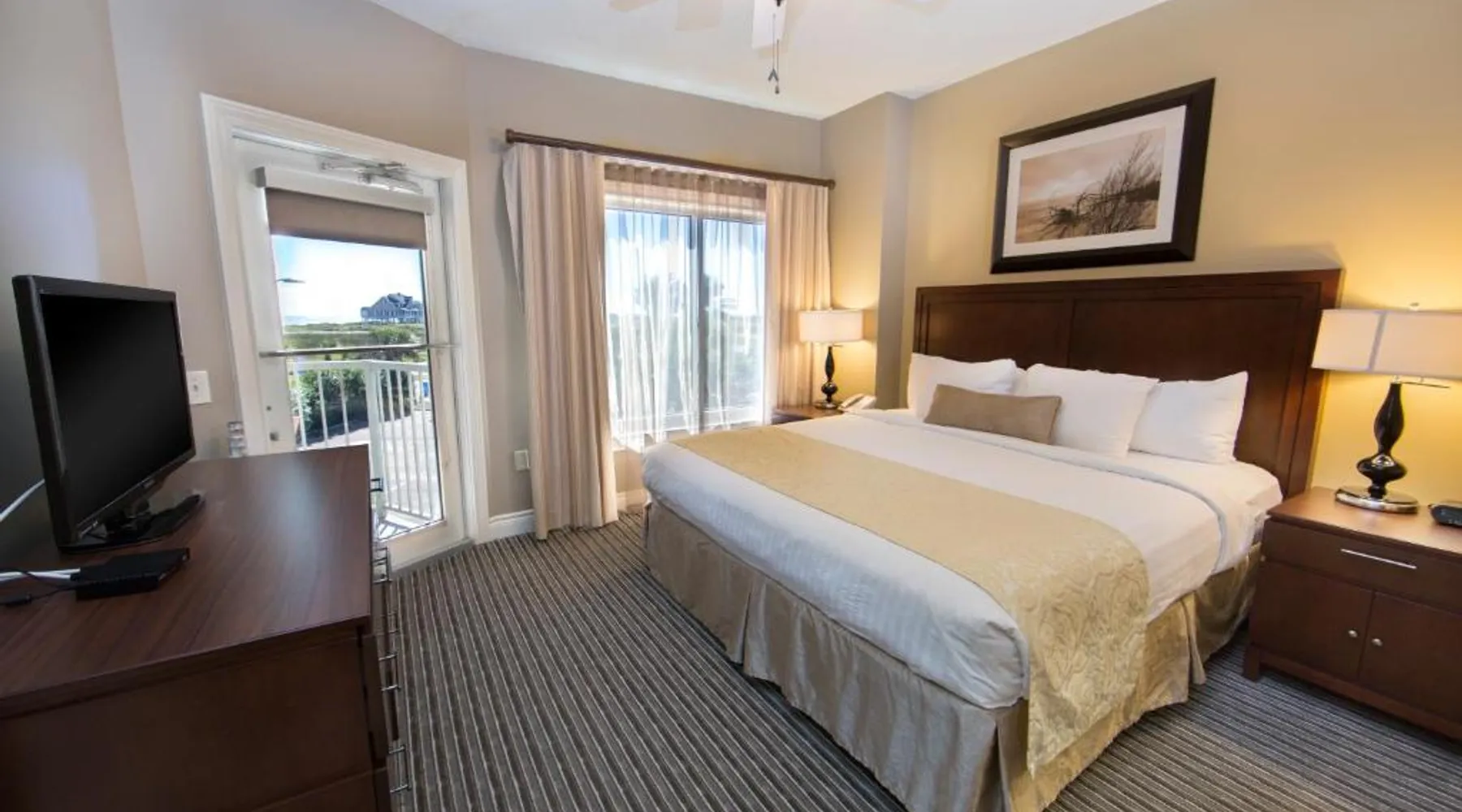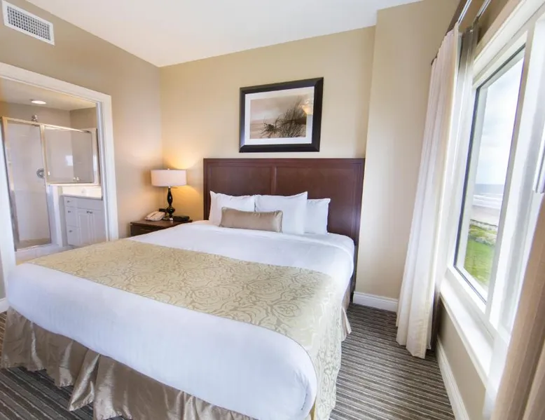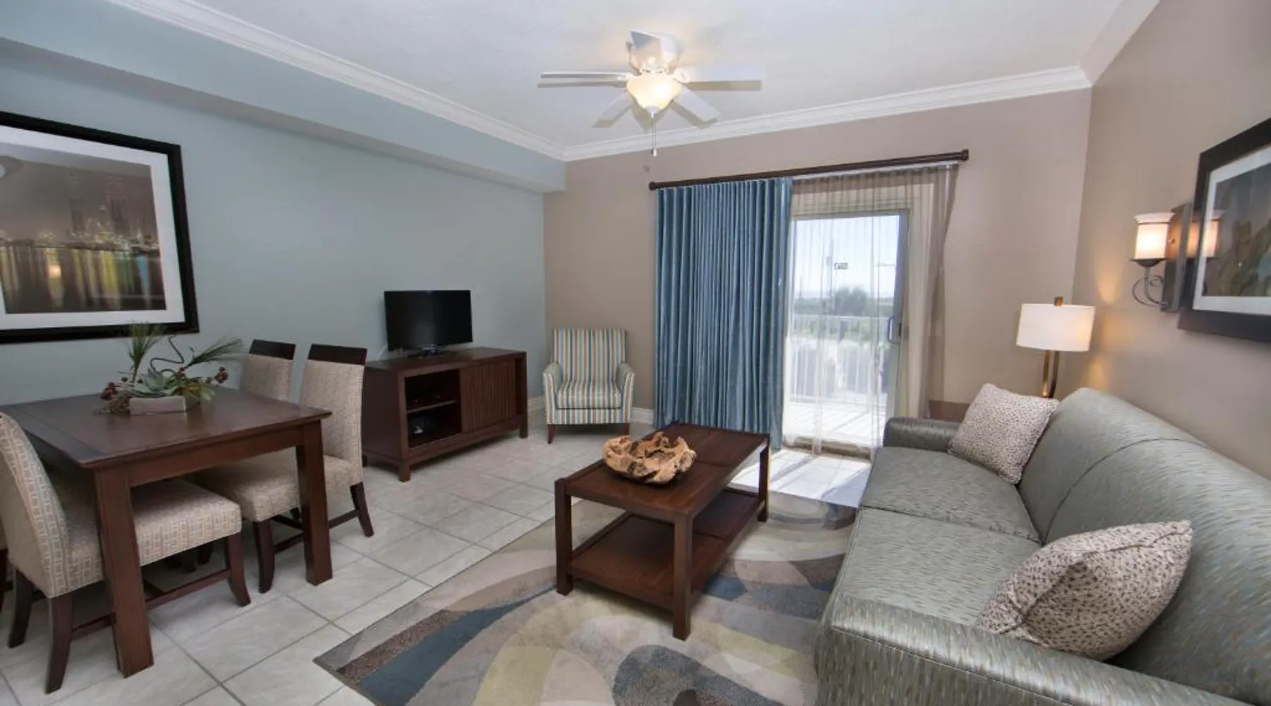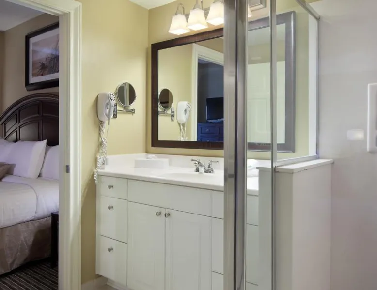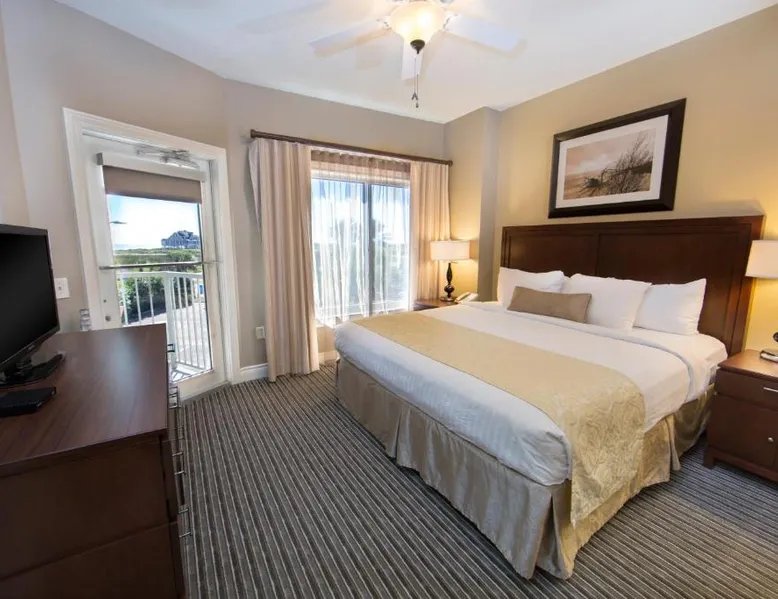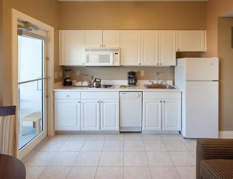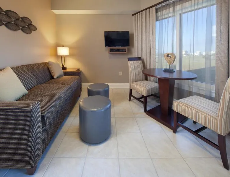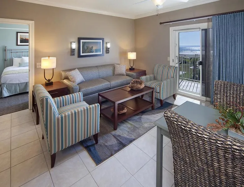 This Galveston hotel is 15 miles from the Historic Strand Entertainment District and 20 minutes’ drive from Pelican Island. It features a heated outdoor pool and spacious suites with free WiFi. A kitchenette or full kitchen is included in every self-catering suite at Holiday Inn Club Vacations Galveston Beach Resort. All suites have a living room with a sofa bed, and TV . Select rooms offer a balcony with views of the Gulf of Mexico. Free access to the on-site gym and hot tub is provided to all guests of Galveston Beach Resort. Central Houston is a 1 hour drive northwest of the hotel. William P. Hobby Airport is 45 miles away. This suite includes free Wi-Fi, a living room with sofa bed and a full kitchen.