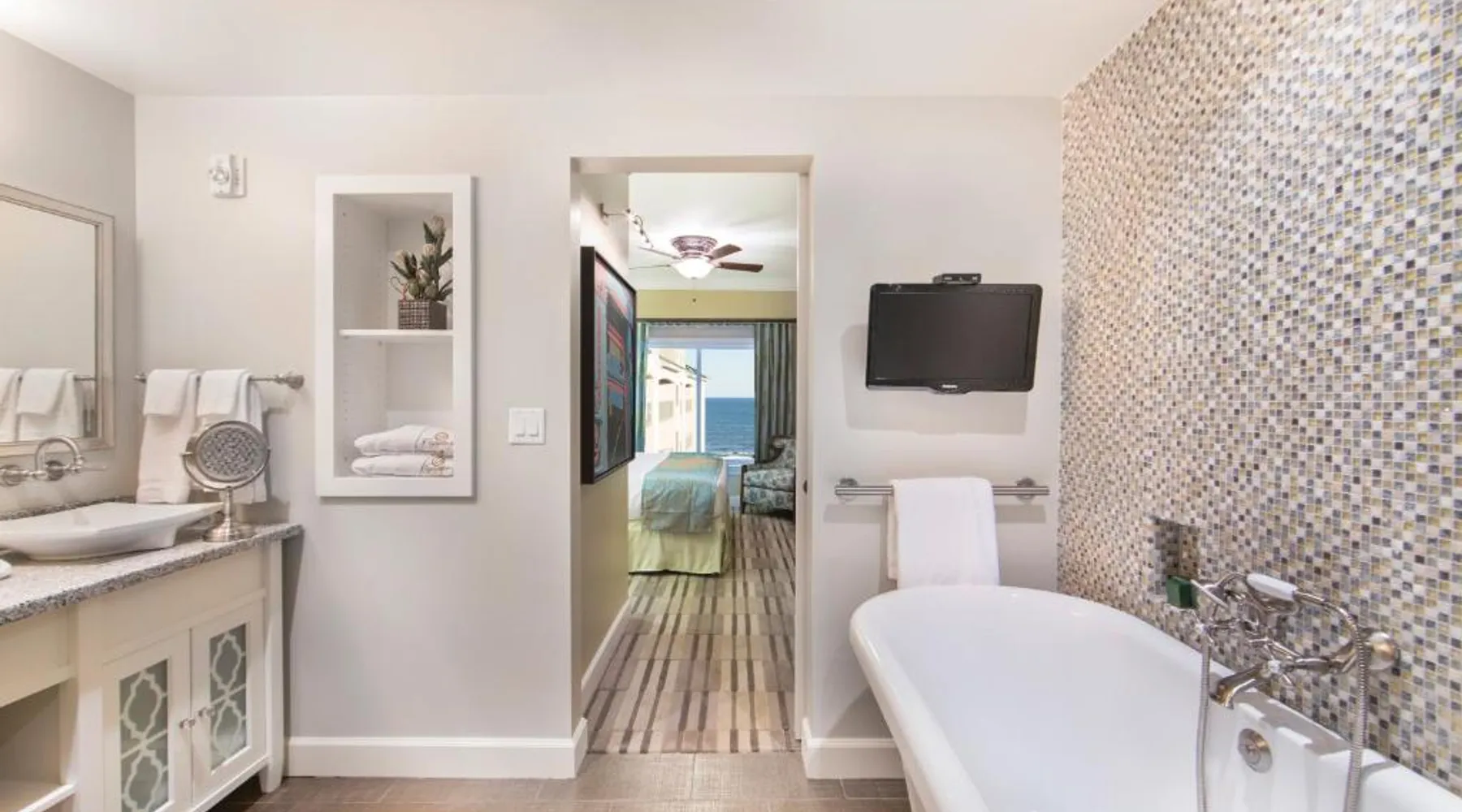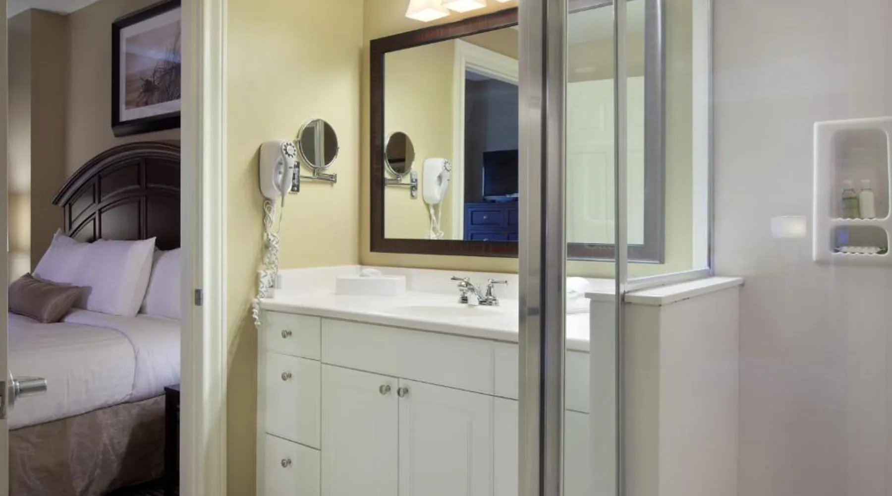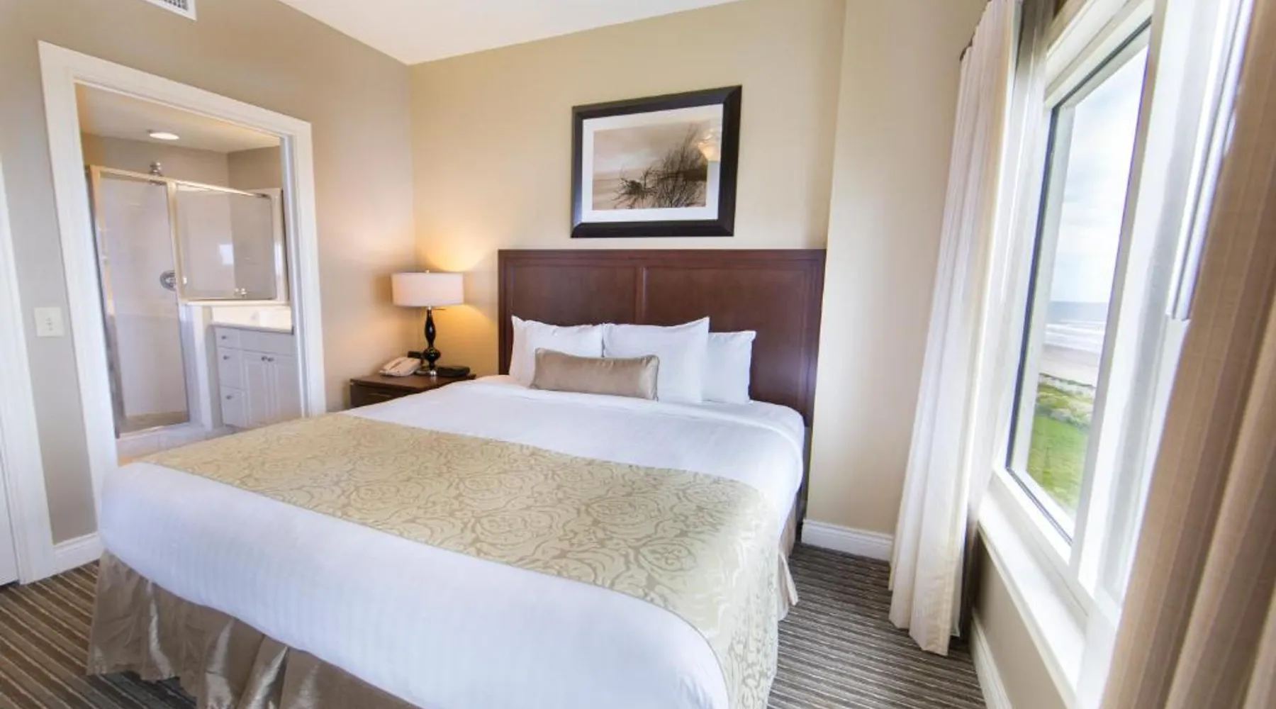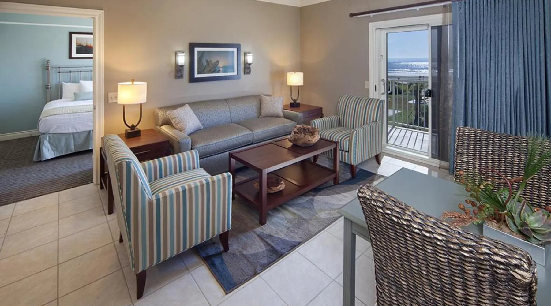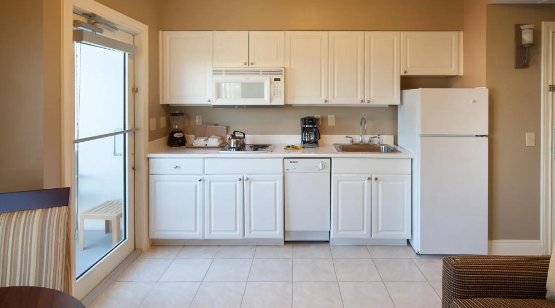 This Galveston hotel is 15 miles from the Historic Strand Entertainment District and 20 minutes’ drive from Pelican Island. It features a heated outdoor pool and spacious suites with free WiFi. A kitchenette or full kitchen is included in every self-catering suite at Holiday Inn Club Vacations Galveston Beach Resort. All suites have a living room with a sofa bed, and TV . Select rooms offer a balcony with views of the Gulf of Mexico. Free access to the on-site gym and hot tub is provided to all guests of Galveston Beach Resort. Central Houston is a 1 hour drive northwest of the hotel. William P. Hobby Airport is 45 miles away. This suite includes free Wi-Fi, a living room with sofa bed and a full kitchen.