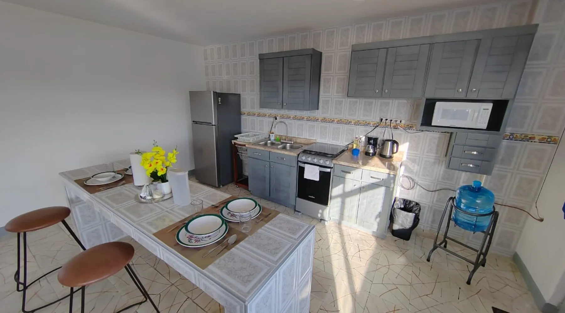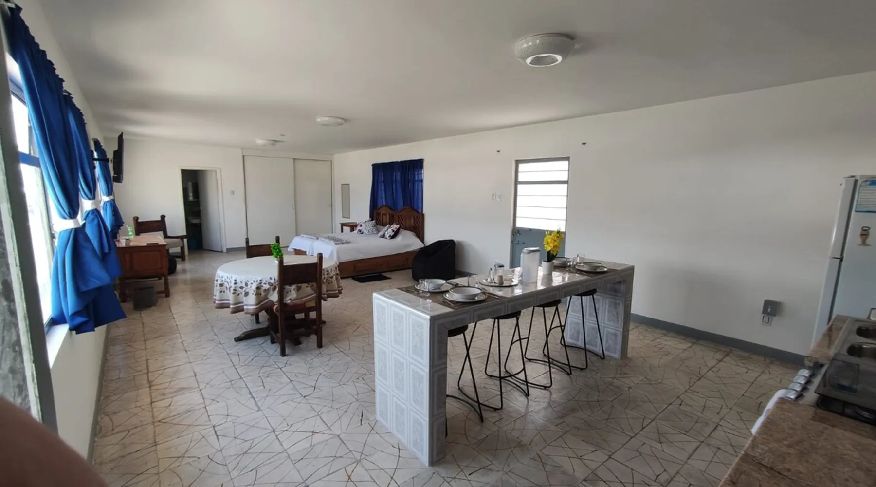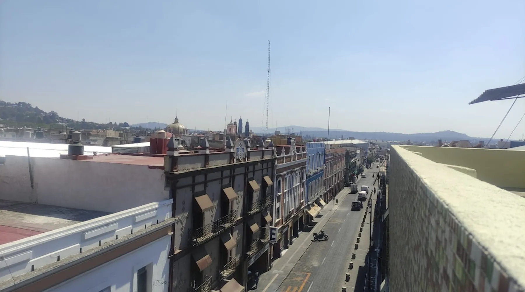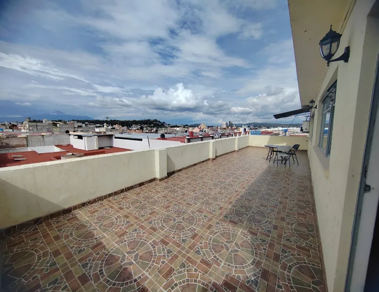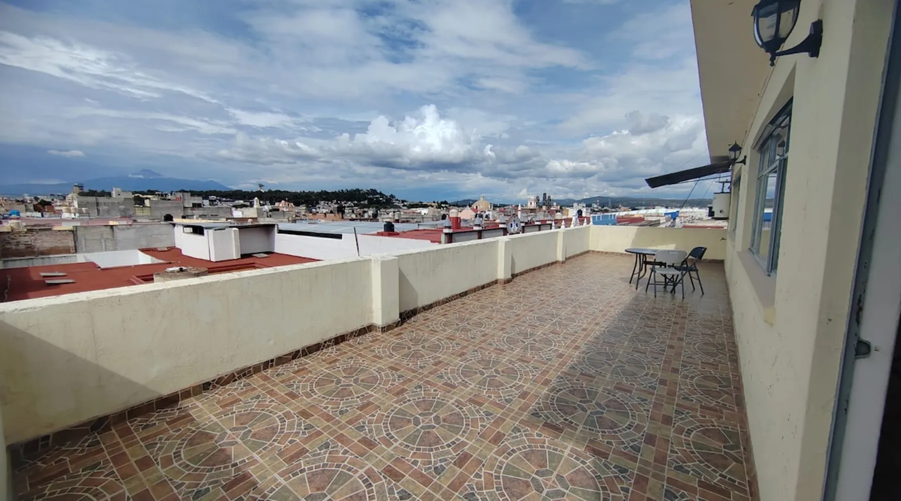 Located in the center of Puebla, 3 blocks from the Zócalo, it is a beautiful loft located on the 4th floor of the building (there is no elevator). It is a very spacious independent space, the terrace has an incredible view of La Malinche and Los Fuertes de Loreto and Guadalupe. On the corner is the eighth wonder of the world La Capilla del Rosario. The city theater and the cathedral are 3 blocks away and can be reached on foot. It is a unique space, very spacious and well lit. The space It is an open and well-lit space, during the day you can open the windows and go out to the (private) terrace to enjoy the view and the air at the table. The kitchen is on the left side, it has the basic elements to have a pleasant stay, it has a refrigerator, stove and microwave. The beds and the closet are at the opposite end, it is a large closet, it has a TV and a full bathroom Guest access Access is through the very dark green door, at the top there is a sign with gold letters that says: "Edificio Costa Brava" The key box is usually placed on the door handle, which is at the height of the lock. Other things to note It is a space shared with other apartments, so it is a very safe and intimate space, only residents have access to the building. It is located on the fourth floor and there is no elevator, the only common area is the rooftop section. The gas heater is external and must be managed from there, it is recommended to keep the pilot on if you are not contemplating bathing.