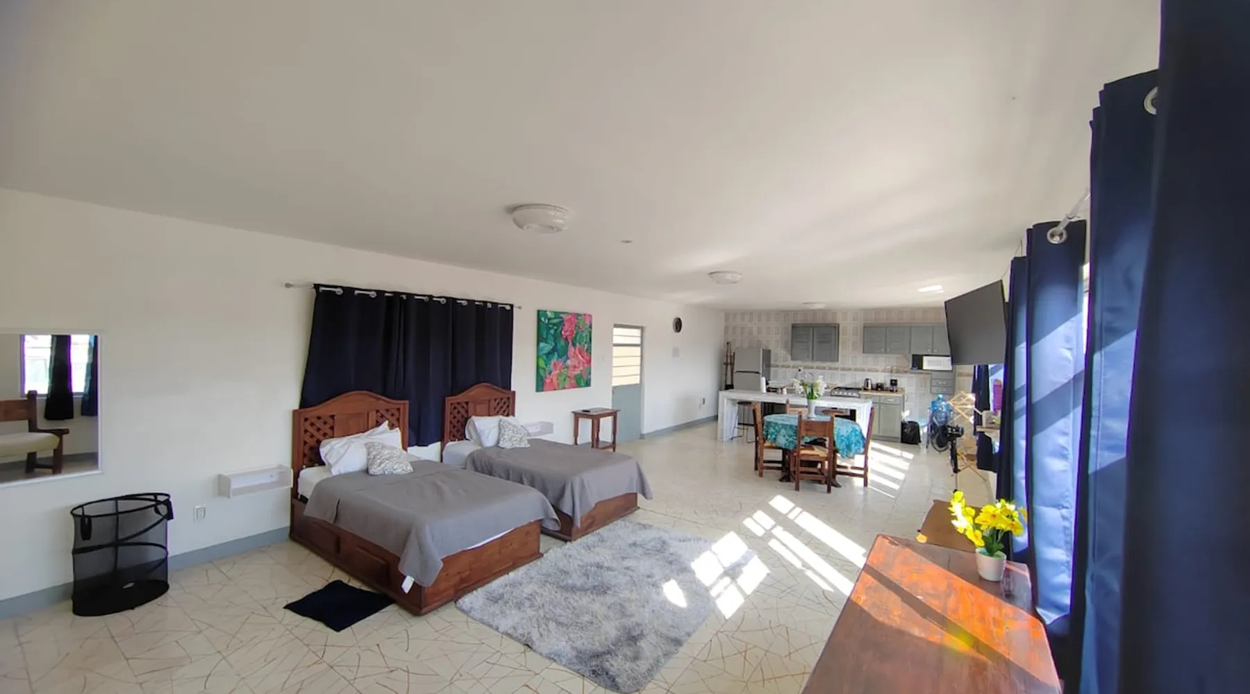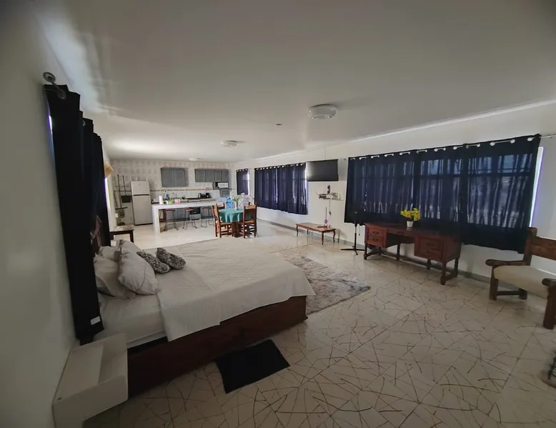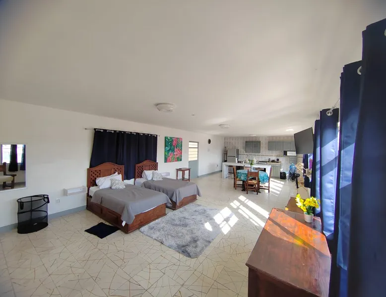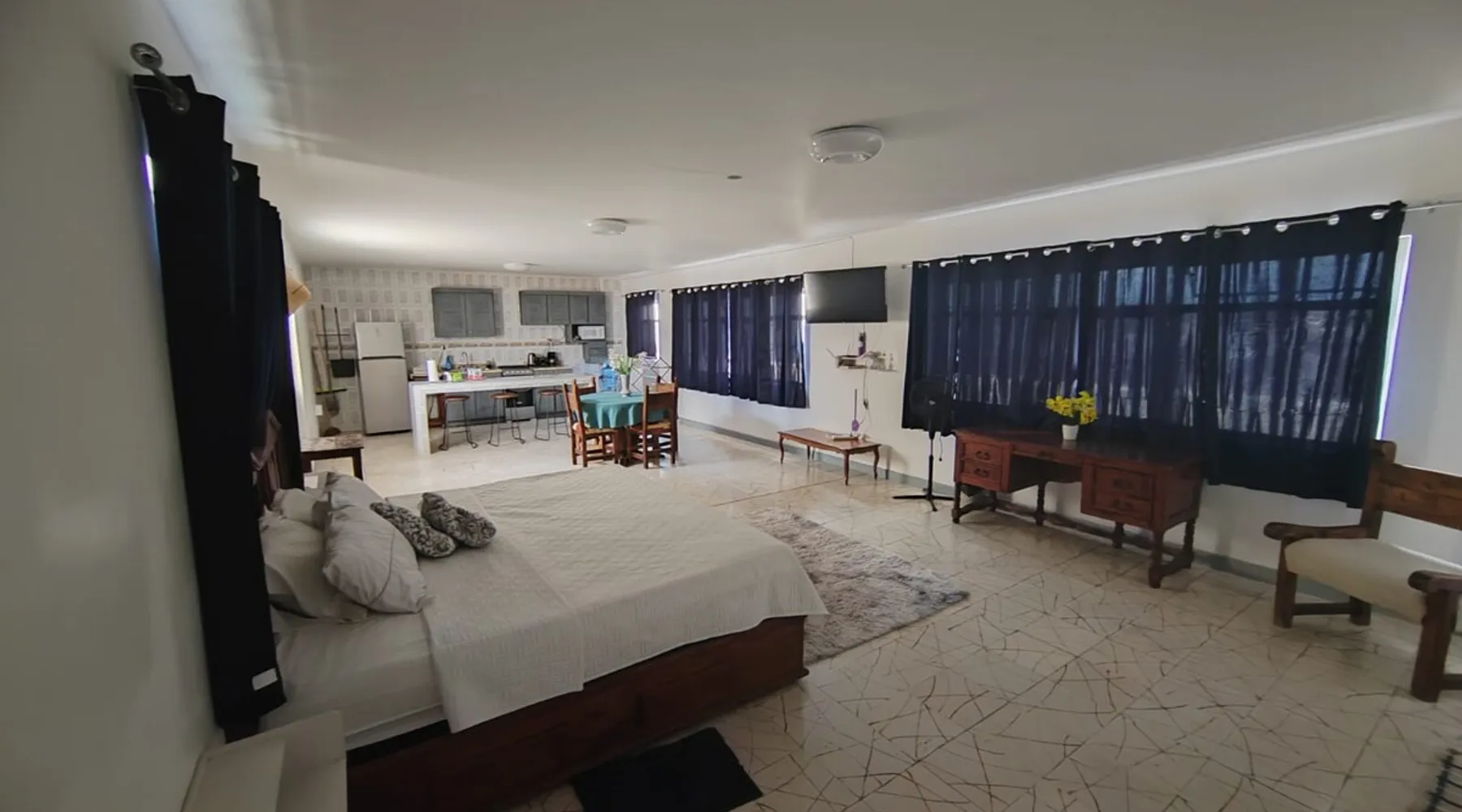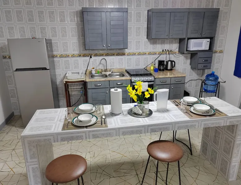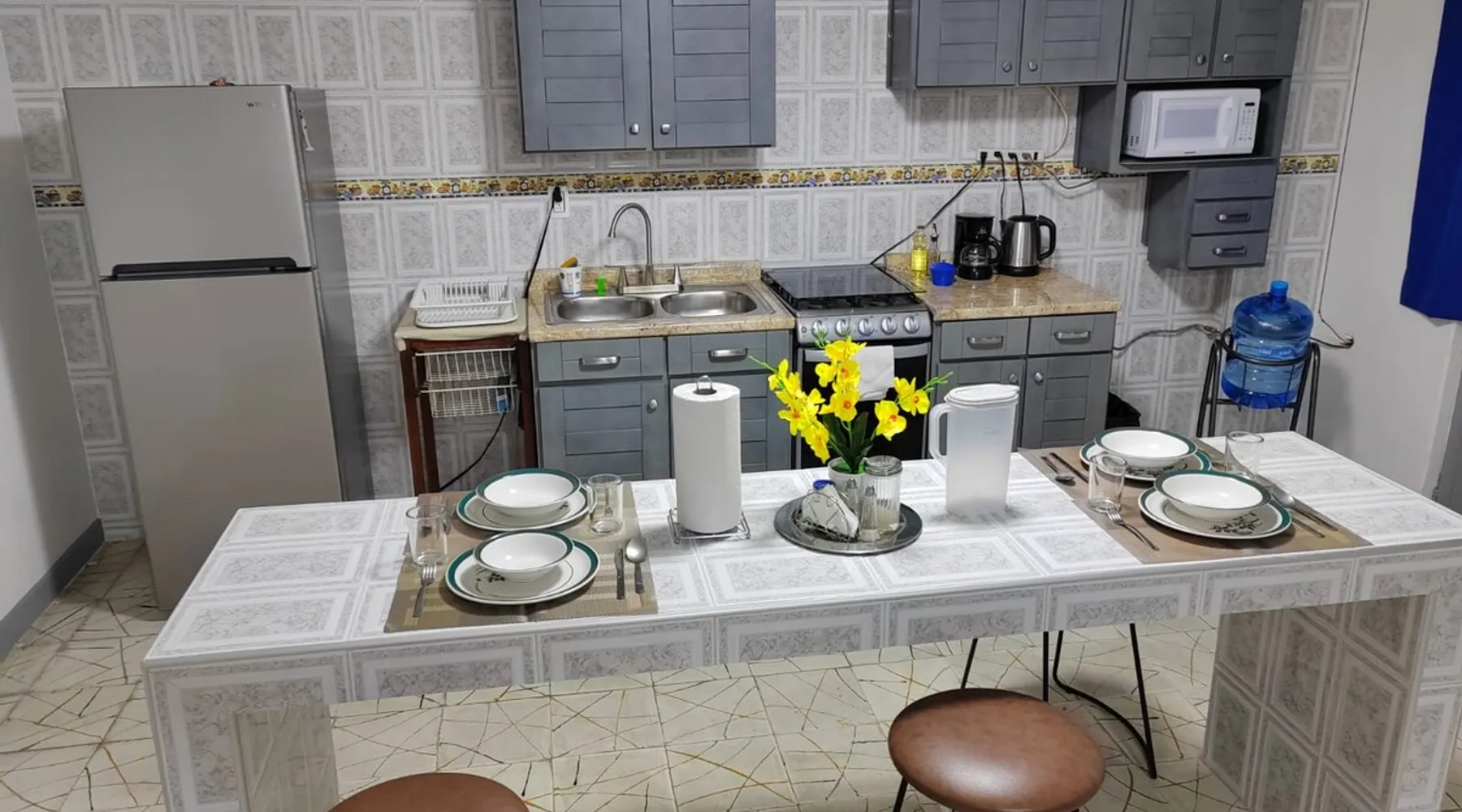 Located in the center of Puebla, 3 blocks from the Zócalo, it is a beautiful loft located on the 4th floor of the building (there is no elevator). It is a very spacious independent space, the terrace has an incredible view of La Malinche and Los Fuertes de Loreto and Guadalupe. On the corner is the eighth wonder of the world La Capilla del Rosario. The city theater and the cathedral are 3 blocks away and can be reached on foot. It is a unique space, very spacious and well lit. The space It is an open and well-lit space, during the day you can open the windows and go out to the (private) terrace to enjoy the view and the air at the table. The kitchen is on the left side, it has the basic elements to have a pleasant stay, it has a refrigerator, stove and microwave. The beds and the closet are at the opposite end, it is a large closet, it has a TV and a full bathroom Guest access Access is through the very dark green door, at the top there is a sign with gold letters that says: "Edificio Costa Brava" The key box is usually placed on the door handle, which is at the height of the lock. Other things to note It is a space shared with other apartments, so it is a very safe and intimate space, only residents have access to the building. It is located on the fourth floor and there is no elevator, the only common area is the rooftop section. The gas heater is external and must be managed from there, it is recommended to keep the pilot on if you are not contemplating bathing.