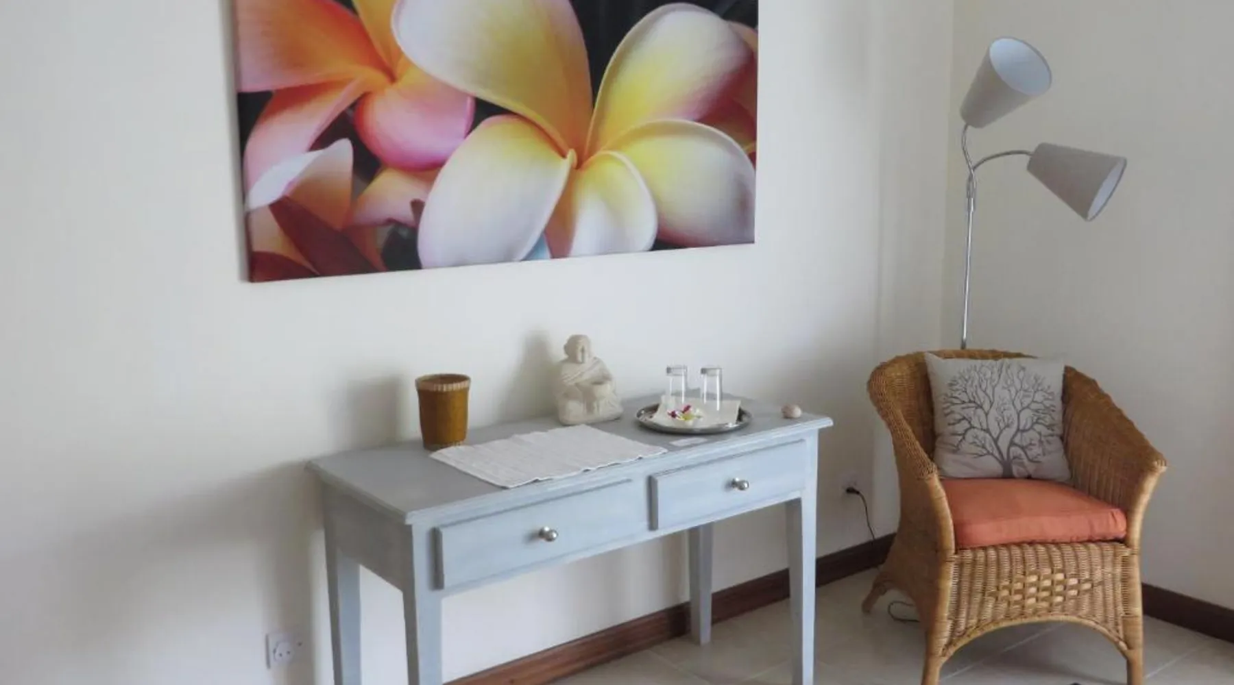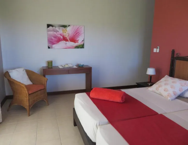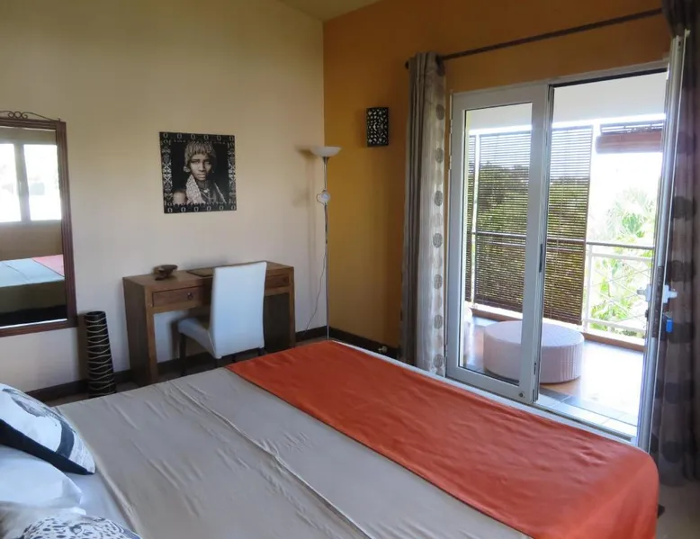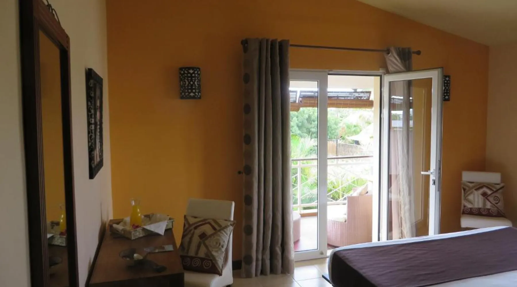Elegant Accommodations: Villa Kreola in Grand Gaube offers an adults-only bed and breakfast experience with a swimming pool with a view, sun terrace, and lush garden. Guests enjoy free WiFi, water sports facilities, and a variety of outdoor spaces. Comfortable Amenities: The property features private check-in and check-out, a lounge, shared kitchen, daily housekeeping, and free on-site parking. Additional amenities include air-conditioning, balcony, terrace, and interconnected rooms. Prime Location: Located less than 0.6 mi from LUX Grand Gaube Beach, Villa Kreola is 43 mi from Sir Seewoosagur Ramgoolam Airport. Nearby attractions include Sir Seewoosagur Ramgoolam Botanical Garden (9.9 mi) and Port Louis (17 mi). Guest Favorites: Guests highly rate the attentive host and the continental breakfast. Activities such as snorkeling and water sports enhance the stay. The double room provides air conditioning, a tea and coffee maker, a terrace with garden views as well as a private bathroom featuring a shower. The unit offers 1 bed.