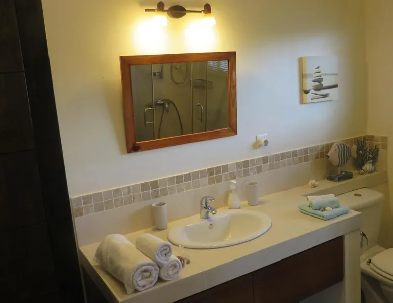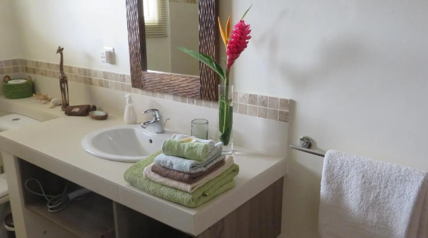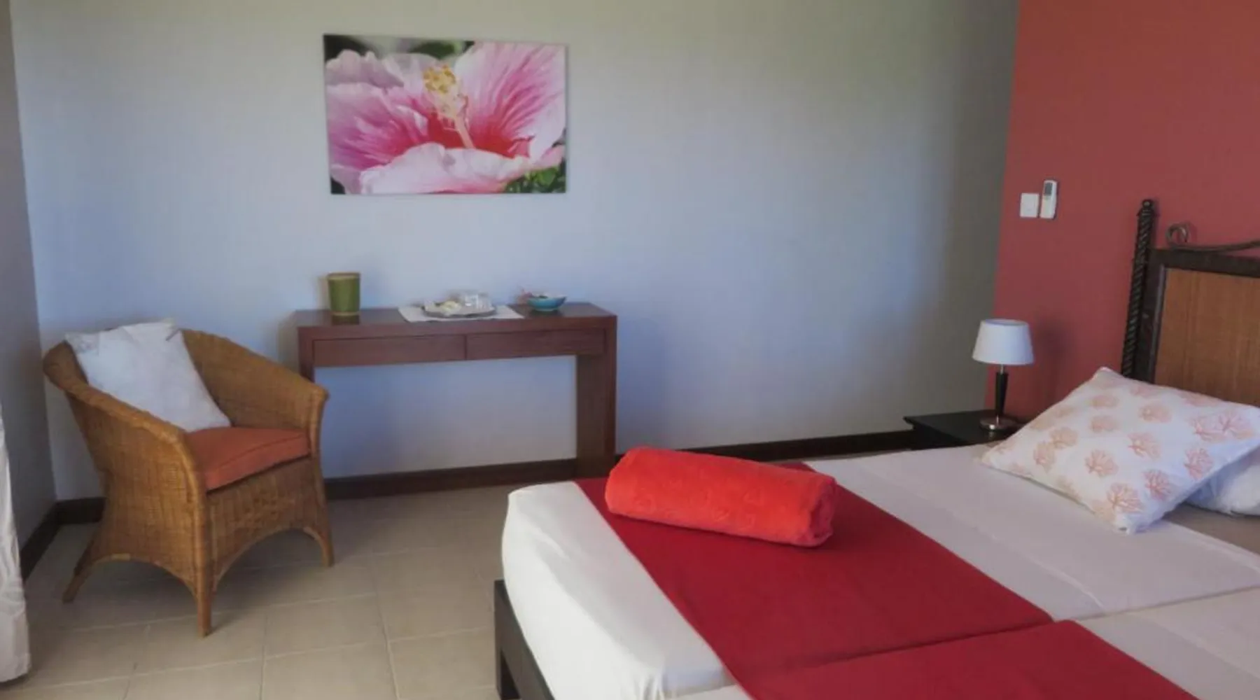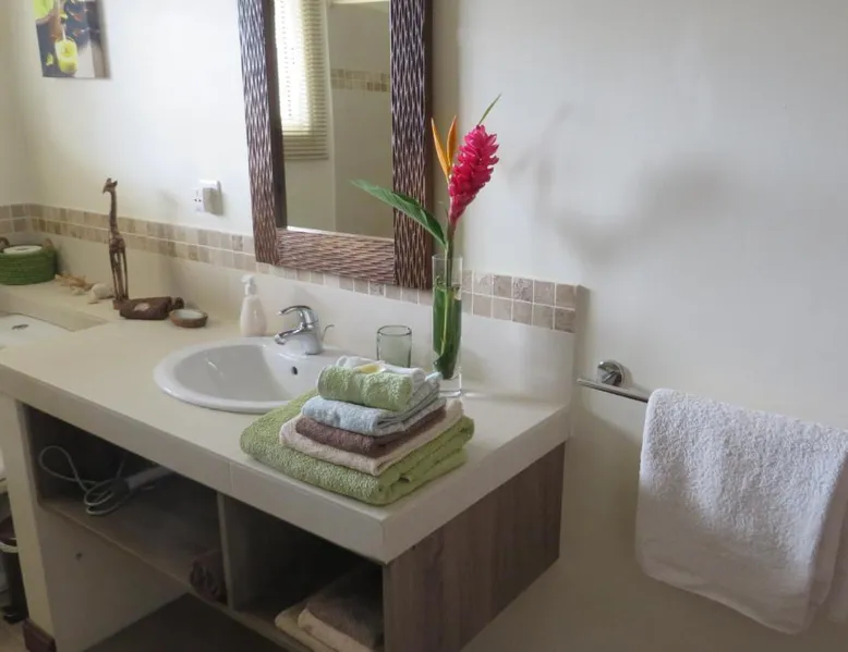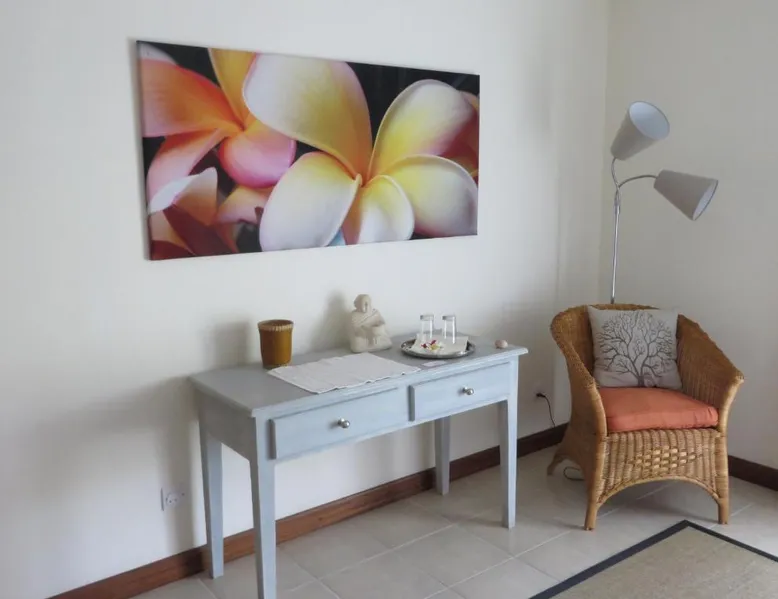 Elegant Accommodations: Villa Kreola in Grand Gaube offers an adults-only bed and breakfast experience with a swimming pool with a view, sun terrace, and lush garden. Guests enjoy free WiFi, water sports facilities, and a variety of outdoor spaces. Comfortable Amenities: The property features private check-in and check-out, a lounge, shared kitchen, daily housekeeping, and free on-site parking. Additional amenities include air-conditioning, balcony, terrace, and interconnected rooms. Prime Location: Located less than 0.6 mi from LUX Grand Gaube Beach, Villa Kreola is 43 mi from Sir Seewoosagur Ramgoolam Airport. Nearby attractions include Sir Seewoosagur Ramgoolam Botanical Garden (9.9 mi) and Port Louis (17 mi). Guest Favorites: Guests highly rate the attentive host and the continental breakfast. Activities such as snorkeling and water sports enhance the stay. The double room provides air conditioning, a tea and coffee maker, a terrace with garden views as well as a private bathroom featuring a shower. The unit offers 1 bed.