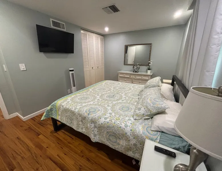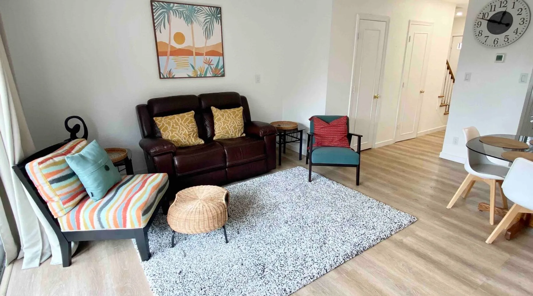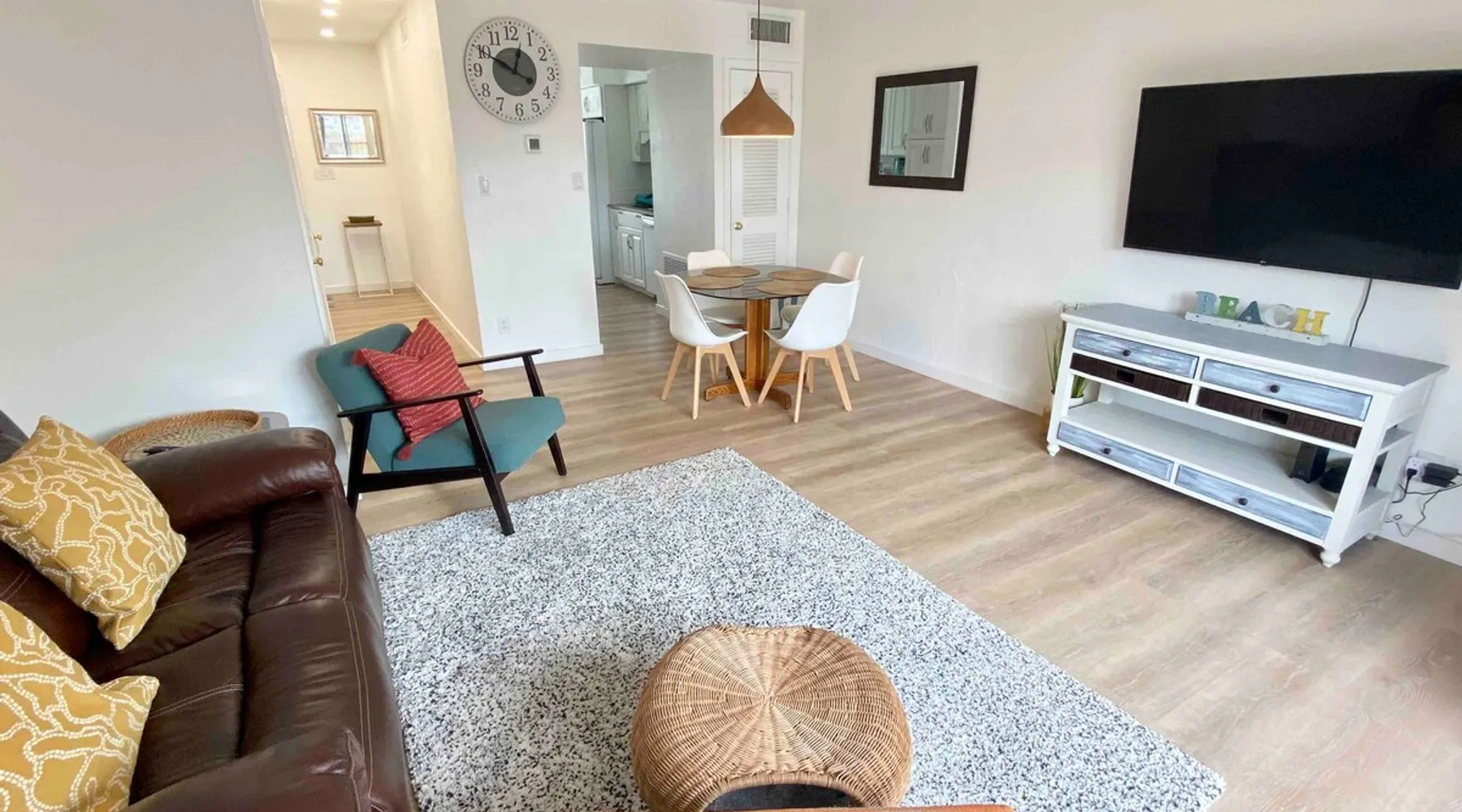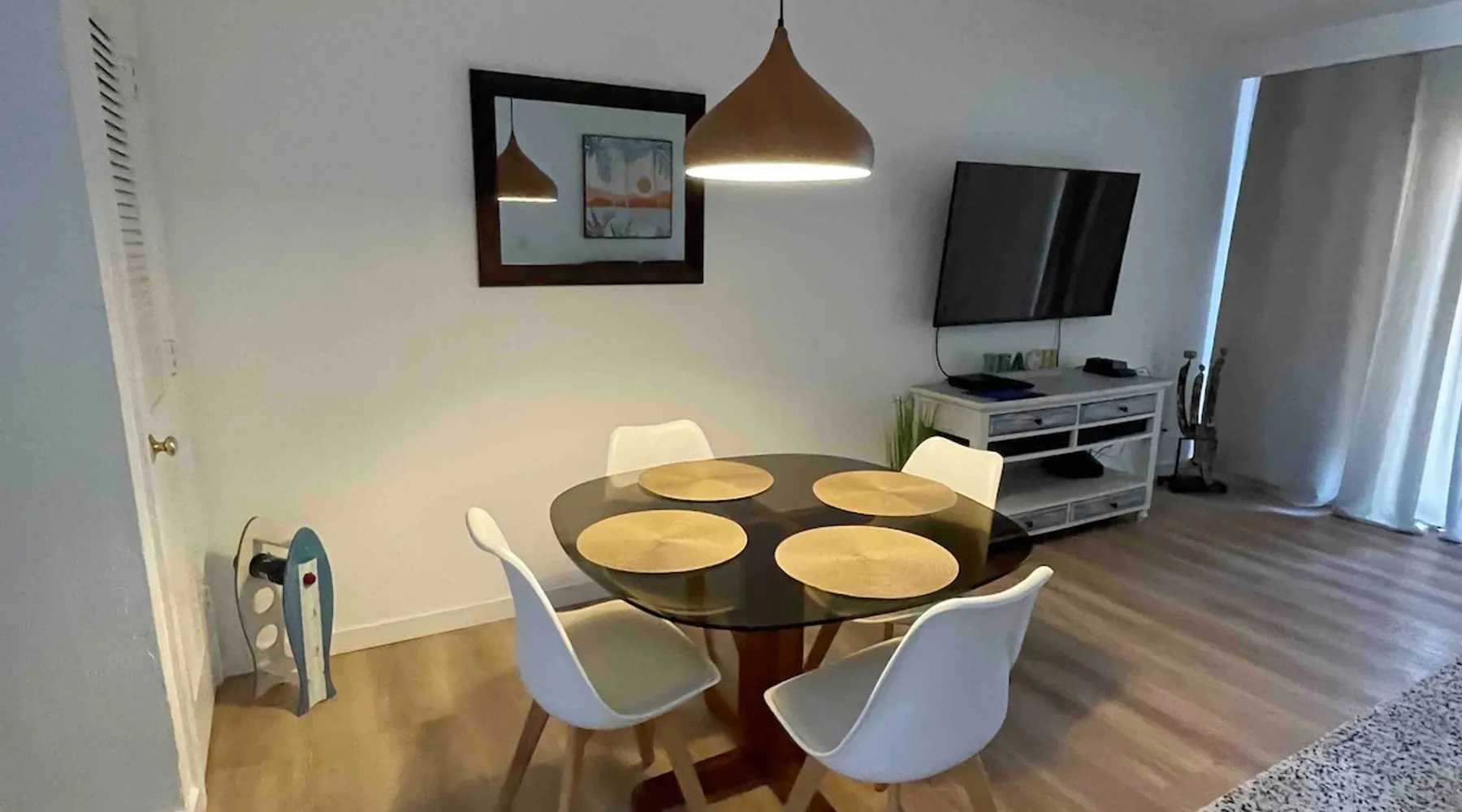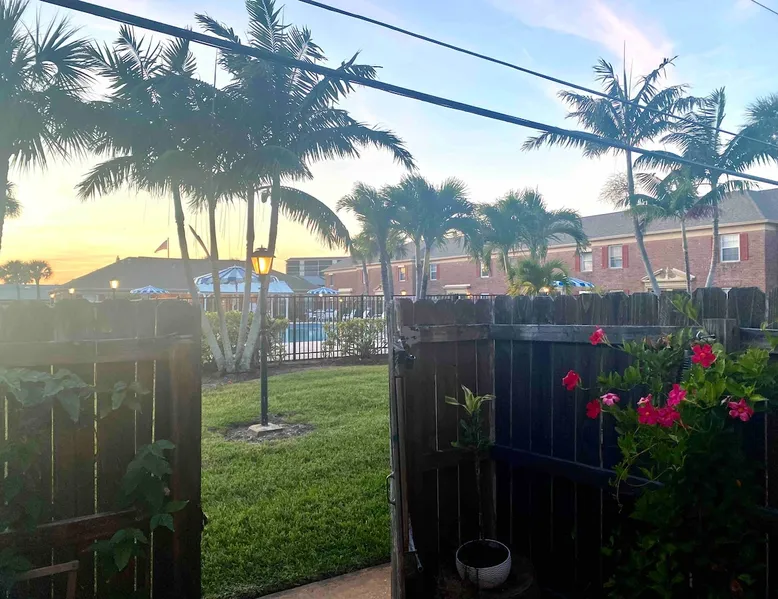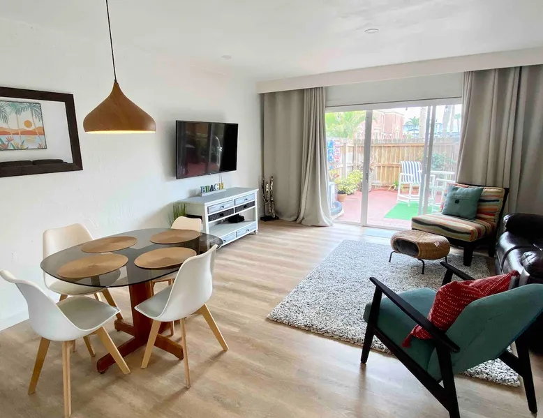 Gorgeous 2 bedroom, 1.5 bath townhouse located in a quiet community, across the street from the beach. Recently updated with all new furniture. Centrally located with plenty of restaurants either walking distance or a short drive away. Perfect place for remote workers, travelers, and those looking to get away from the cold! The space Our home has 2 bedrooms, a full bath upstairs and 1/2 bath downstairs. Looking out from the living room, you have a spacious 18x20 fenced in patio, which leads out to a heated community salt-water pool. Fully stocked kitchen; including dishwasher (with detergent), ice maker, dish soap, and paper towels to start your visit. Both bathrooms have hand soap and a couple rolls of toilet paper. Livingroom has large smart TV with high speed internet (internet even reaches pool area for some work and play). Brand new furniture. Both seats recline on the leather sofa for added comfort! Each bedroom has a large closet, dresser, and room darkening curtains. Both beds have nightstands, pillows, a quilt, and an extra blankets for chilly nights. Tenants responsible for bringing their own linens. Beach is only a 3-4 minute walk and can be accessed by crosswalk and newly updated path. The unit is equipped with 4 beach chairs, an umbrella, and 2 boogie boards. We have one designated carport spot, as well as additional parking for an extra car or visitors. Laundry room recently updated and is just across the back courtyard, on the other side of the pool, with 24 hour access. This makes it easy to throw in laundry and still hang by the pool! Machines can be paid through credit card or by downloading an app (this allows you to track how many machines are open and tells you when your laundry is done). **Pets are not allowed in the unit.** Guest access Full access to the whole home. You will have access to the pool and common areas on the property. Other things to note Please Note: The complex is currently undergoing exterior and plumbing upgrades. While work is limited to daytime hours and has not been an issue for guests, we want to be transparent. To thank you for your understanding during these improvements, we’ve temporarily lowered our rates! *Due to child with dog allergy, we are unable to accommodate guests with pets* **pillows and blankets provided. Guest responsible for bringing own linens and towels.** **$150 application fee required by HOA (you will pay the fee when applying and we will deduct $100 from your total) Please note that the application needs to be submitted at least 8 days prior to arrival to ensure everything is processed in time