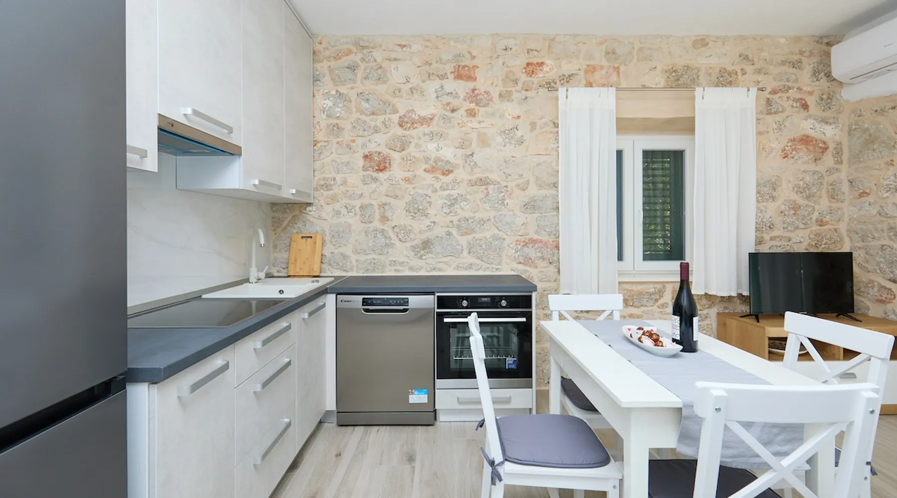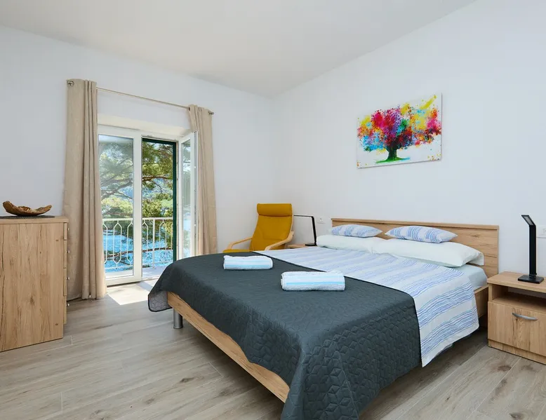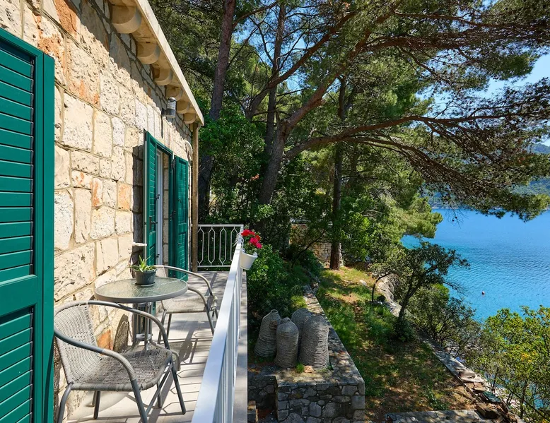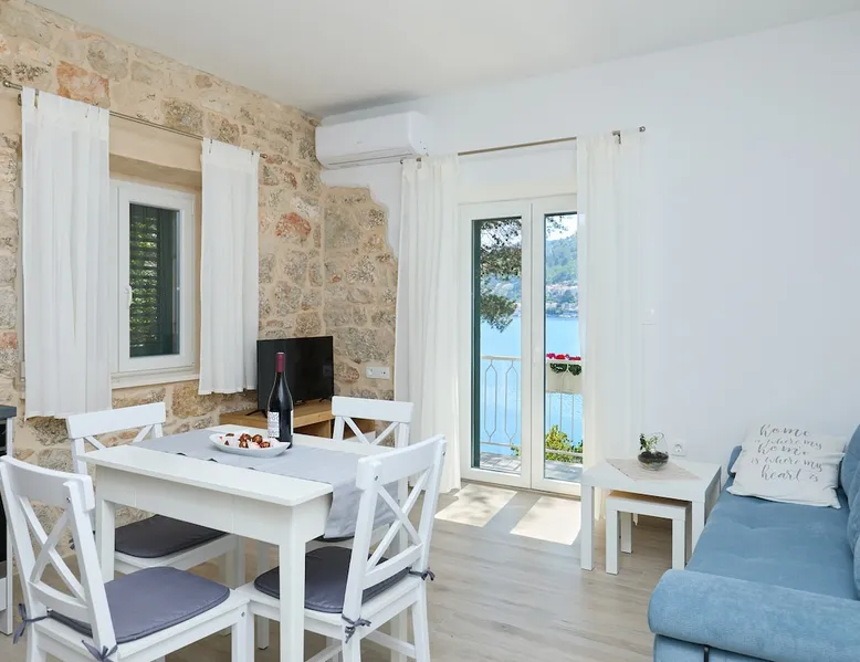 An old traditional stone house turned in cozy living space, just a few steps from the sea paradise. This newly renovated and modernly decorated apartment is placed in the family house. Consists of one bedroom, living room with a sofa bed, fully equipped kitchen and a bathroom with washing machine. Private balcony overlooking the sea stretches along the house in front of the bedroom and the living room. Parking place and a private approach to the beach.