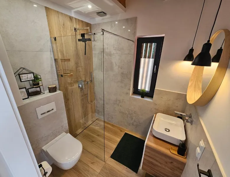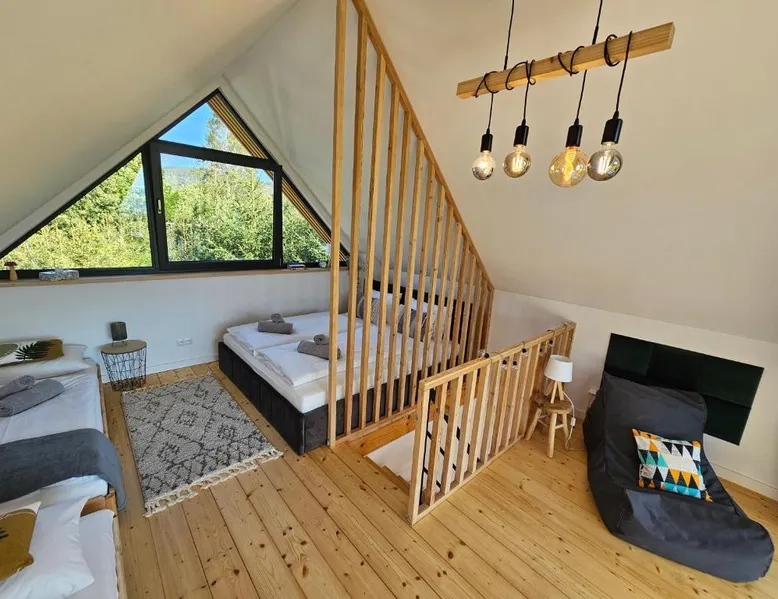 Comfortable Accommodations: Domki Pod Lasem - Domek Sosnowy in Stronie Śląskie offers a holiday home with one bedroom and a living room. The property features a sun terrace and a garden, providing relaxing outdoor spaces. Modern Amenities: The holiday home includes a kitchenette, dining area, and a fully equipped kitchen. Guests can enjoy garden and mountain views, a terrace, and an outdoor fireplace. Additional facilities include bicycle parking, barbecue facilities, and ski storage. Convenient Location: Located 73 mi from Copernicus Wrocław Airport, the property is near attractions such as Złoty Stok Gold Mine (18 mi) and Polanica Zdrój Mineral Water Pump Room (27 mi). Free on-site private parking is available. Guest Satisfaction: Highly rated for its child-friendliness and family-friendliness, the host ensures a pleasant stay for all guests. Guests will find a stovetop, a refrigerator, a dishwasher and kitchenware in the well-equipped kitchenette. The holiday home also provides guests with a barbecue. Featuring a terrace with garden views, this holiday home also provides a private entrance and a flat-screen TV. The unit offers 4 beds.