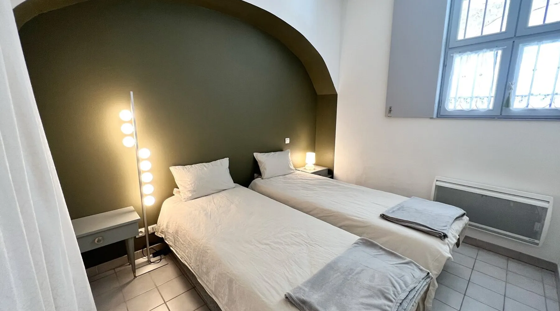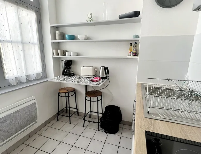 Come and discover Le Cours Passy, nice apartment located in a charming condominium. Ideally located, you will be in the heart of the city center of La Rochelle, 5 minutes from the beach. No need for a car, you can do all your Rochelaise activities on foot. The space Nice little apartment in the heart of the city center. Located in a small charming condominium in the heart of downtown La Rochelle. Guests can enjoy a sitting area with a sofa bed and TV, with a dining table. A beautiful room with 2 twin beds. Bathroom with shower. The toilets are separate from the bathroom. A small fully-equipped kitchen with fridge, oven, microwave, coffee machine, toaster and electric kettle. Bedding is provided for your stay, for 2 beds. Regarding towels these are not provided automatically, we can, if you need to make available: One large and one small for €5/guest Other things to note The twin beds in the room can be made to a double bed. You must request it 48 hours before you arrive. Our house rules are very strict regarding the consumption of tobacco in the accommodation. If we found out that this rule was broken: smoke odor, ash, cigarette butts, etc... We reserve the right to charge an additional fee of €100. Registration Details 17300001998ZX