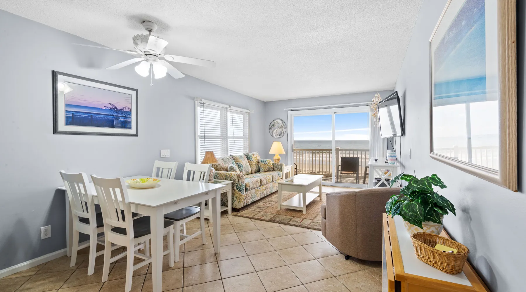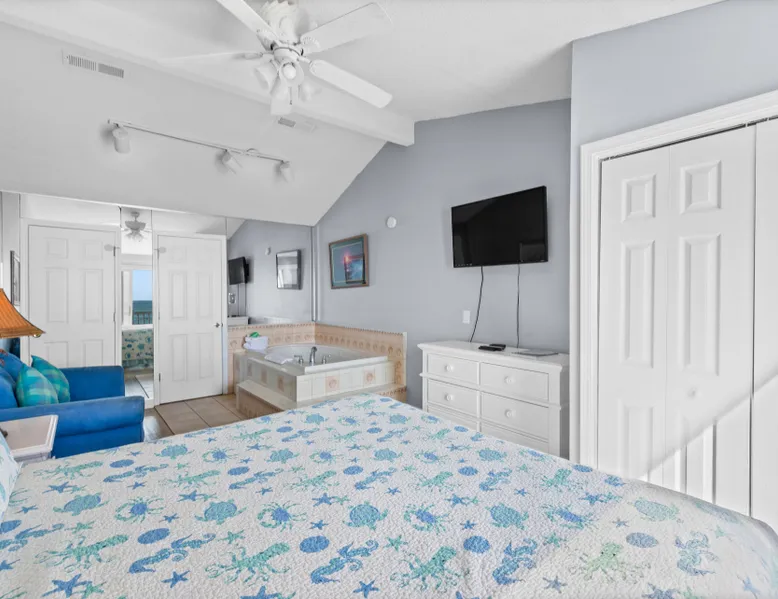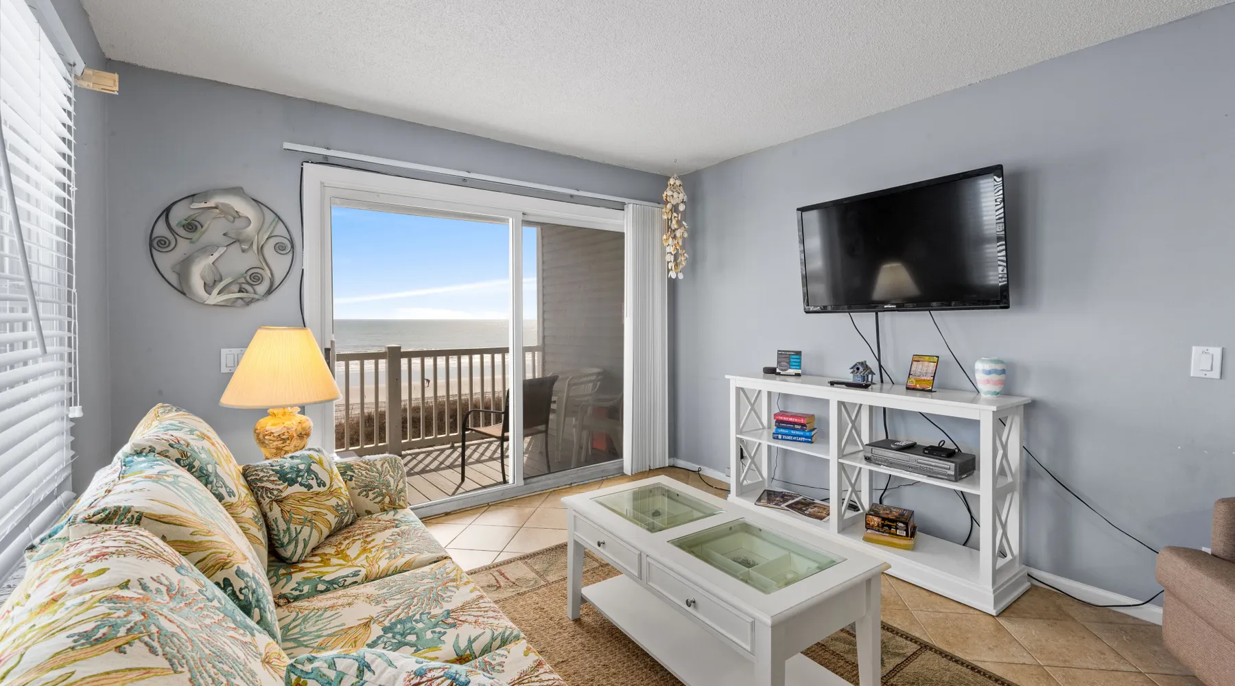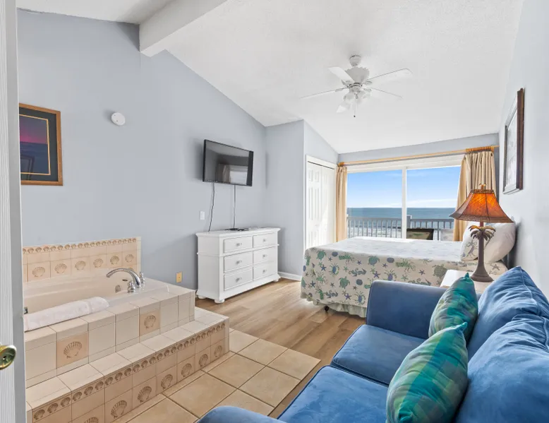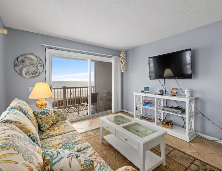 This cozy 3 Bedroom, 2 Bath condo is perfect for a small family but can accommodate up to 10 with 1 king bed in the master, 1 full in the 2nd bedroom, 2 queens in the 3rd bedroom and a sleeper sofa. All new furniture (bedrooms, living room & dining room) delivered Feb. 2022!! This is a 3rd floor unit (sorry, no elevator) with 2 oceanfront balconies. There is a fully equipped kitchen, 4 TV's and Washer/Dryer. Condo features everything that you could need to enjoy your time at the beach. Nautical Watch is located in the "Family Friendly" Windy Hill Section of North Myrtle Beach so you are close to all the major attractions without being in the middle of all the hustle and bustle. This property offers a street side outdoor pool, 2 sundecks, outside showers, grill facilities, on-site parking and free wifi. There is NO elevator. Free Fun Included Every Day! To enhance your vacation experience, North Beach Vacations has partnered with Xplorie, which means your stay includes over $250.00 in complimentary activities, per day. Just for booking with us, you’ll receive free tickets, every day of your stay to top activities like golfing, water parks, dinner shows, and more!!! ***ONLY VALID FOR SHORT TERM STAYS 27 NIGHTS OR LESS*** NO MOTORCYCLES, BOATS, RV'S, GOLF CARTS OR TRAILERS ALLOWED ONSITE! WE DO OFFER FREE PARKING AT OUR LOCAL RENTAL OFFICE IF YOU PLAN TO BRING A MOTORCYCLES, BOAT, RV, GOLF CART, TRAILER AND/OR EXCEED THE NUMBER OF VEHICLES PERMITTED PER UNIT. PARK AT YOUR OWN RISK. NO SMOKING IN UNIT OR ON BALCONY! NO PETS! 25 YEAR AGE REQUIRMENT! FOR ALL NON-FAMILY GROUPS, EVERYONE MUST MEET THIS AGE REQUIRMENT AT THE TIME OF CHECK-IN!