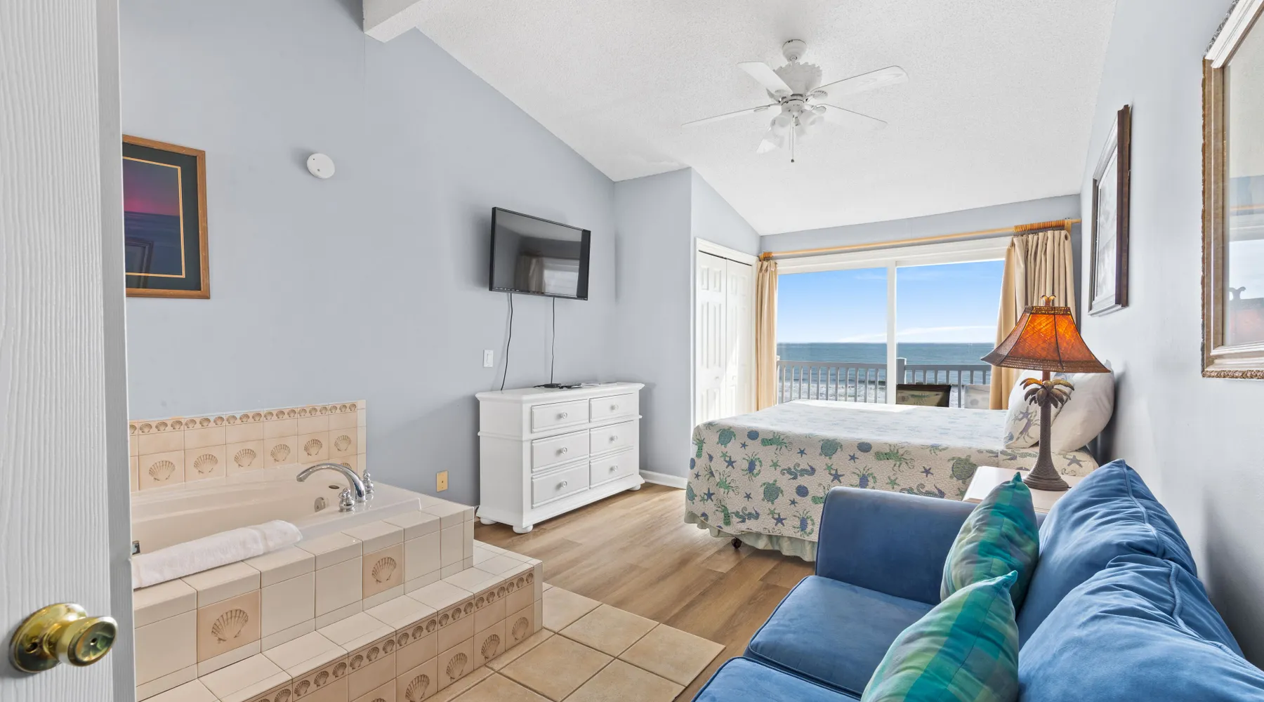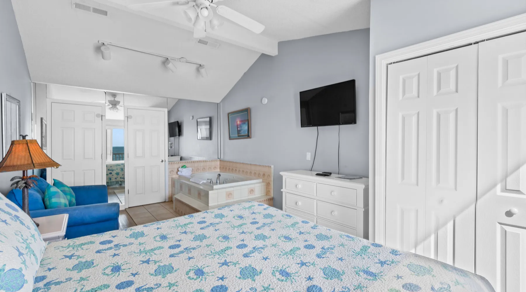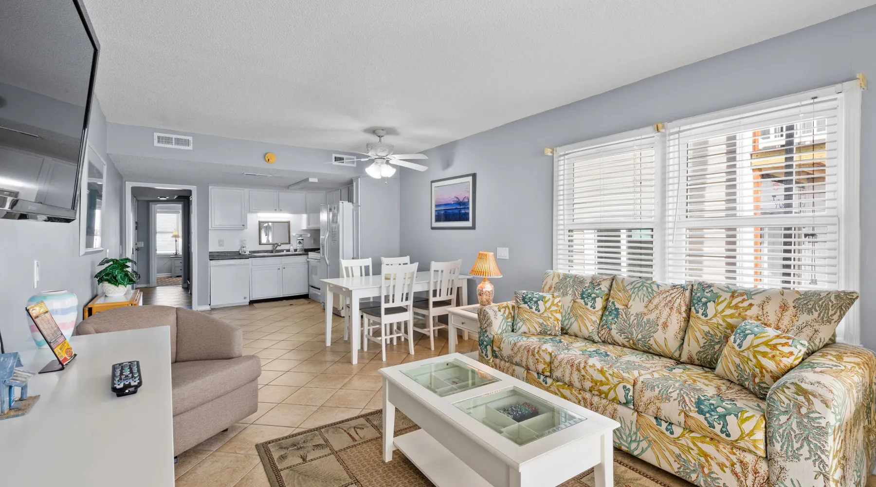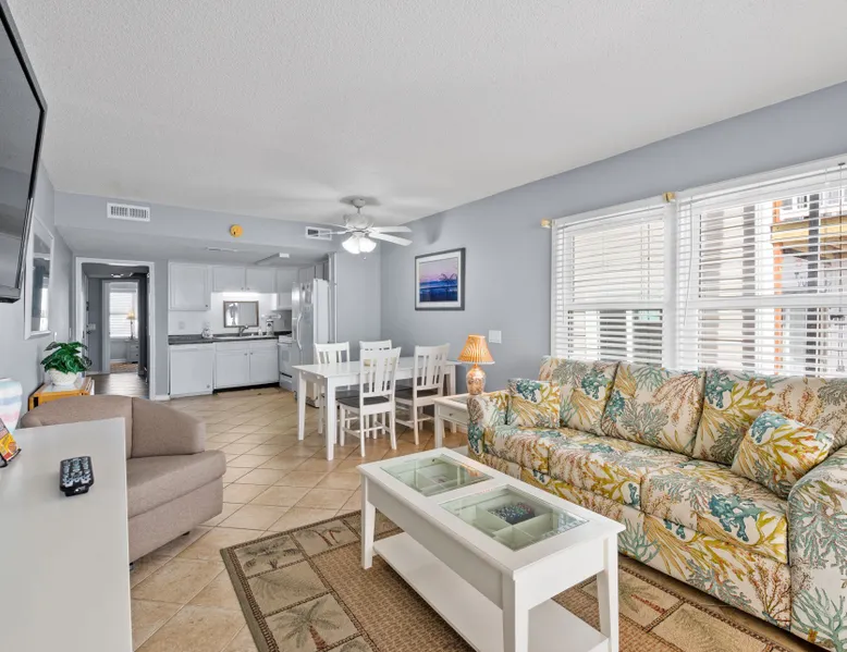 This cozy 3 Bedroom, 2 Bath condo is perfect for a small family but can accommodate up to 10 with 1 king bed in the master, 1 full in the 2nd bedroom, 2 queens in the 3rd bedroom and a sleeper sofa. All new furniture (bedrooms, living room & dining room) delivered Feb. 2022!! This is a 3rd floor unit (sorry, no elevator) with 2 oceanfront balconies. There is a fully equipped kitchen, 4 TV's and Washer/Dryer. Condo features everything that you could need to enjoy your time at the beach. Nautical Watch is located in the "Family Friendly" Windy Hill Section of North Myrtle Beach so you are close to all the major attractions without being in the middle of all the hustle and bustle. This property offers a street side outdoor pool, 2 sundecks, outside showers, grill facilities, on-site parking and free wifi. There is NO elevator. Free Fun Included Every Day! To enhance your vacation experience, North Beach Vacations has partnered with Xplorie, which means your stay includes over $250.00 in complimentary activities, per day. Just for booking with us, you’ll receive free tickets, every day of your stay to top activities like golfing, water parks, dinner shows, and more!!! ***ONLY VALID FOR SHORT TERM STAYS 27 NIGHTS OR LESS*** NO MOTORCYCLES, BOATS, RV'S, GOLF CARTS OR TRAILERS ALLOWED ONSITE! WE DO OFFER FREE PARKING AT OUR LOCAL RENTAL OFFICE IF YOU PLAN TO BRING A MOTORCYCLES, BOAT, RV, GOLF CART, TRAILER AND/OR EXCEED THE NUMBER OF VEHICLES PERMITTED PER UNIT. PARK AT YOUR OWN RISK. NO SMOKING IN UNIT OR ON BALCONY! NO PETS! 25 YEAR AGE REQUIRMENT! FOR ALL NON-FAMILY GROUPS, EVERYONE MUST MEET THIS AGE REQUIRMENT AT THE TIME OF CHECK-IN!