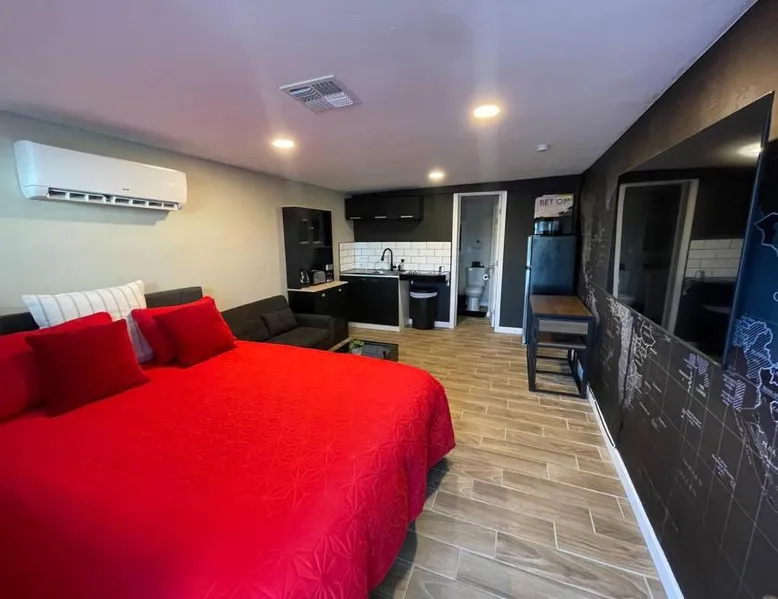 Comfortable Living Space: New Midtown Modern Studio With Backyard (Unit B) in Phenix offers a one-bedroom apartment with a private entrance. The property features a fully equipped kitchenette, air-conditioning, and a washing machine. Essential Amenities: Guests enjoy free WiFi, free on-site private parking, and a patio with a barbecue. Additional amenities include a tea and coffee maker, hairdryer, refrigerator, free toiletries, shower, TV, and wardrobe. Convenient Location: Located 3.7 mi from Phenix Sky Harbor International Airport, the apartment is near Phenix Convention Center (4.3 mi), Heard Museum (2.5 mi), and Phenix Art Museum (3.1 mi). Reception staff speak English. Guests will find a stovetop, a refrigerator and kitchenware in the kitchenette. The apartment also offers a barbecue. The apartment provides air conditioning, a washing machine, a private entrance, a tea and coffee maker and a flat-screen TV. The unit offers 1 bed.