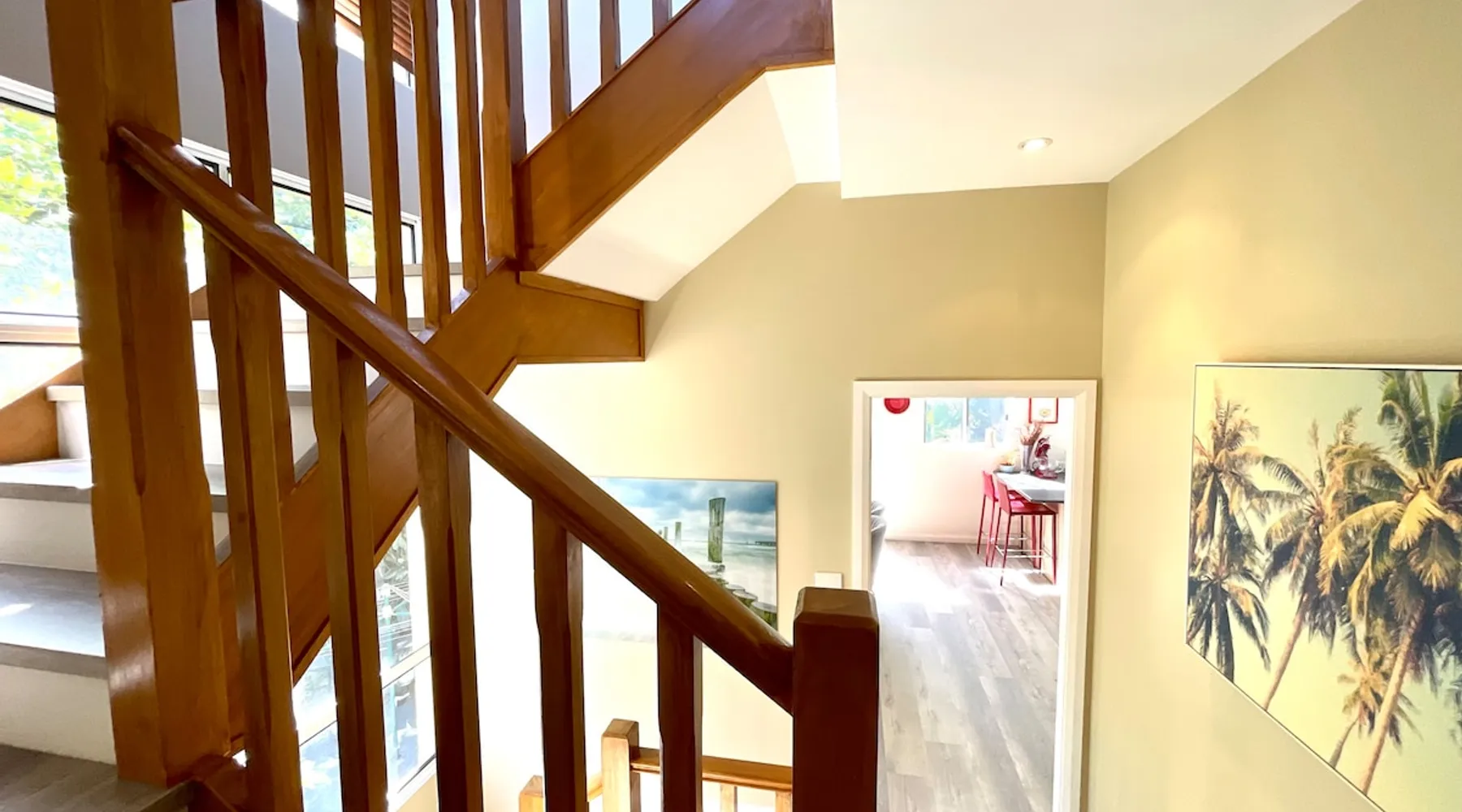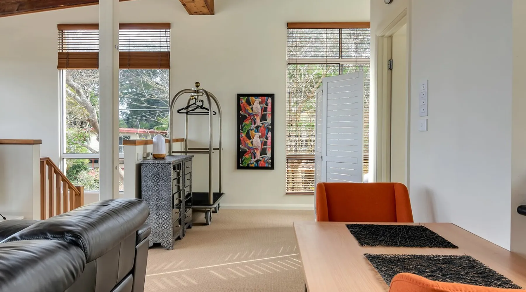 Set over two levels of living spaces, our multi-storey duplex style house consists of 2/3 bedrooms, dining, kitchen, bathroom, laundry. Two bedrooms on the first level. Separated and private. Further up one floor is the main lounge, kitchenette and bathroom capturing beautiful lake vistas in a truly tranquil setting. Features.. - Multi-zone living/ Duplex - Aircon - Wi-Fi - Views The space Living Space (Upper level with views) - Open plan - Flat Screen Smart TV - Wifi - 5 Seater corner lounge - 2 Seater dining table - Kitchenette - Bathroom - Tranquil water views and beautiful outlook. Middle Floor (can be locked with own entry via the stairwell) - Two bedrooms - One bedroom with Queen Bed - One bedroom with double sofa bed - Bathroom with bathtub and shower - Laundry with washing machine, dryer and tub. - Full size kitchen - Dining Table and 6 chairs - Smart TV - Wi-fi - Study nook with table, chairs and bookshelf. Upper Floor - Lounge area and TV - Great views! - Kitchenette - Bathroom with shower - Double Bed (open studio space) Outdoor Terrace -Access from elevated ground floor via stairs -Dining table and 6 chairs -Sitting lounge area The house has a roomonitor device, this measures sound levels to ensure no parties or disruption to neighbours. It does not record sound, just monitors the houses decibel rating. Great features of North Narrabeen Getaway : - The location is perfect, on the Northern Beaches. A short drive to all the attractions of the Northern Beaches. IMPORTANT THINGS TO NOTE: - The home is a duplex. Its split in two and access is from the left hand side. A tenant resides on the right hand side, and has a backyard at the back of the property which is separated and private. There is No shared spaces or entry. - From time to time you may hear the neighbours in their yard, but all areas are separated and private. - The upstairs level is open plan, has a split system aircon and a studio style. - The downstairs middle floor is a separate area, can be left open or locked for privacy as a separate private space. It is the location of the two bedrooms, main kitchen, laundry and dining area. aircon in main bedroom - The entire duplex is three levels, accessed by stairs. There is two flights of stairs from the ground floor to the first level, and a further two flights to the second top floor. - Its a leafy garden location, so please expect leaves and debris in the garden. We do regular sweeping and maintain the garden but there will still be leaves from time to time. - The carspace is on the left hand side of the drive way and a gravel based carspace. The concrete drive way is for the other tenant. We recommend street parking as it’s free and Please see below more important information below. Guest access - You can use all the house and the terrace exclusively and privately. - We do not provide beach towels so guests have to bring their own. - One towel is provided per person per stay. We also include single use shampoo, soaps, body wash, toilet, coffee/ tea/ sugar and some provisions to get you started. They are not replenished during your stay. Other things to note: During your stay we can provide extra cleaning or linen change. We will need at least 24 hours notice, please enquire for pricing. Check in For personal check ins please ensure to have your id, and it needs to match the name on the booking. Check ins are from 3pm. There is strictly NO PARTIES or EVENTS to be held at the house . No refund will be given on the stay if building and booking rules are violated. We do not accept third party bookings. The person checking in must be the person who has made the booking. *If you are a corporate or insurance booking, contact us in advance to make the arrangements for a third party booking. Early/Late Check-in and Late Check-out will usually not be available, as our cleaning team requires sufficient time to clean and prepare between guests. Luggage storage is NOT available as its a residential home. Guest must use their own Netflix, Youtube and Stan accounts etc. Some additional costs below: Lost keys - $100 Lock out fee - $50 9am to 7pm / $90 9pm to 1am The house can have no more than 6 people staying. No large gatherings or groups can be accommodated at this house as it’s a quiet residential street with excellent neighbours. Guest access Entire home is yours to enjoy privately. Courtyard on the left hand side is private and not shared Duplex home with residence living on the right hand side, with their own private entry and back yard to the rear of the property Other things to note Duplex Style Home Registration Details PID-STRA-12798