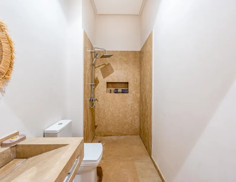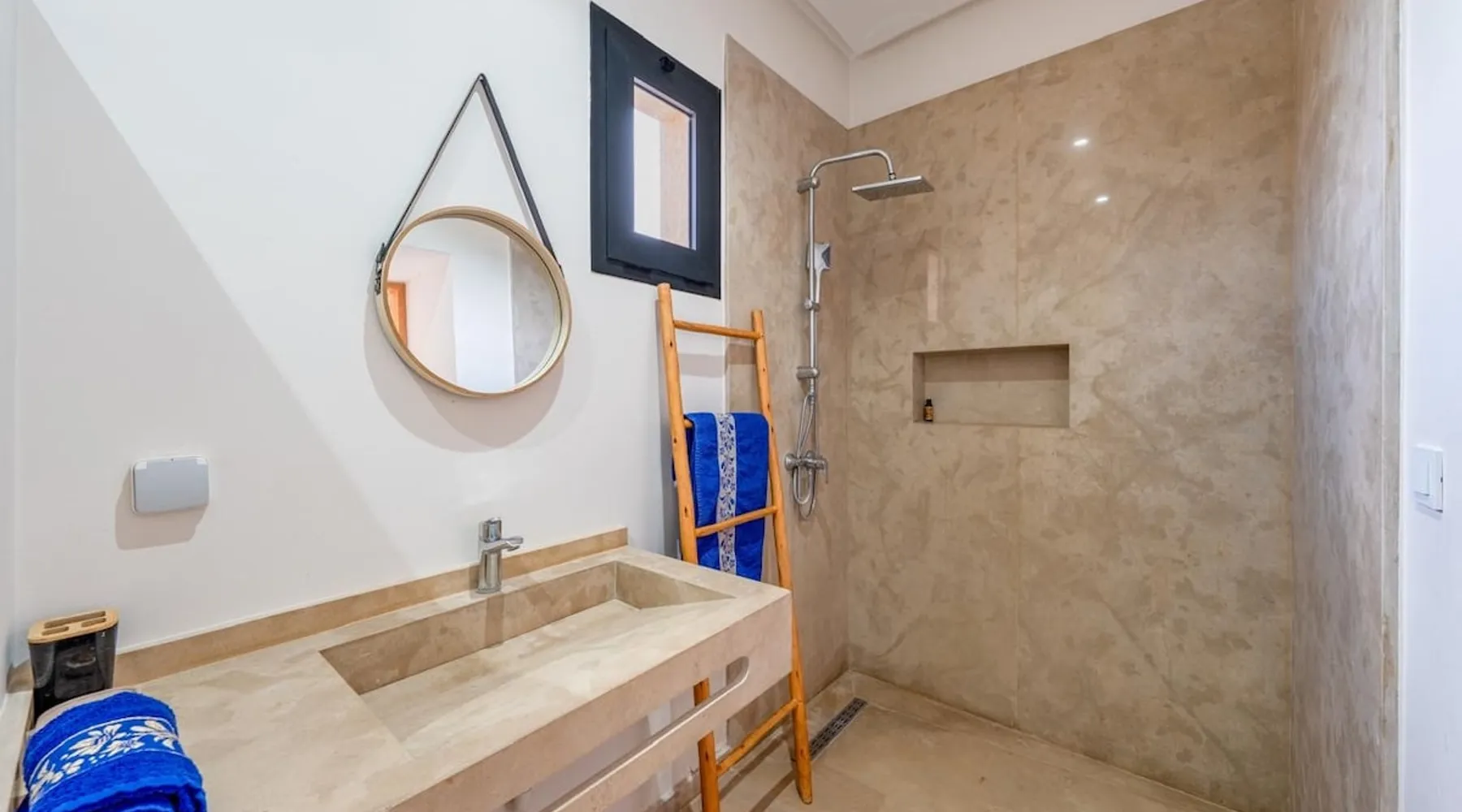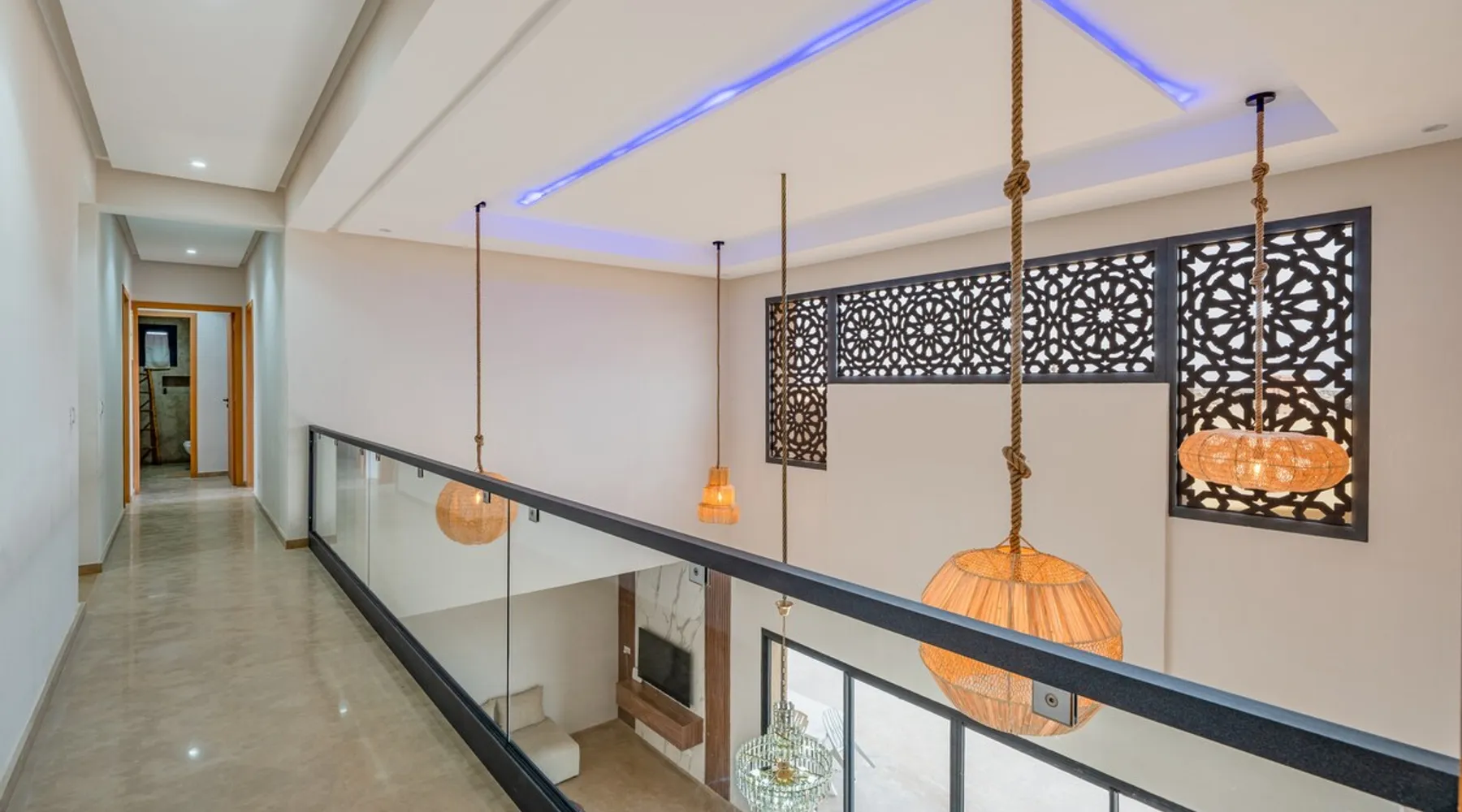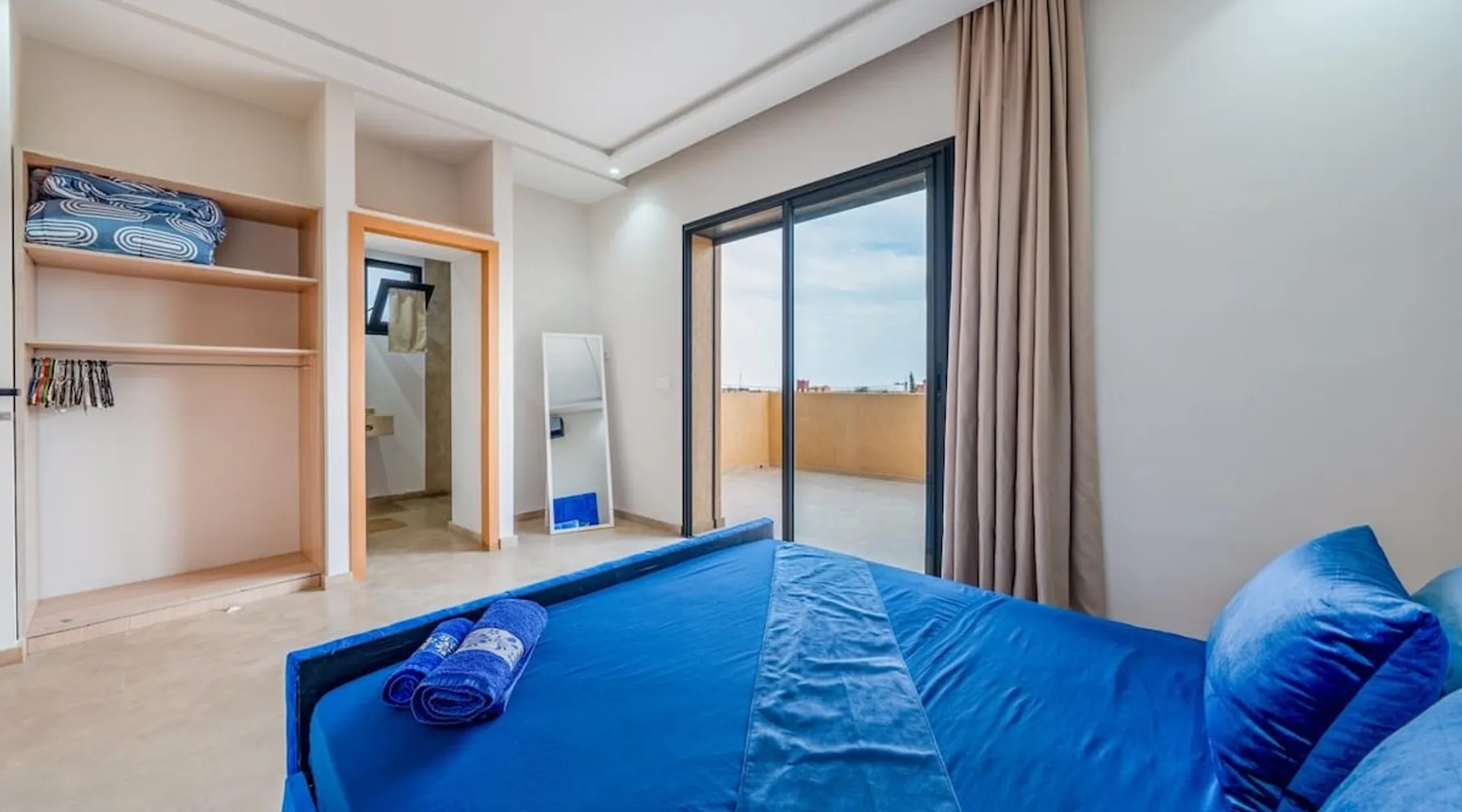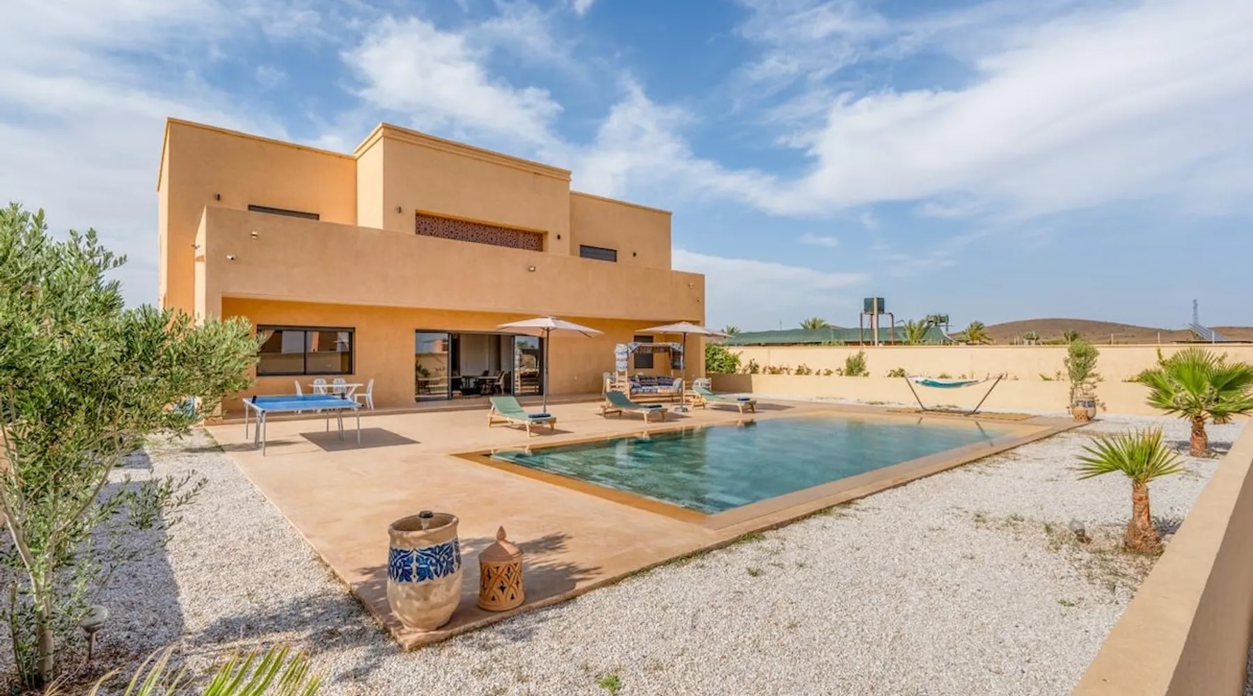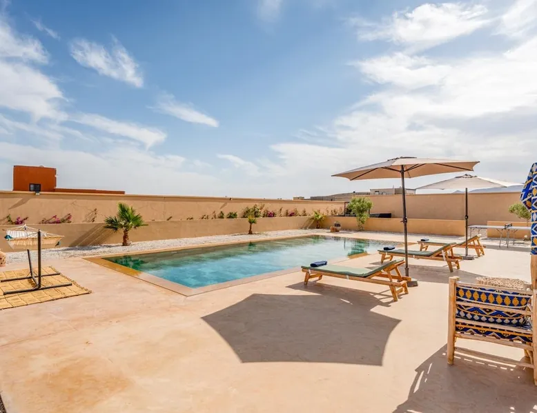 Luxury villa with infinity pool and football field, with views of the Atlas Mountains, 5 master suites with private bathrooms, including one on the garden level and its traditional Hammam will have everything to seduce you. Private transfer possible with a supplement. A €500 security deposit is required upon arrival to cover any damage. It will be fully refunded after verification of the accommodation. The space Luxury luxury villa with 180 degree views of the Atlas Mountains, infinity pool, two living rooms, patio, indoor fountains, a Royal suite, four Princières suites, traditional Hammam, fully equipped kitchen. Guest access Entire Villa Other things to note 400m2 villa with mountain views, infinity pool and it's 5 master suites.