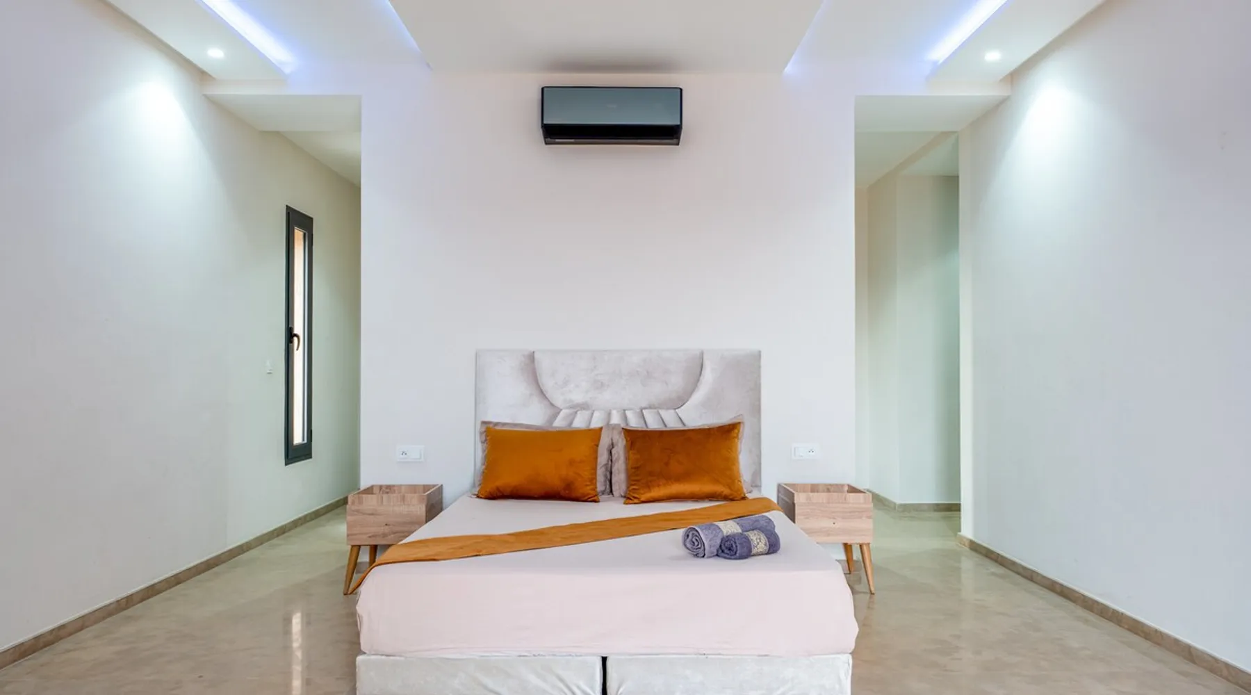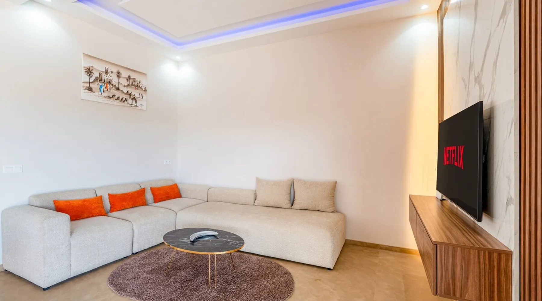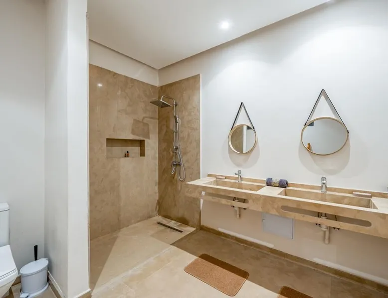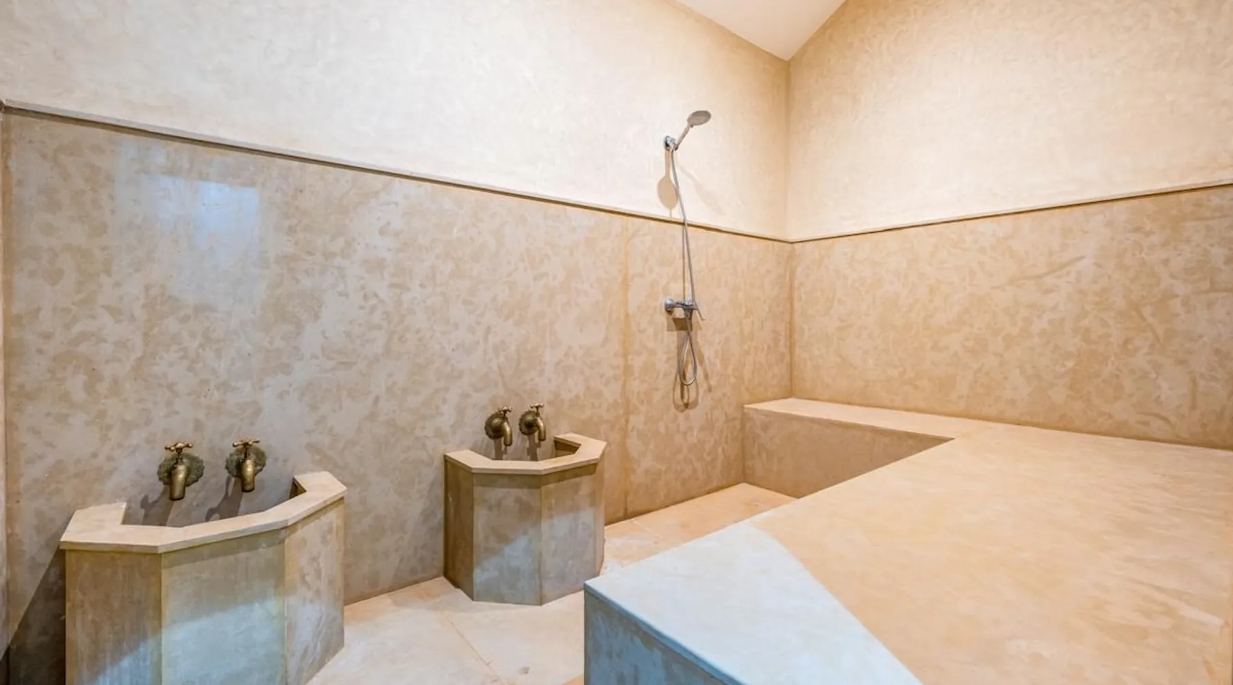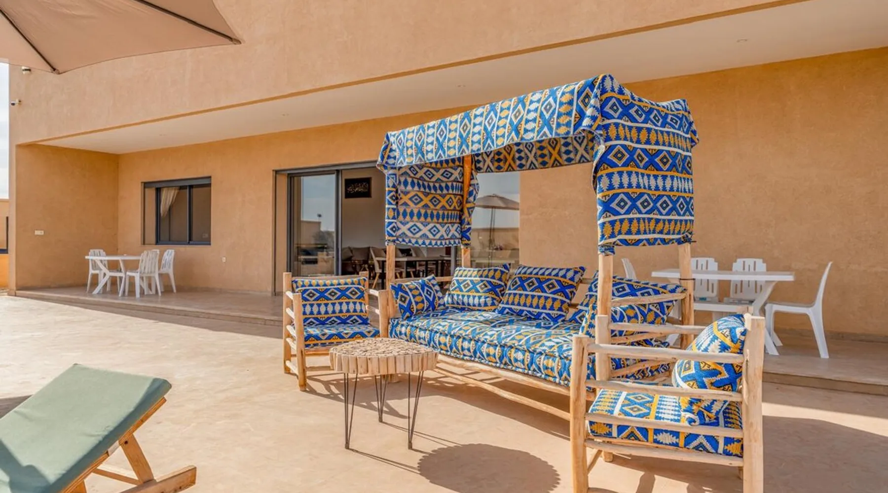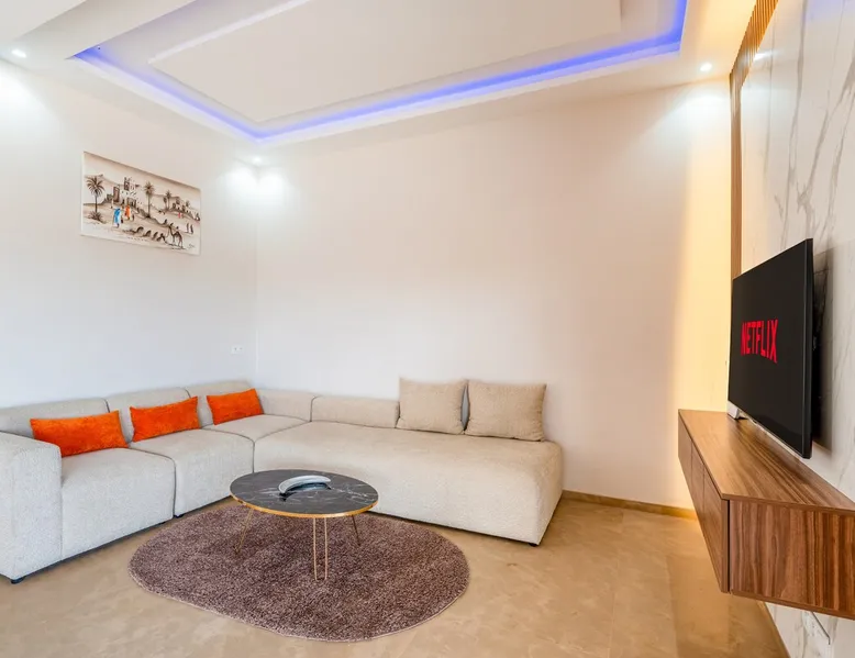 Luxury villa with infinity pool and football field, with views of the Atlas Mountains, 5 master suites with private bathrooms, including one on the garden level and its traditional Hammam will have everything to seduce you. Private transfer possible with a supplement. A €500 security deposit is required upon arrival to cover any damage. It will be fully refunded after verification of the accommodation. The space Luxury luxury villa with 180 degree views of the Atlas Mountains, infinity pool, two living rooms, patio, indoor fountains, a Royal suite, four Princières suites, traditional Hammam, fully equipped kitchen. Guest access Entire Villa Other things to note 400m2 villa with mountain views, infinity pool and it's 5 master suites.