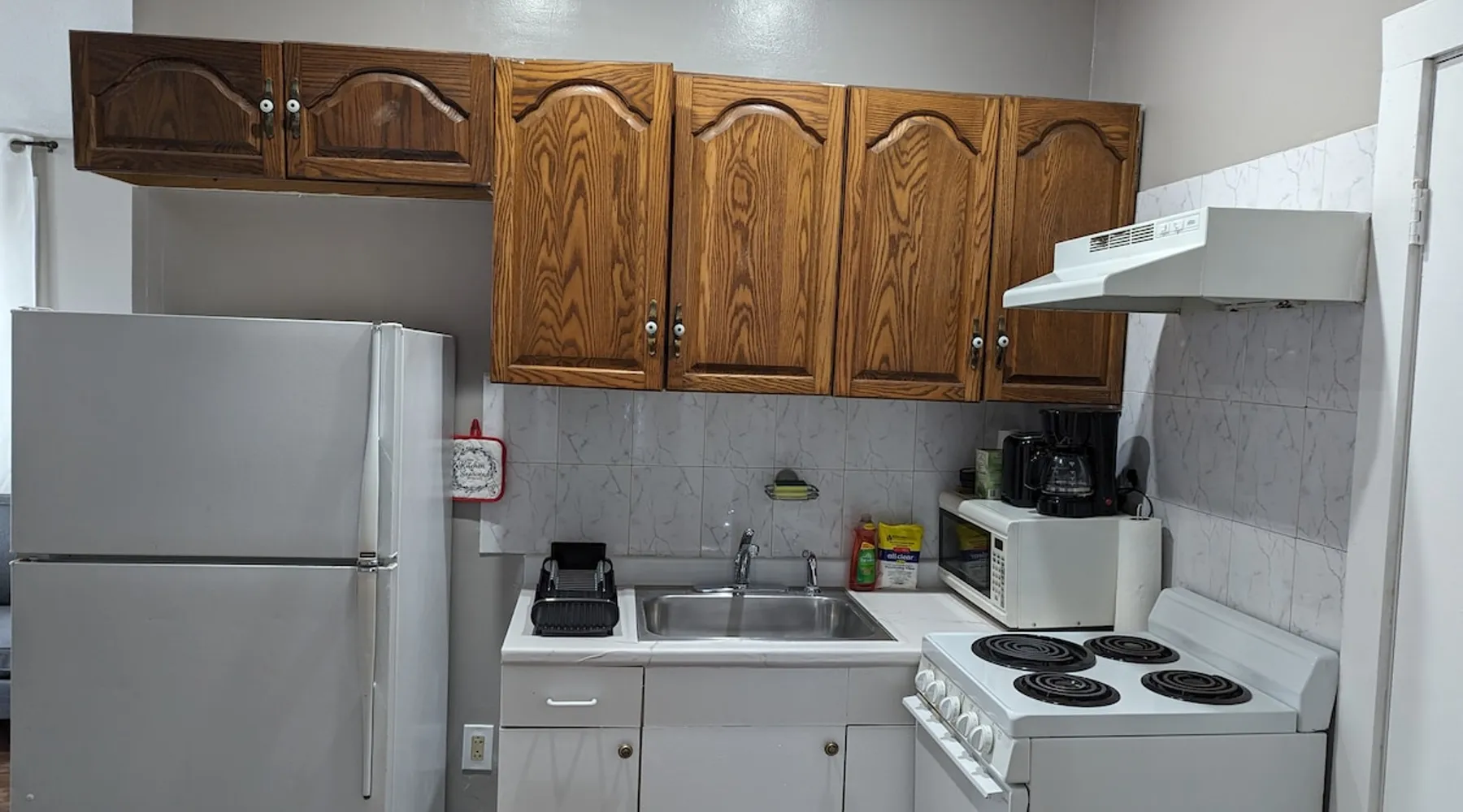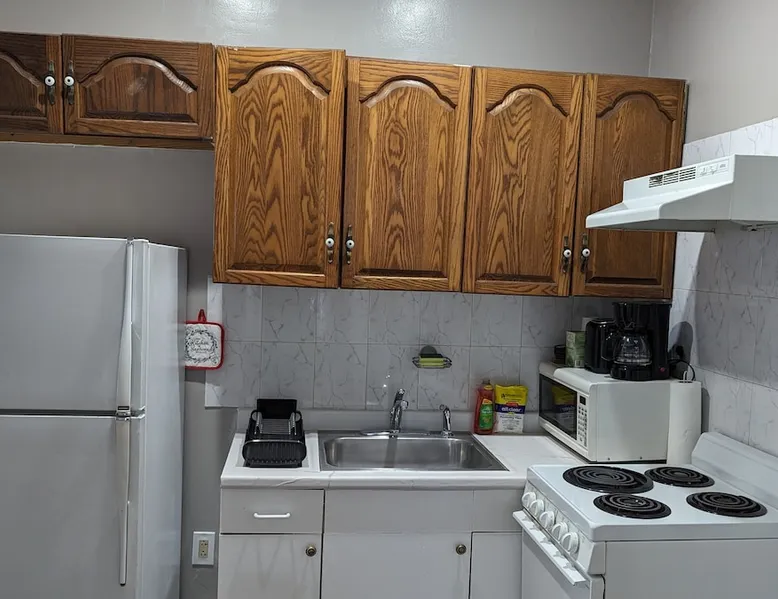 Come see this freshly painted one bedroom with brand new floors, fortified protection for the winter and all seasons. Peaceful and private property. Spacious and comfy one bedroom apartment with ample living room area and sleep area. Separate entry and exit with huge backyard space with more than enough parking space. Full refrigerator, kitchen with coffee maker, microwave, stove, oven, and cooking utensils Friendly neighborhood with a lot of public amenities and retail services in the area. The space Private and comfortable one bedroom apartment with lots of convenience Guest access Guests can use the driveway and the deck for relaxation