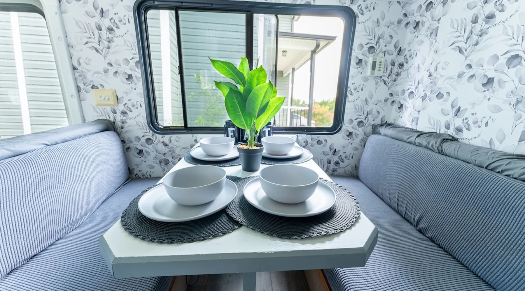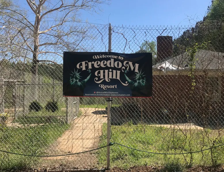 Freedom Hill Resort is something unique. It was a state prison until the 90's and we have completed the first phase which are 5 individual spots that can accommodate a 45 foot full size RV/Tiny Home on wheels or bring your own tent. This spot (#1) has a 33 foot RV that can accommodate up to 6 guests with AC, gas stove, hot water, shower, toilet, full power, etc. There is also an outdoor propane fire pit. The space RV that is Dog Friendly! Guest access Over 1 acres of land with dog parks, grill, bathroom/shower/firepits (both wood and propane). All the common areas are shared place, but it is large enough to have privacy. Other things to note At the moment, none of the buildings including the Guard Towers have access. But we do provide tours:)