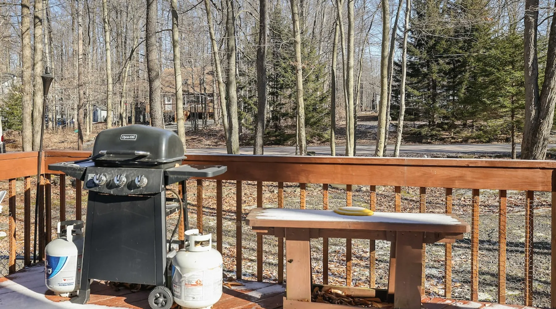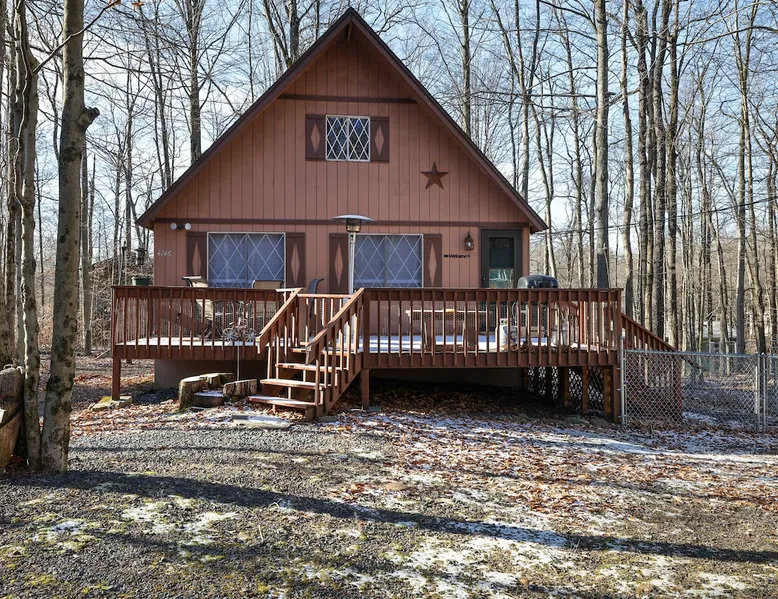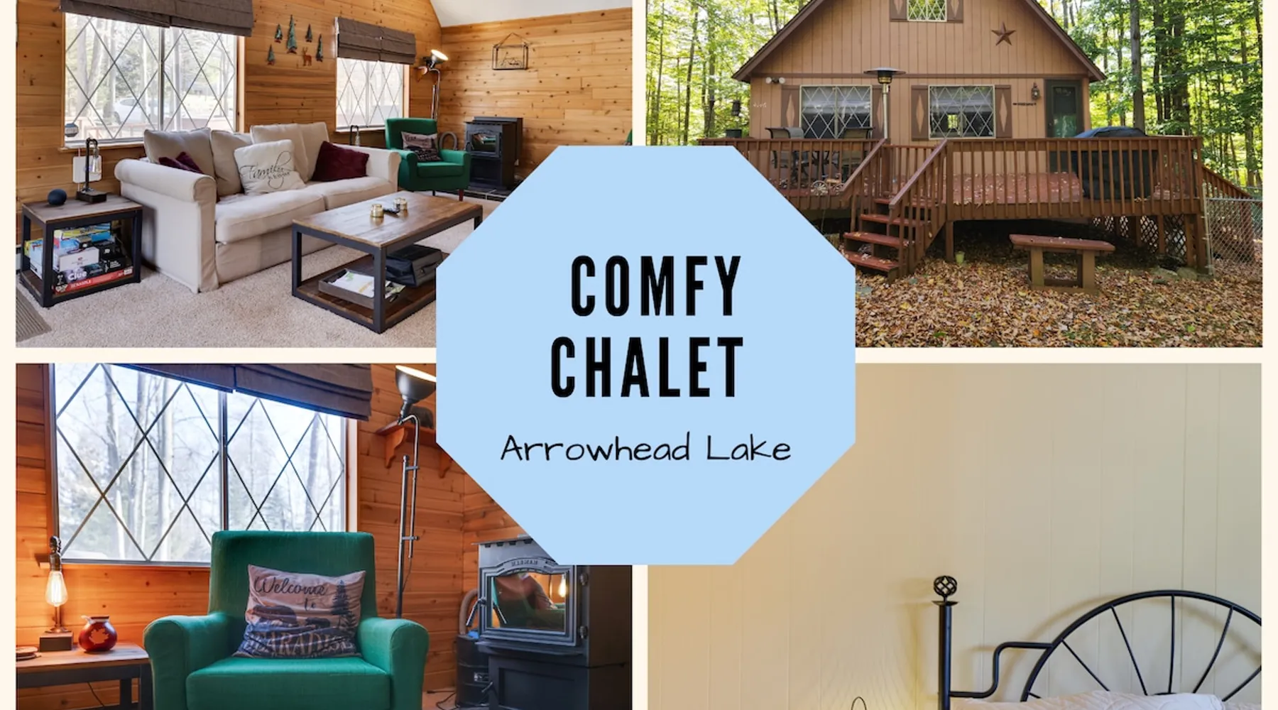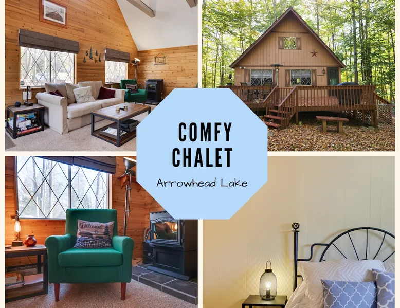 Relax with the whole family at this peaceful place to stay in Arrowhead Lake. This cozy chalet has two bedrooms and a loft. A short 4 min walk down the street to Minisink Pool, or 15 min walk to beach! Check out Arrowhead's two large lakes for swimming, fishing, kayaking, or canoeing. With a large deck and fire pit, you can enjoy the fresh mountain air any time of day or night. (Community fees are extra and mandatory, see "Other things to note") The space Located in gated Arrowhead Lake community. This cozy vacation home is equipped with 2 bedrooms, a flat screen 50" TV with complimentary Netflix and Amazon Video. Fully equipped kitchen with basics, a microwave, a washer/dryer, a fridge and an electric oven. Upper Bedroom- full bed Lower Bedroom - queen bed Loft - foldable queen bed Living room- foldable queen bed → Portable AC in living room → Short 4 min walk to pool (Minisink Pool, open summer season). → Fast Wi-Fi, great for remote work and streaming. → 50-inch TV with Netflix and Amazon Video → Complimentary towels and bed linens. → Large deck with BBQ grill and dining table with seating. → Firepit with chairs. → Parking for 3 cars in private driveway. → Pellet Stove in living room to keep you warm → Baseboard heating. Please Note: 1) Arrowhead Lake community does have additional mandatory fees not included in house rental rate (see "Other things to note") 2) Our community is located in a somewhat remote area, ideal for those looking to escape the city and highways. A car is required to reach both the community and our property. We provide enough essential items to cover stays of about 2-3 nights. If you need more supplies during your stay, you can visit one of the following nearby stores: Ahart, CVS, Weis, Walmart, ALDI. Nearby Local Attractions ● 25 Min Drive to Pocono Raceway ● 20-25 Min Drive to Jack Frost/Big Boulder Ski Areas ● 25 Min Drive to Kalahari Resort/Waterpark ● 20 Min Drive to Hickory Run State Park ● 30 Min Drive to Mount Airy Casino ● 30 Min Drive to Camelback Mountain/Waterpark **driving times are approximate Guest access Whole house except locked owner's closet Other things to note **COMMUNITY (HOA) FEES** (mandatory, not included in booking price): Arrowhead Lake Community Fees (to be paid separately online 1+ days prior to arrival): 1) HOA Temporary membership: a) IN SEASON (May 24 to Sept 2): $8.50 per person, per day. or $42.50 per person, per week. b) OFF SEASON (Sept 3 to May 23): $2 per person, per day. c) Children under 6 are free 2) HOA Gate Pass: $20 per vehicle, per stay 3) HOA Administration: $20 one time, per stay (Non-refundable) 4) HOA Late fee (for bookings and registrations submitted within 3 days of arrival date): $100 NOTE: All HOA fees must be paid at least 3+ days prior to arrival to avoid late fee. Community does not accept registrations/payments/changes/additions less than 1 day prior to arrival. **Fees are imposed by the community association (HOA); we are unable to waive or discount them. We will collect following info to be submitted to community with payment: number of guests and kids, names of every driver, full car info and guest names. Temporary Membership grants access to all community facilities and events, as well as access to pools, lakes, beaches, playgrounds, basketball and tennis courts, to Community Lodge with 3 fireplaces, library, fitness room (gym), game rooms and banquet hall. Note: Pools are open starting Memorial Day weekend, until Labor Day. TEMPORARY MEMBERSHIP FEE IS REQUIRED WHETHER AMENITIES/FACILITIES ARE OPEN/USED OR NOT. Community amenities are owned and operated by Arrowhead Lake Community Association. Some amenities are seasonal (pools, beaches, rental shack etc) or maybe closed due to staffing, weather, maintenance or other reasons out of our control. Please double check with us on status of specific amenity. **TRASH RULES**: To avoid attracting wild animals and rodents, all trash must be removed from the house upon departure. The Trash Center is located within the same community, and you can find the address in the Guidebook provided in the house. You can also pick up a flyer with the Trash Center address during check-in at the Rental Office.