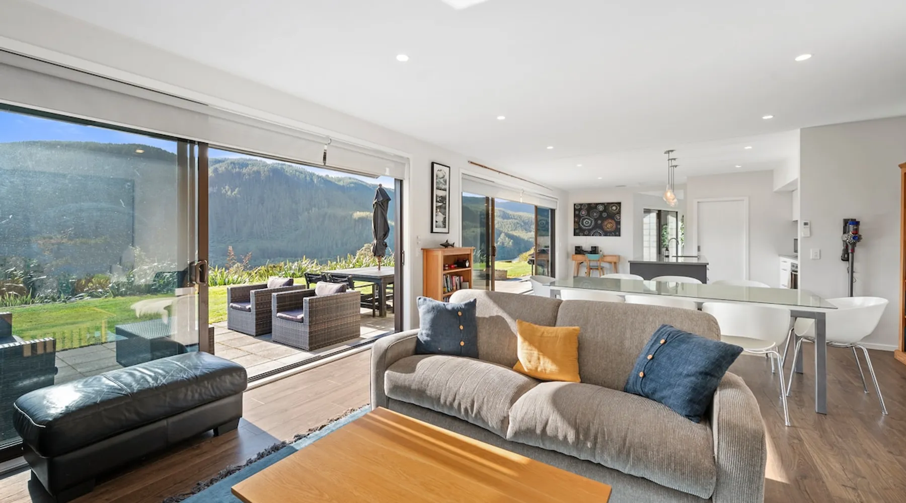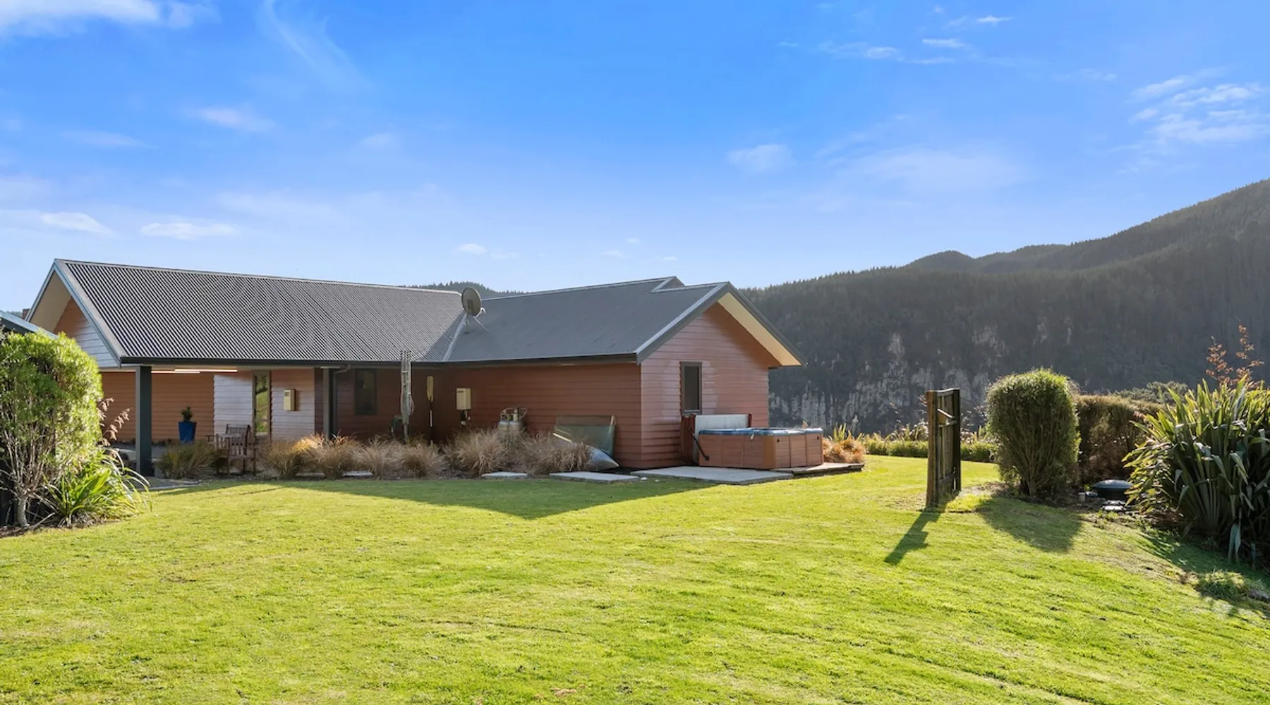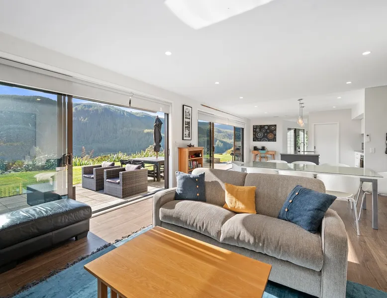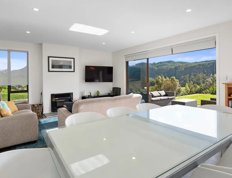 Peace, serenity and luxurious living await at this executive-style holiday home surrounded by rolling hills and overlooking the Waikato River. Welcome to River View Retreat! The space Peace, serenity and luxurious living await at this executive-style holiday home surrounded by rolling hills and overlooking the Waikato River - Welcome to Lakehouse Retreat! Thoughtfully decorated and designed, this Whakamaru holiday home is perfectly positioned to capture stunning scenery. Spacious open-plan living effortlessly flows from a gorgeous modern kitchen, through to a well-appointed living-dining space. Step through onto the concrete patio which spans the length of the home. Comprised of outdoor seating, a BBQ, fire pit and spa pool, relax and unwind while the waters of the Waikato River flow in the distance. This generous three-bed, three-bath holiday home sleeps up to eight guests. The master bedroom enjoys the luxury of a king-size bed, while the exclusive ensuite boasts views from the bathtub. The second bedroom provides a queen-size bed, while the third sleeps four across a bunk bed, king single and pull-out bed. Two additional bathrooms will ensure each guest is refreshed and rejuvenated throughout their stay. Situated in Waipamu Station, you’ll appreciate the privacy this holiday home offers. Ample off-street parking will accommodate each guest, while there’s room for the boat – up to seven metres. Explore this premium gated community, with shared use of the private jetty, tennis court, playground, fire pit and communal pavilion. Experience the nearby waters of Lake Whakamaru with the kayak available for your use, while the local township is less than a 10-minute drive with a handful of amenities. Although remote, Taupo and Rotorua are well within reach, being a 40 and 50-minute journey by car, respectively. For luxury living in a spectacular setting – relax at Lakehouse Retreat! Other things to note Please note a bond may be charged at certain times of the year. One of our team members will contact you if this is required for your booking. There is a kayak available but please bring your own life-jacket to use. There is an extra gas bottle for the BBQ beside the main gas bottles that can be used if needed. Please note that the Tumble Dryer is currently unavailable as it is out for repair.