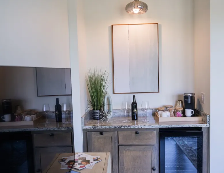 Silverstone Casita is 1 of the 8 Casitas @ Featherstone Ranch. The Casitas are ALL ABOUT LOCATION! Texas Hill Country quiet but surrounded by Wineries, LBJ Parks, & so much more! Each Casita offers a private porch w/panoramic views. Sip wine & watch wildlife & sunsets! Each luxurious Casita offers a Queen Bed, Huge Shower, Mini Fridge, Coffee Bar, Large TV. Fredericksburg is only 15 minutes away! OPENING FALL 2024-FEATHERSTONE RANCH VINEYARDS! WALKING DISTANCE FROM CASITAS. ORDER WINES ONLINE!
