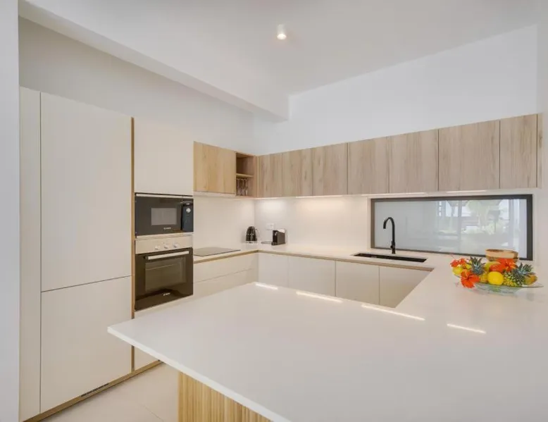 Prime Beachfront Location: Exclusive beachfront apartment in Belle Mare offers direct access to a private beach area and stunning sea views. Guests enjoy beachfront living with an infinity swimming pool, lush garden, and spacious terrace. Comfortable Accommodations: The apartment features three bedrooms and two bathrooms, providing ample space for relaxation. Equipped with air-conditioning, a fully fitted kitchen, and modern amenities, it ensures a comfortable stay. Convenient Facilities: Free WiFi, private check-in and check-out, elevator, housekeeping, laundry, family rooms, full-day security, car hire, and free on-site parking are available. Long Beach is just a few steps away, while Sir Seewoosagur Ramgoolam Airport is 30 mi distant. Guests will have a special experience as this apartment offers a pool with a view and a hot tub. Boasting a private entrance, this spacious apartment also features 3 bedrooms, a seating area and 2 bathrooms with a bath and a shower. In the well-equipped kitchen, guests will find a stovetop, a refrigerator, a dishwasher and an oven. The air-conditioned apartment features a flat-screen TV, a washing machine, a coffee machine, a dining area as well as sea views. The unit has 4 beds.