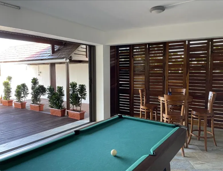 Beachfront Location: Ground Floor Apartment -Villa Ibiza in Trou dʼEau Douce offers direct beachfront access, a lush garden, and a spacious terrace. Guests can relax by the year-round outdoor swimming pool and enjoy free WiFi throughout the apartment. Comfortable Accommodations: The apartment features two bedrooms, two bathrooms, and a comfortable living room. Family rooms provide ample space for relaxation, while amenities include air-conditioning, a fully equipped kitchen, washing machine, and free on-site private parking. Local Attractions: Trou dʼEau Douce Beach is an 8-minute walk away, while Le Touessrok Golf Course lies 6.8 mi from the property. Sir Seewoosagur Ramgoolam Botanical Garden is 21 mi distant, offering diverse natural scenery. Activities and Surroundings: Guests can enjoy boating in the surrounding area, providing opportunities for water sports enthusiasts. The Sir Seewoosagur Ramgoolam Airport is 25 mi from the apartment, ensuring convenient travel arrangements. This apartment's standout feature is the private pool. This air-conditioned apartment includes 1 living room, 2 separate bedrooms and 2 bathrooms with a hairdryer. The apartment's kitchen is available for cooking and storing food. Boasting a terrace with garden views, this apartment also offers a washing machine and a flat-screen TV. The unit has 2 beds.