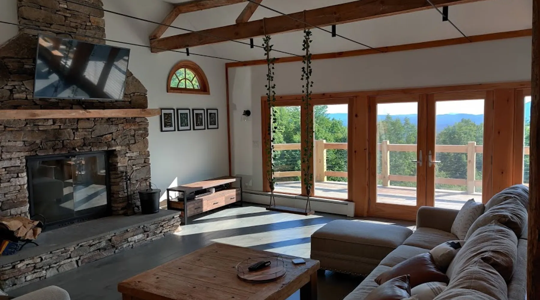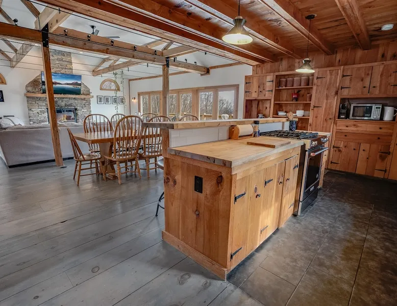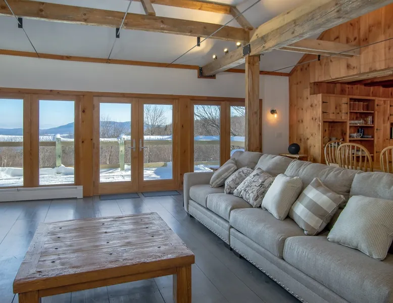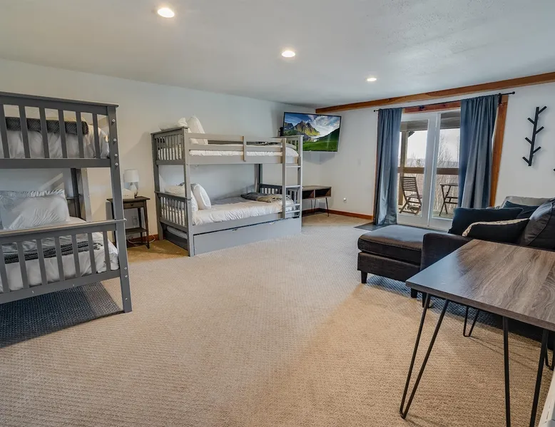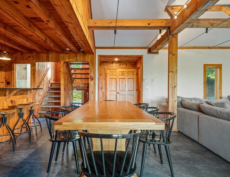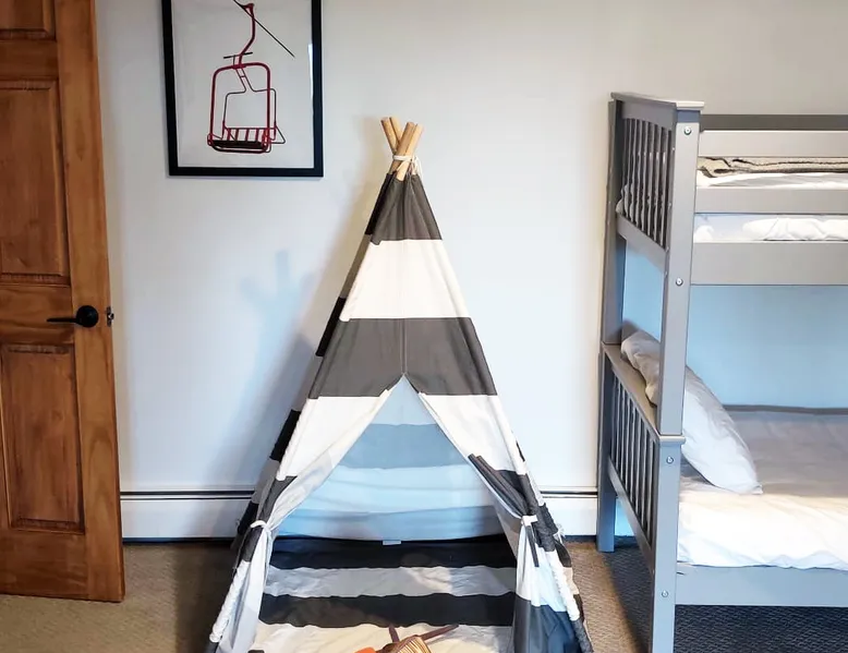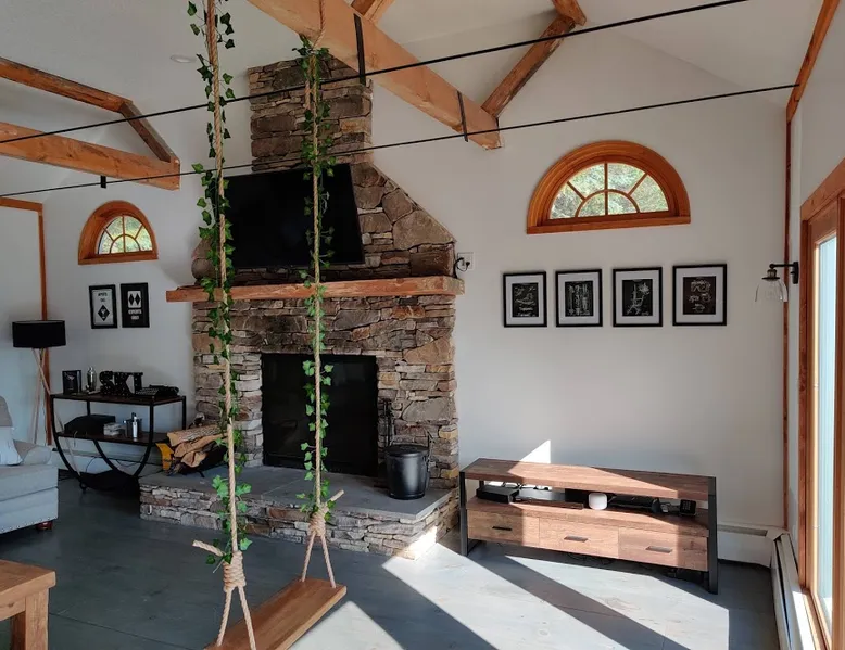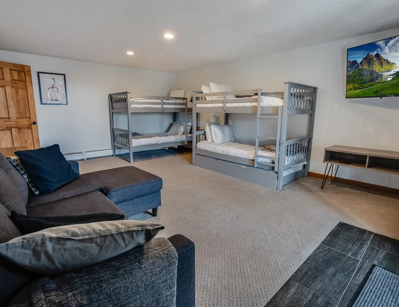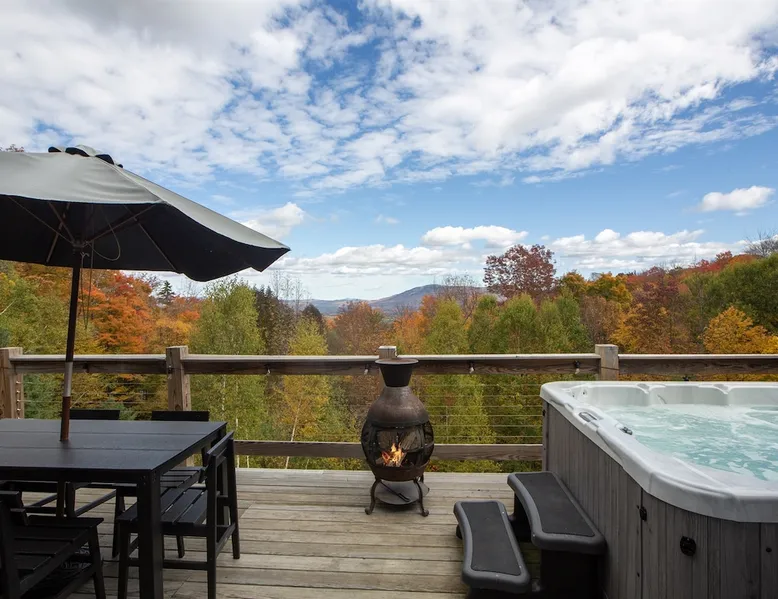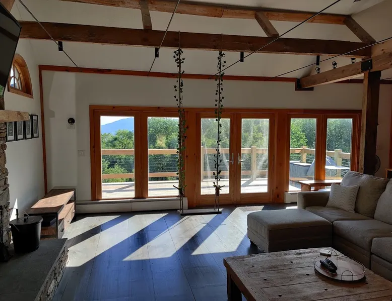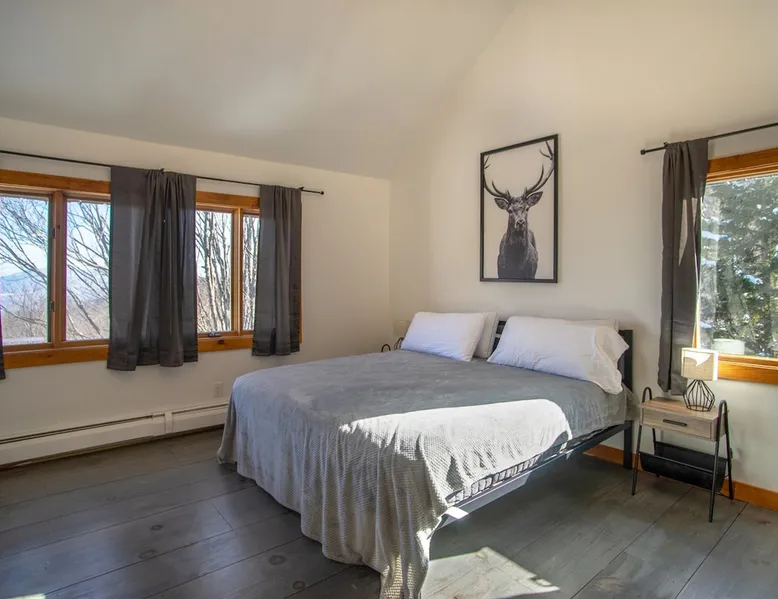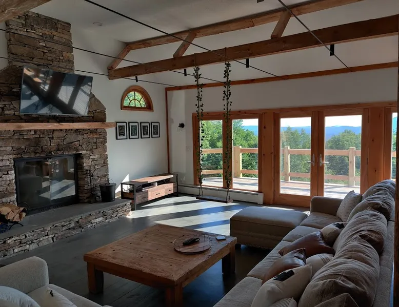 Escape to the Shred Shack by 42 North LP, your ultimate mountain escape in Vermont! The Shred Shack offers stunning mountain & valley views from its expansive great room. Relax & recharge by the grand fireplace, in the private indoor sauna, or the mountain-view hot tub. Entertain effortlessly in the open-concept kitchen, dining, and living area – perfect for memorable meals & gatherings. Kids will love the unique indoor swing! Your perfect blend of adventure and comfort awaits! The space At the Shred Shack, comfort truly meets mountain adventure, creating a home where every moment becomes a memory. Imagine starting your day with a steaming cup of coffee, perched high on the spacious outdoor deck. Here, a BBQ grill and seating for six invite leisurely breakfasts with a side of breathtaking, huge valley views. As evening falls, this deck transforms into your private observatory. Slip into the luxurious hot tub and let the warm bubbles melt away your day, all while you're mesmerized by a blanket of stars in the vast Vermont sky. Inside, the heart of the home beats with an inviting open-concept design, seamlessly blending the cozy living room, spacious dining area, and a fully-equipped kitchen. It's the perfect hub for gathering, sharing meals, and making lasting memories together. Picture yourself unwinding by the grand fireplace, nestled on the ridiculously comfortable, huge couch, perfectly framed by high ceilings. This space feels incredibly cozy and intimate, yet still offers those expansive views that connect you to the majestic outdoors. Enjoy a movie on the Smart TV, dive into a good book, or simply bask in the warm ambiance. This expansive property comfortably accommodates up to 7 guests, with sleeping arrangements thoughtfully spread across four distinct bedrooms: - Master Oasis: A serene master bedroom featuring a comfortable King bed and often an en-suite bathroom for ultimate privacy. - Guest Retreats: Two additional, well-appointed guest bedrooms, each offering a cozy Queen bed (one also includes a Twin bed), perfect for couples or small families. - The Bunk Room: A lively lower-level bunk room, complete with two sets of bunk beds and a sleeper sofa, creating a fun, dedicated zone for kids or extra friends. With three full bathrooms (each featuring a combination tub/shower or stand-up shower), getting ready for your day on the slopes or a night out is a breeze. But the relaxation doesn't stop there. Beyond the hot tub, you can also rejuvenate in the indoor sauna. The Shred Shack is truly designed for both thrill-seekers and those looking to simply unwind and recharge after a day of shredding the slopes or exploring the trails. Guest access Guests will enjoy private, exclusive access to the entire Shred Shack property, ensuring a truly private and undisturbed mountain retreat. Your convenience is our priority; check-in is seamless and flexible any time after 5 PM via our easy-to-use smart lock. We'll provide you with a unique access code before your arrival, so you can settle in at your own pace. Other things to note Here are a few friendly details to help you settle in and make the most of your mountain getaway: Your Rental Agreement: After booking, we'll send a standard rental agreement for the primary guest to sign. It's a simple step to confirm your reservation and ensure a smooth stay. Paws Welcome: We're happy to host your well-behaved dogs! You can bring up to two pups, with a $75 nightly fee per pet. Primary Renter Age: The primary guest must be at least 25 years old to reserve the property. Fresh Air Inside: For everyone's comfort, smoking is not permitted anywhere on the property, indoors or out. Hot Tub & Sauna Ready: Your private hot tub and sauna are ready for relaxation! Their maintenance is included in your stay and they're professionally serviced between every visit. Mountain Home Access: Like many authentic mountain homes, the Shred Shack has stairs to access different areas. While the path to the entrance is lit, please note the property is not wheelchair accessible. Safety & Security: For your peace of mind, there are exterior cameras on the property. The home is also equipped with a centrally monitored fire alarm for your safety. We can't wait for you to create unforgettable memories at the Shred Shack!