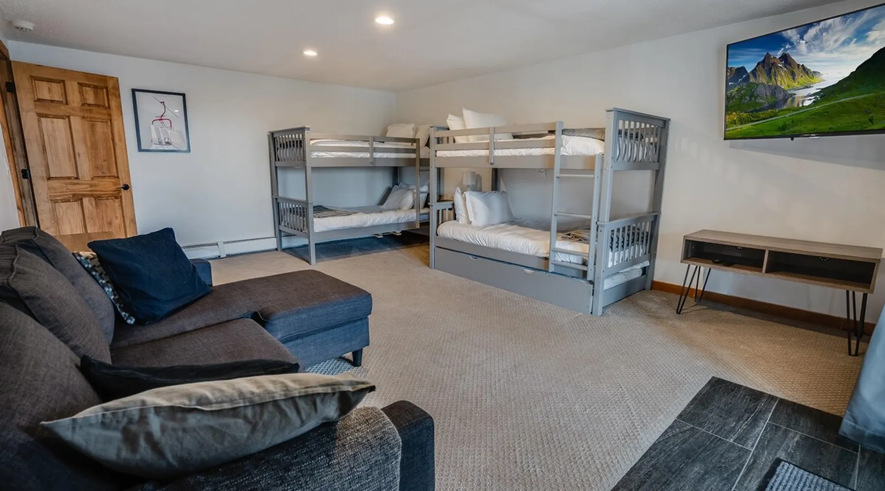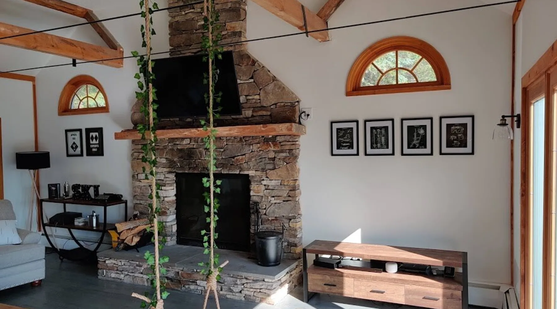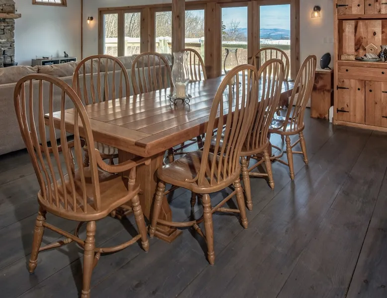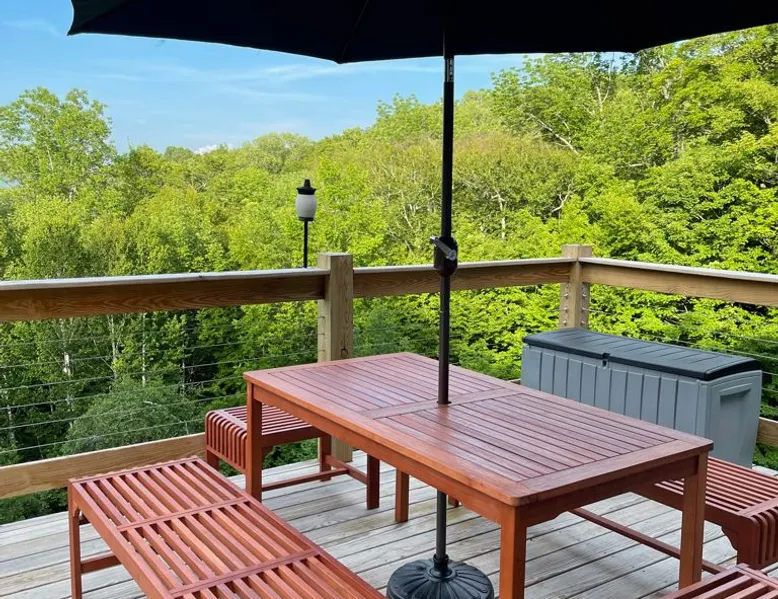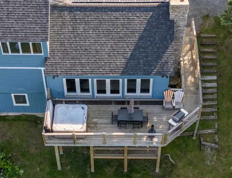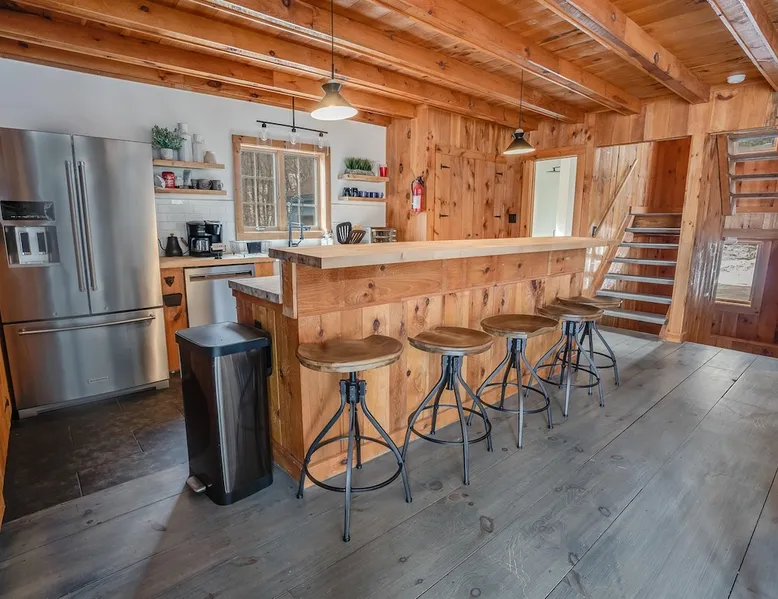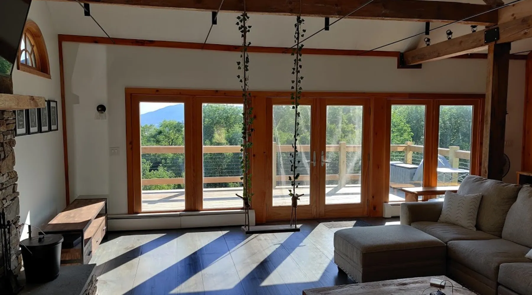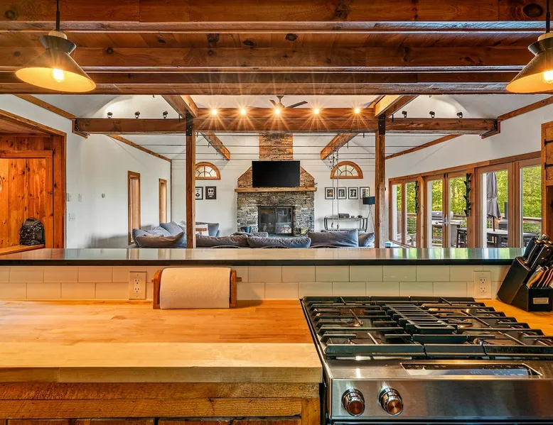 Escape to the Shred Shack by 42 North LP, your ultimate mountain escape in Vermont! The Shred Shack offers stunning mountain & valley views from its expansive great room. Relax & recharge by the grand fireplace, in the private indoor sauna, or the mountain-view hot tub. Entertain effortlessly in the open-concept kitchen, dining, and living area – perfect for memorable meals & gatherings. Kids will love the unique indoor swing! Your perfect blend of adventure and comfort awaits! The space At the Shred Shack, comfort truly meets mountain adventure, creating a home where every moment becomes a memory. Imagine starting your day with a steaming cup of coffee, perched high on the spacious outdoor deck. Here, a BBQ grill and seating for six invite leisurely breakfasts with a side of breathtaking, huge valley views. As evening falls, this deck transforms into your private observatory. Slip into the luxurious hot tub and let the warm bubbles melt away your day, all while you're mesmerized by a blanket of stars in the vast Vermont sky. Inside, the heart of the home beats with an inviting open-concept design, seamlessly blending the cozy living room, spacious dining area, and a fully-equipped kitchen. It's the perfect hub for gathering, sharing meals, and making lasting memories together. Picture yourself unwinding by the grand fireplace, nestled on the ridiculously comfortable, huge couch, perfectly framed by high ceilings. This space feels incredibly cozy and intimate, yet still offers those expansive views that connect you to the majestic outdoors. Enjoy a movie on the Smart TV, dive into a good book, or simply bask in the warm ambiance. This expansive property comfortably accommodates up to 7 guests, with sleeping arrangements thoughtfully spread across four distinct bedrooms: - Master Oasis: A serene master bedroom featuring a comfortable King bed and often an en-suite bathroom for ultimate privacy. - Guest Retreats: Two additional, well-appointed guest bedrooms, each offering a cozy Queen bed (one also includes a Twin bed), perfect for couples or small families. - The Bunk Room: A lively lower-level bunk room, complete with two sets of bunk beds and a sleeper sofa, creating a fun, dedicated zone for kids or extra friends. With three full bathrooms (each featuring a combination tub/shower or stand-up shower), getting ready for your day on the slopes or a night out is a breeze. But the relaxation doesn't stop there. Beyond the hot tub, you can also rejuvenate in the indoor sauna. The Shred Shack is truly designed for both thrill-seekers and those looking to simply unwind and recharge after a day of shredding the slopes or exploring the trails. Guest access Guests will enjoy private, exclusive access to the entire Shred Shack property, ensuring a truly private and undisturbed mountain retreat. Your convenience is our priority; check-in is seamless and flexible any time after 5 PM via our easy-to-use smart lock. We'll provide you with a unique access code before your arrival, so you can settle in at your own pace. Other things to note Here are a few friendly details to help you settle in and make the most of your mountain getaway: Your Rental Agreement: After booking, we'll send a standard rental agreement for the primary guest to sign. It's a simple step to confirm your reservation and ensure a smooth stay. Paws Welcome: We're happy to host your well-behaved dogs! You can bring up to two pups, with a $75 nightly fee per pet. Primary Renter Age: The primary guest must be at least 25 years old to reserve the property. Fresh Air Inside: For everyone's comfort, smoking is not permitted anywhere on the property, indoors or out. Hot Tub & Sauna Ready: Your private hot tub and sauna are ready for relaxation! Their maintenance is included in your stay and they're professionally serviced between every visit. Mountain Home Access: Like many authentic mountain homes, the Shred Shack has stairs to access different areas. While the path to the entrance is lit, please note the property is not wheelchair accessible. Safety & Security: For your peace of mind, there are exterior cameras on the property. The home is also equipped with a centrally monitored fire alarm for your safety. We can't wait for you to create unforgettable memories at the Shred Shack!