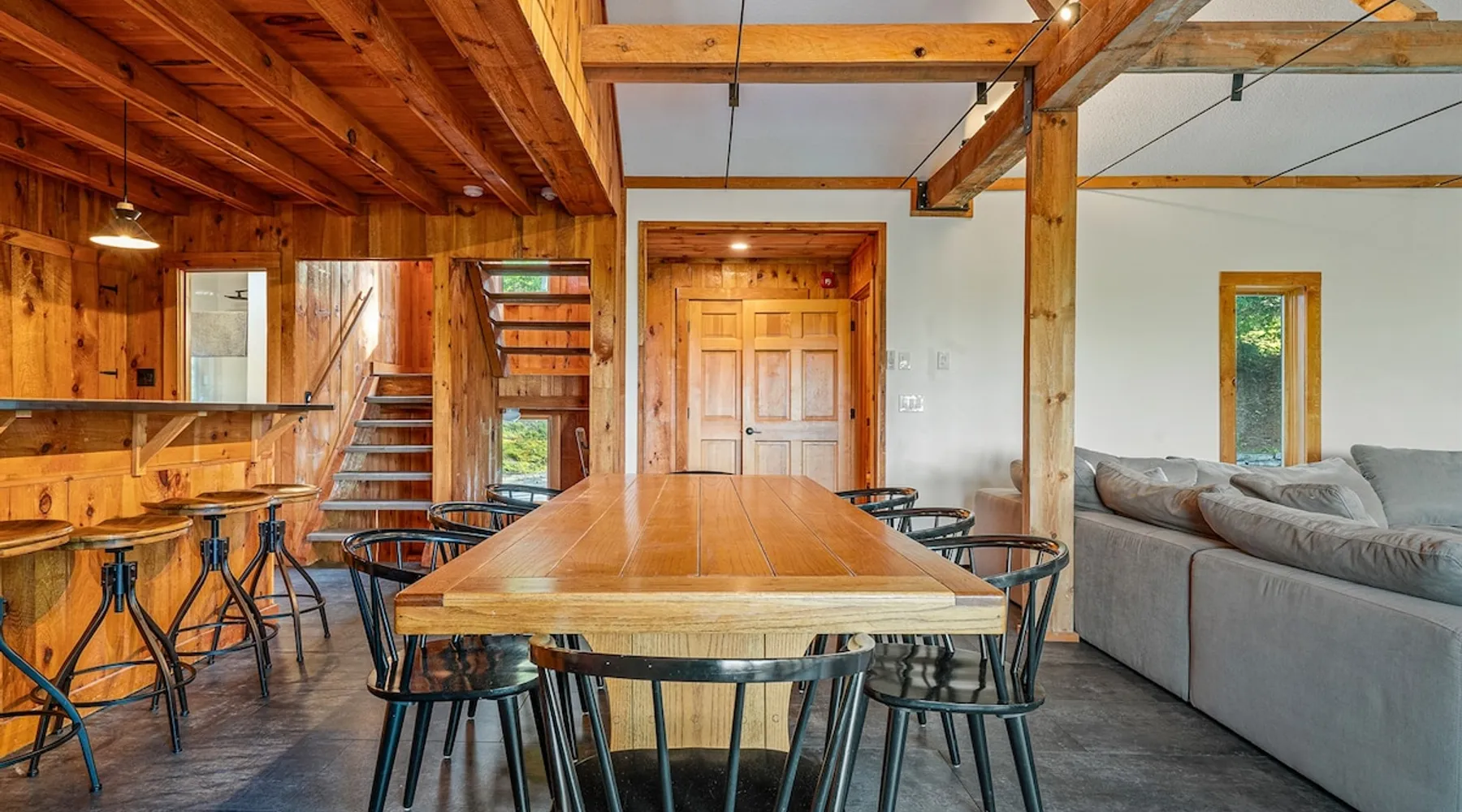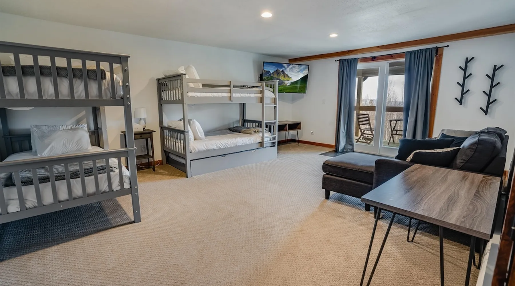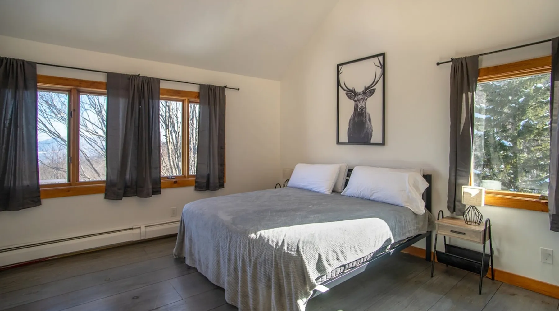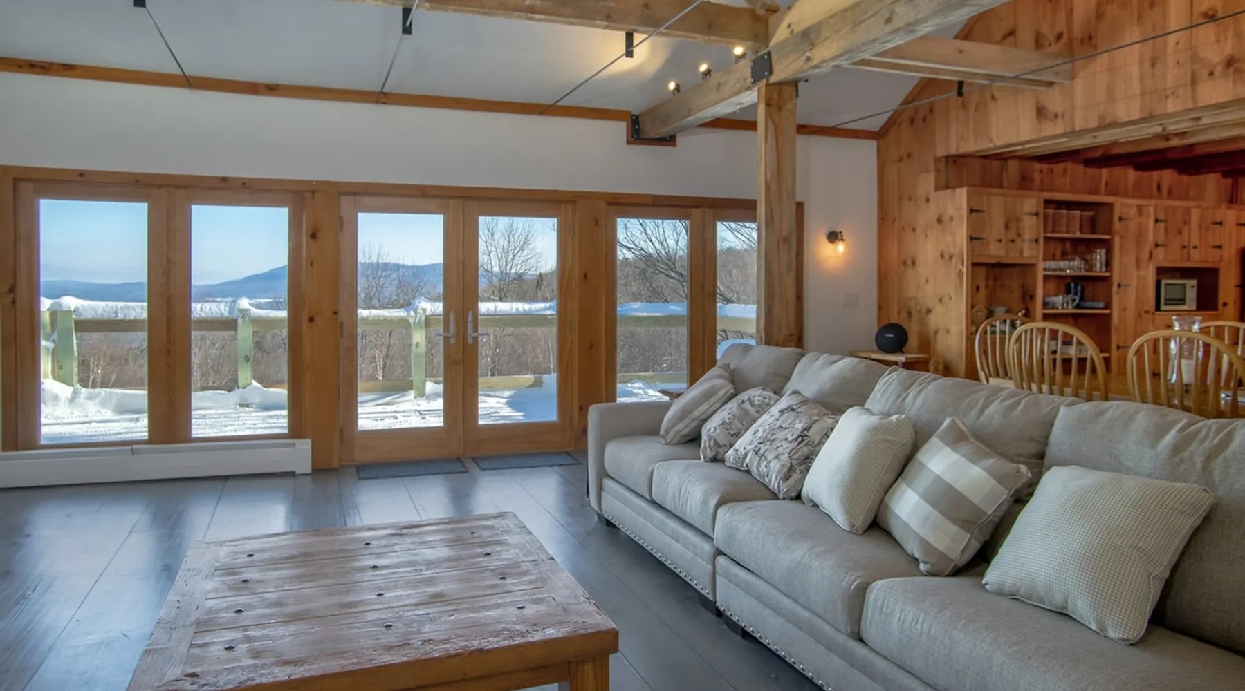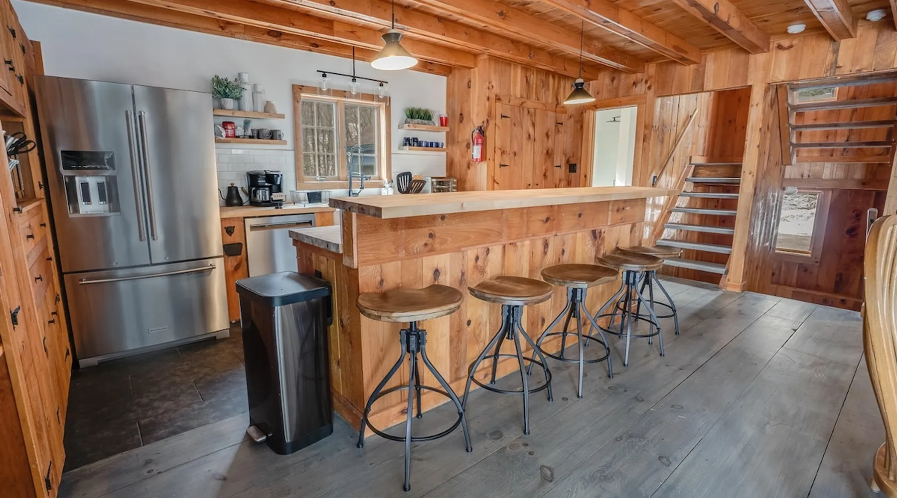 Escape to the Shred Shack by 42 North LP, your ultimate mountain escape in Vermont! The Shred Shack offers stunning mountain & valley views from its expansive great room. Relax & recharge by the grand fireplace, in the private indoor sauna, or the mountain-view hot tub. Entertain effortlessly in the open-concept kitchen, dining, and living area – perfect for memorable meals & gatherings. Kids will love the unique indoor swing! Your perfect blend of adventure and comfort awaits! The space At the Shred Shack, comfort truly meets mountain adventure, creating a home where every moment becomes a memory. Imagine starting your day with a steaming cup of coffee, perched high on the spacious outdoor deck. Here, a BBQ grill and seating for six invite leisurely breakfasts with a side of breathtaking, huge valley views. As evening falls, this deck transforms into your private observatory. Slip into the luxurious hot tub and let the warm bubbles melt away your day, all while you're mesmerized by a blanket of stars in the vast Vermont sky. Inside, the heart of the home beats with an inviting open-concept design, seamlessly blending the cozy living room, spacious dining area, and a fully-equipped kitchen. It's the perfect hub for gathering, sharing meals, and making lasting memories together. Picture yourself unwinding by the grand fireplace, nestled on the ridiculously comfortable, huge couch, perfectly framed by high ceilings. This space feels incredibly cozy and intimate, yet still offers those expansive views that connect you to the majestic outdoors. Enjoy a movie on the Smart TV, dive into a good book, or simply bask in the warm ambiance. This expansive property comfortably accommodates up to 7 guests, with sleeping arrangements thoughtfully spread across four distinct bedrooms: - Master Oasis: A serene master bedroom featuring a comfortable King bed and often an en-suite bathroom for ultimate privacy. - Guest Retreats: Two additional, well-appointed guest bedrooms, each offering a cozy Queen bed (one also includes a Twin bed), perfect for couples or small families. - The Bunk Room: A lively lower-level bunk room, complete with two sets of bunk beds and a sleeper sofa, creating a fun, dedicated zone for kids or extra friends. With three full bathrooms (each featuring a combination tub/shower or stand-up shower), getting ready for your day on the slopes or a night out is a breeze. But the relaxation doesn't stop there. Beyond the hot tub, you can also rejuvenate in the indoor sauna. The Shred Shack is truly designed for both thrill-seekers and those looking to simply unwind and recharge after a day of shredding the slopes or exploring the trails. Guest access Guests will enjoy private, exclusive access to the entire Shred Shack property, ensuring a truly private and undisturbed mountain retreat. Your convenience is our priority; check-in is seamless and flexible any time after 5 PM via our easy-to-use smart lock. We'll provide you with a unique access code before your arrival, so you can settle in at your own pace. Other things to note Here are a few friendly details to help you settle in and make the most of your mountain getaway: Your Rental Agreement: After booking, we'll send a standard rental agreement for the primary guest to sign. It's a simple step to confirm your reservation and ensure a smooth stay. Paws Welcome: We're happy to host your well-behaved dogs! You can bring up to two pups, with a $75 nightly fee per pet. Primary Renter Age: The primary guest must be at least 25 years old to reserve the property. Fresh Air Inside: For everyone's comfort, smoking is not permitted anywhere on the property, indoors or out. Hot Tub & Sauna Ready: Your private hot tub and sauna are ready for relaxation! Their maintenance is included in your stay and they're professionally serviced between every visit. Mountain Home Access: Like many authentic mountain homes, the Shred Shack has stairs to access different areas. While the path to the entrance is lit, please note the property is not wheelchair accessible. Safety & Security: For your peace of mind, there are exterior cameras on the property. The home is also equipped with a centrally monitored fire alarm for your safety. We can't wait for you to create unforgettable memories at the Shred Shack!