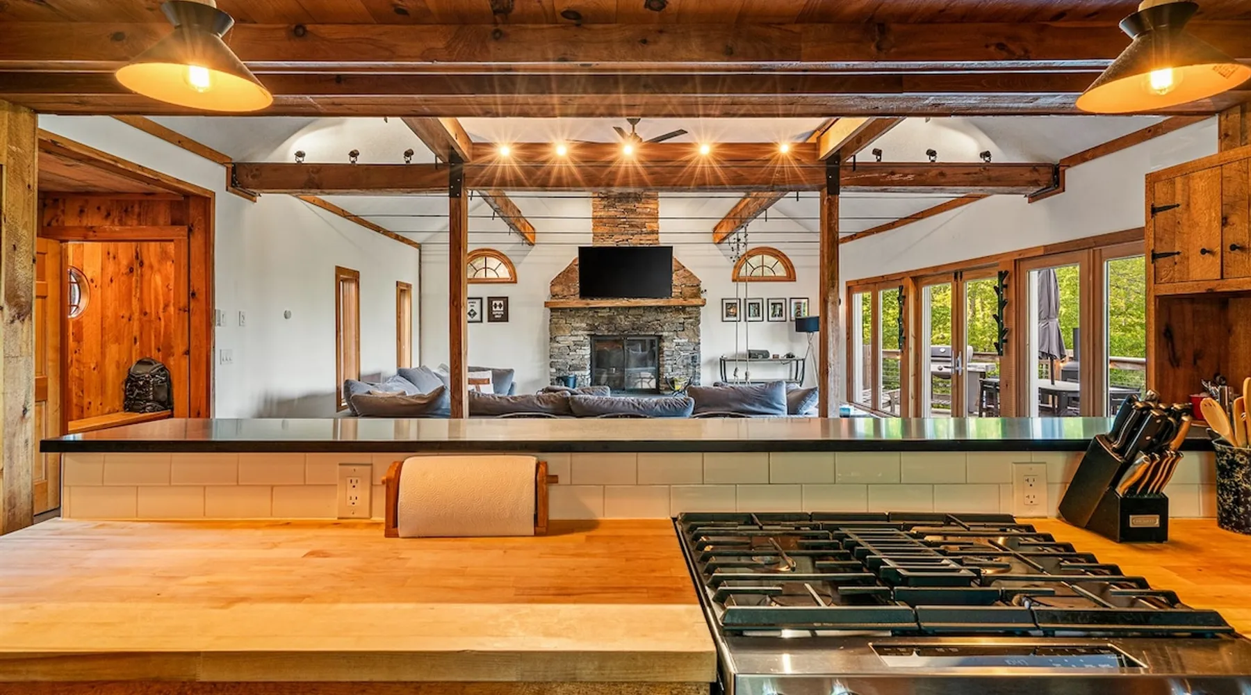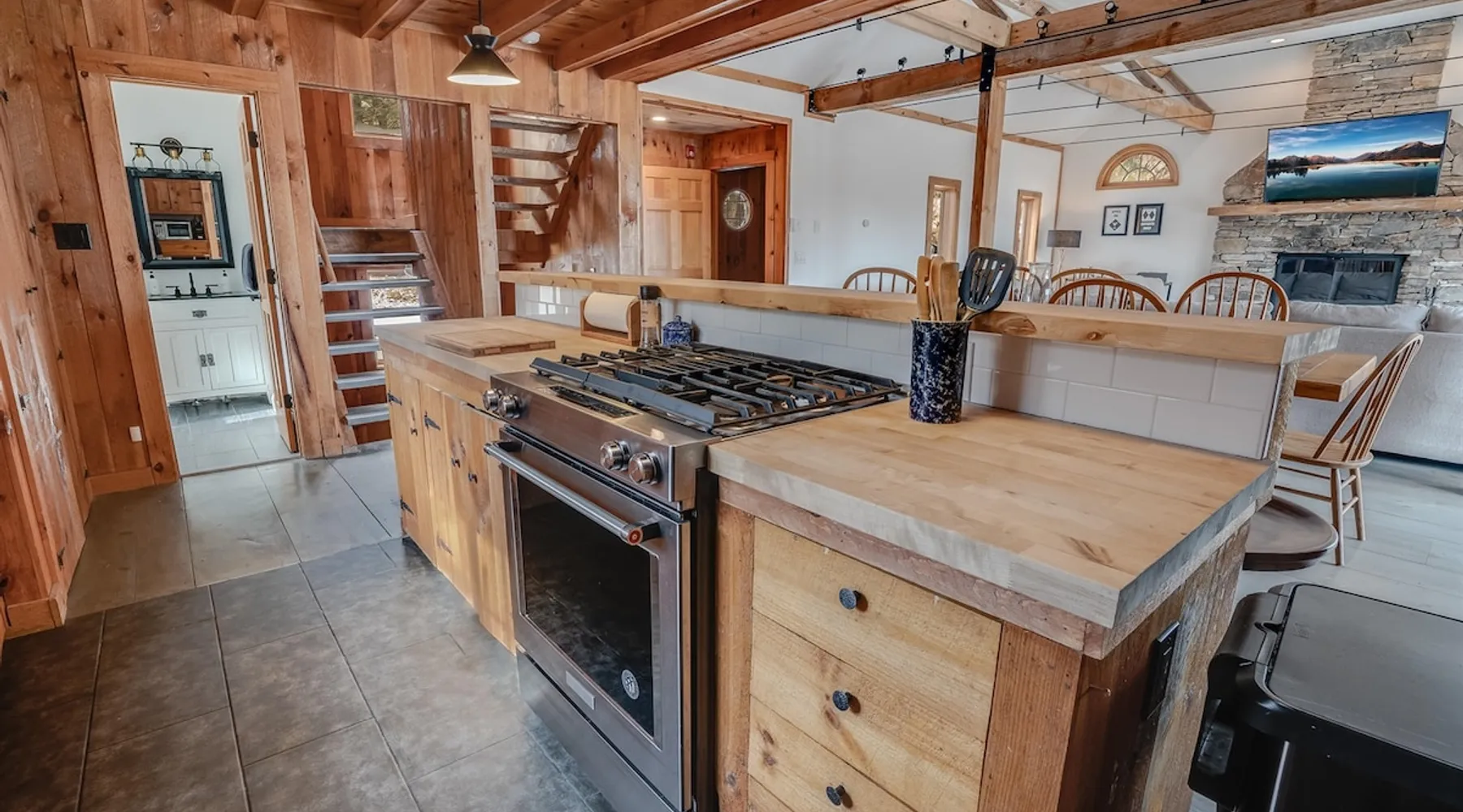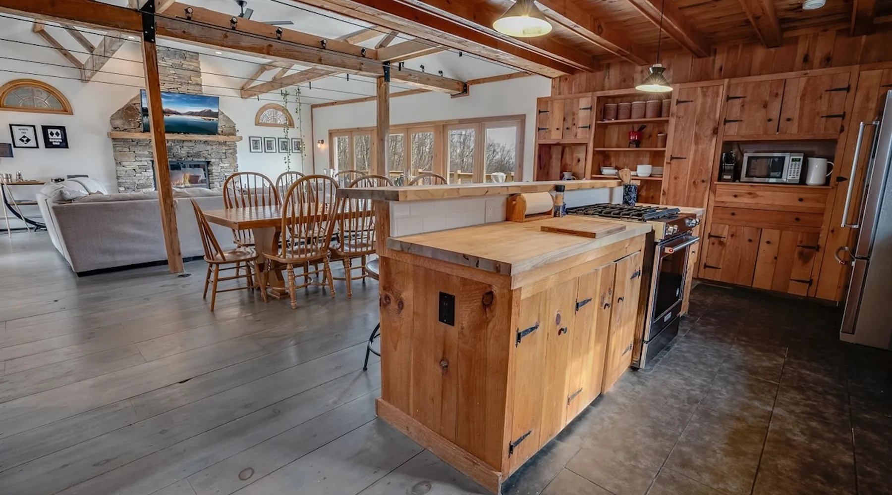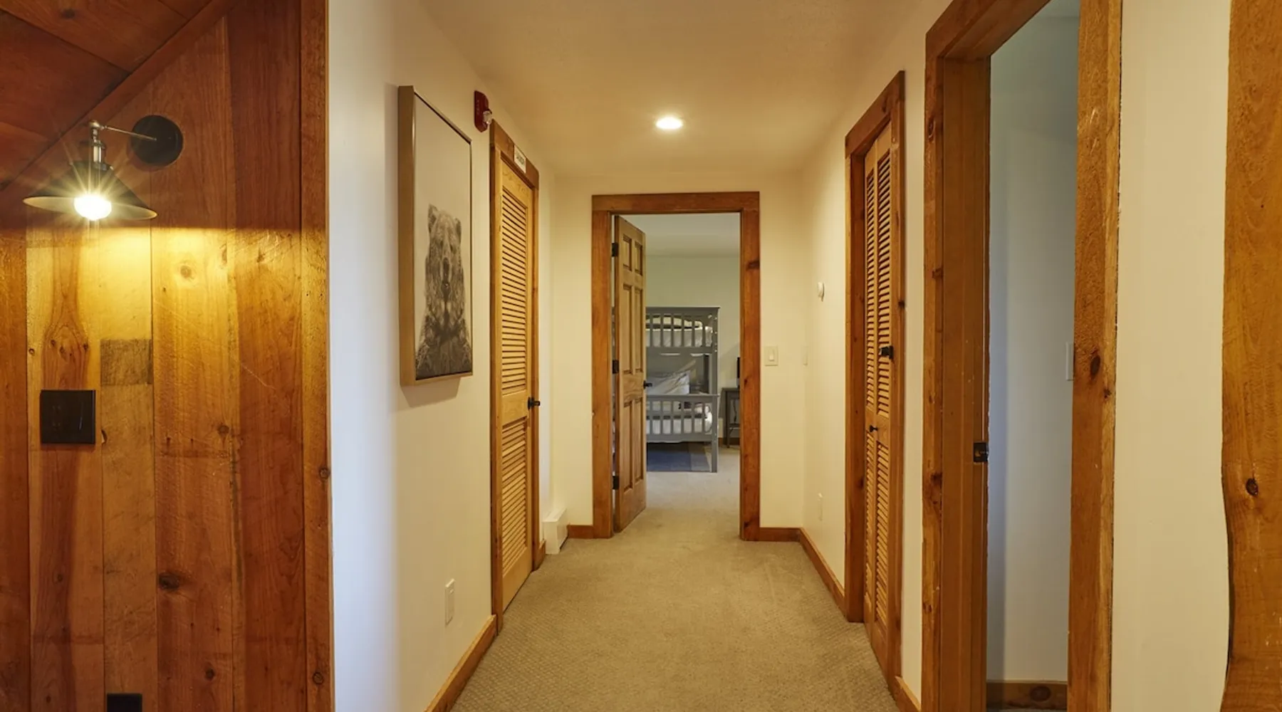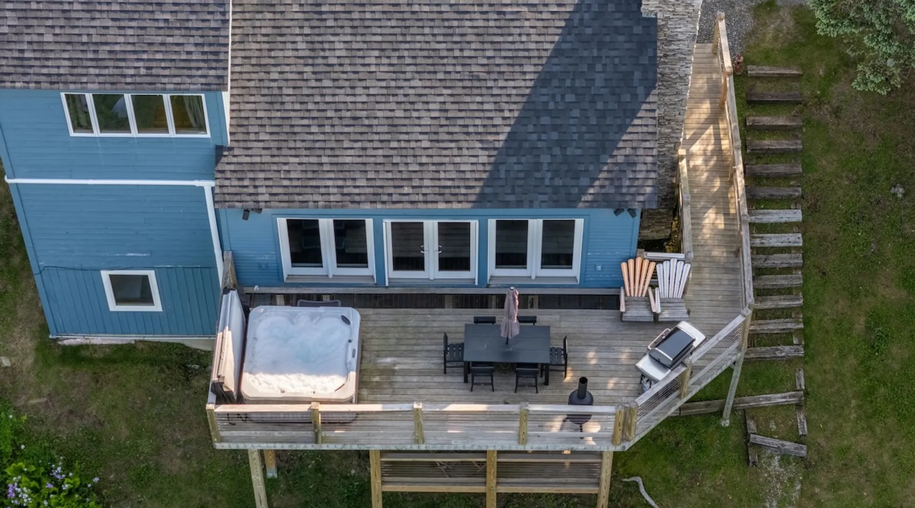 Escape to the Shred Shack by 42 North LP, your ultimate mountain escape in Vermont! The Shred Shack offers stunning mountain & valley views from its expansive great room. Relax & recharge by the grand fireplace, in the private indoor sauna, or the mountain-view hot tub. Entertain effortlessly in the open-concept kitchen, dining, and living area – perfect for memorable meals & gatherings. Kids will love the unique indoor swing! Your perfect blend of adventure and comfort awaits! The space At the Shred Shack, comfort truly meets mountain adventure, creating a home where every moment becomes a memory. Imagine starting your day with a steaming cup of coffee, perched high on the spacious outdoor deck. Here, a BBQ grill and seating for six invite leisurely breakfasts with a side of breathtaking, huge valley views. As evening falls, this deck transforms into your private observatory. Slip into the luxurious hot tub and let the warm bubbles melt away your day, all while you're mesmerized by a blanket of stars in the vast Vermont sky. Inside, the heart of the home beats with an inviting open-concept design, seamlessly blending the cozy living room, spacious dining area, and a fully-equipped kitchen. It's the perfect hub for gathering, sharing meals, and making lasting memories together. Picture yourself unwinding by the grand fireplace, nestled on the ridiculously comfortable, huge couch, perfectly framed by high ceilings. This space feels incredibly cozy and intimate, yet still offers those expansive views that connect you to the majestic outdoors. Enjoy a movie on the Smart TV, dive into a good book, or simply bask in the warm ambiance. This expansive property comfortably accommodates up to 7 guests, with sleeping arrangements thoughtfully spread across four distinct bedrooms: - Master Oasis: A serene master bedroom featuring a comfortable King bed and often an en-suite bathroom for ultimate privacy. - Guest Retreats: Two additional, well-appointed guest bedrooms, each offering a cozy Queen bed (one also includes a Twin bed), perfect for couples or small families. - The Bunk Room: A lively lower-level bunk room, complete with two sets of bunk beds and a sleeper sofa, creating a fun, dedicated zone for kids or extra friends. With three full bathrooms (each featuring a combination tub/shower or stand-up shower), getting ready for your day on the slopes or a night out is a breeze. But the relaxation doesn't stop there. Beyond the hot tub, you can also rejuvenate in the indoor sauna. The Shred Shack is truly designed for both thrill-seekers and those looking to simply unwind and recharge after a day of shredding the slopes or exploring the trails. Guest access Guests will enjoy private, exclusive access to the entire Shred Shack property, ensuring a truly private and undisturbed mountain retreat. Your convenience is our priority; check-in is seamless and flexible any time after 5 PM via our easy-to-use smart lock. We'll provide you with a unique access code before your arrival, so you can settle in at your own pace. Other things to note Here are a few friendly details to help you settle in and make the most of your mountain getaway: Your Rental Agreement: After booking, we'll send a standard rental agreement for the primary guest to sign. It's a simple step to confirm your reservation and ensure a smooth stay. Paws Welcome: We're happy to host your well-behaved dogs! You can bring up to two pups, with a $75 nightly fee per pet. Primary Renter Age: The primary guest must be at least 25 years old to reserve the property. Fresh Air Inside: For everyone's comfort, smoking is not permitted anywhere on the property, indoors or out. Hot Tub & Sauna Ready: Your private hot tub and sauna are ready for relaxation! Their maintenance is included in your stay and they're professionally serviced between every visit. Mountain Home Access: Like many authentic mountain homes, the Shred Shack has stairs to access different areas. While the path to the entrance is lit, please note the property is not wheelchair accessible. Safety & Security: For your peace of mind, there are exterior cameras on the property. The home is also equipped with a centrally monitored fire alarm for your safety. We can't wait for you to create unforgettable memories at the Shred Shack!