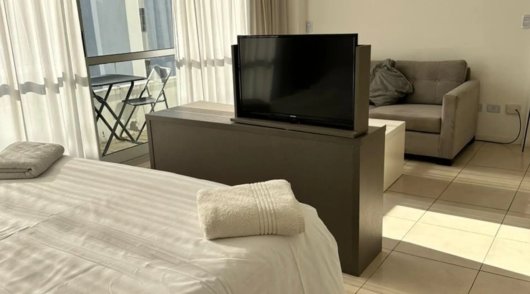 Enjoy a stylish experience at this centrally-located place. It is a small studio in a building that opened in March 2018. Up to two people can be accommodated. It has a double bed, table/desk, chairs, kitchen utensils, crockery, refrigerator with freezer and private bathroom with bathtub.