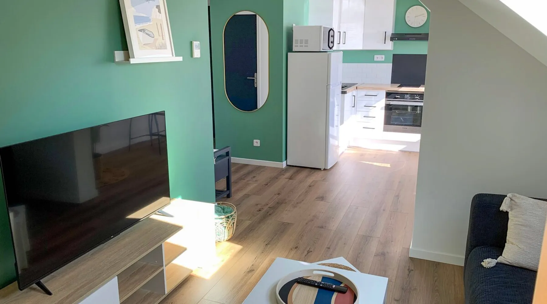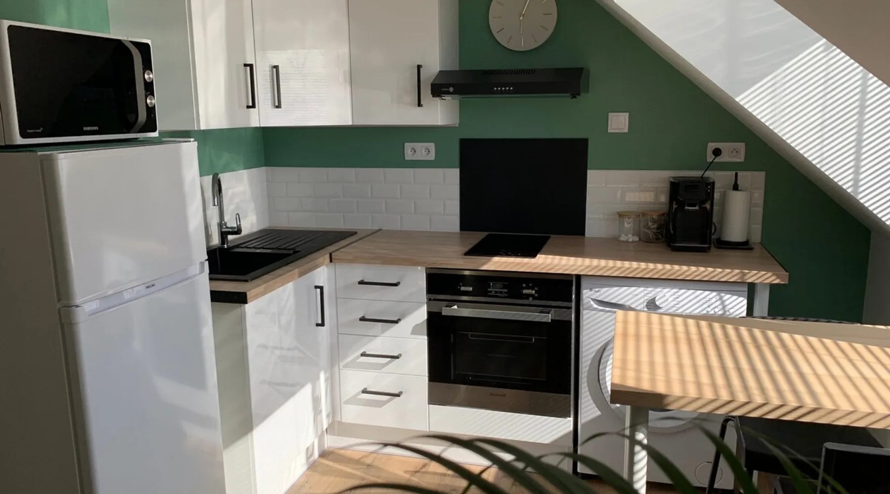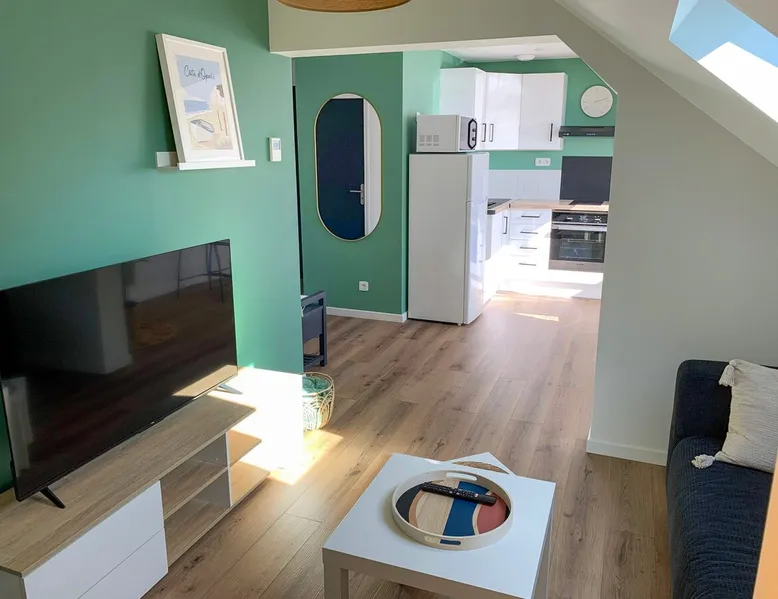 Welcome to our little cocoon. Apartment entirely created in 2023, new, comfortable and ultra-equipped to allow you to have a pleasant stay. Cozy, modern, minimalist and practical decor. Ideal office space for business travel and remote work. Close to Les Tintelleries train station 2 minutes from the ramparts of the Old Town with its Basilica, its crypts, its Castle Museum and its pretty alleys with undeniable charm 5 minutes from the city center 10-15 minutes from Nausicaa The space Nice and bright accommodation with spacious bedroom, separate bathroom and toilet. Very well insulated and soundproofed. Simple and uncluttered decor, timeless. Rated rental Vacation rental 2*. Office area in the living room (next to an ethernet socket), convenient for business travel and/or remote work. Apartment equipped with fiber with high-performance WiFi. Bedroom equipped with a high-end 160x200cm mattress and a spacious and very practical dressing room. Fully equipped kitchen: Coffee machine (Senseo) and pods, washing machine, fridge/freezer, oven, microwave, 2-burner hob and range hood. Dishes and many utensils available to help you cook in good conditions. 50"4K smart TV, Netflix subscription available. Cellar with many amenities (beach umbrella/fan/ironing board and iron/vacuum cleaner/cleaning kit) and very useful for storing your groceries, storing your suitcases and everything that clutters you during your stay. We will be happy to welcome you with your baby (0-2 years old). A crib with mattress + mattress pad and fitted sheet will be installed in the bedroom, a high chair will be installed in the kitchen and a changing mat is available in the cellar. A supplement of €20 will be requested after your booking is confirmed. This package covers your entire stay, starting from 1 night. Other things to note Apartment located on the third and top floor of an old building with no elevator, this accommodation is not suitable for people with reduced mobility. Our apartment can accommodate 2 guests + 1 baby. It is possible to come with your baby, a crib and a high chair will be installed and an extra €20 will be requested after validation of your reservation. This €20 package covers your entire stay (from 1 night) Depending on availability, check-in and check-out outside the fixed times, i.e. check-in at 4 p.m. and check-out at 10 a.m., are sometimes possible depending on the reservation schedule. Feel free to ask us at least 48 hours before your arrival directly by message to see if this is possible in our organization because we make it a point of honor to always offer an apartment that is very clean and welcoming regardless of the length of your stay. An additional fee of €20 will be requested and will allow you to check in before 4 p.m. or check out after 10 a.m. This additional package is to be paid via the platform.