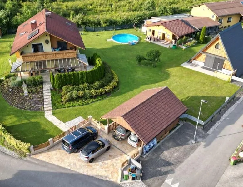 Wir vermieten ein einzigartiges 80m² großes Ferienhaus mit zwei getrennten Schlafzimmern für insgesamt 5 Personen, mit einer voll ausgestatteten Küche, einer Terrasse, einem Bad und einem Wohnzimmer. Die Mitbenützung vom unserem großen Garten & Pool (nicht eingezäunt, Aufsichtspflicht für Kinder) ist jederzeit möglich. Wir haben eine super Lage nähe Italien/Slowenien, der Stadt Villach, vielen Seen, Bergen und Skigebieten. Hund vorhanden - Haustiere auf Anfrage. In unserem Haushalt/Garten lebt eine 4 Jahre alte Vizsla Hündin die total liebenswert, aber sehr verspiel ist. Eure freundlichen Hunde sind auf Anfrage vorab möglich. Es gibt einen kostenlosen Parkplatz im Freien. Solltet ihr mit dem Motorrad kommen, richten wir im Carport Platz für euch und für Fahrräder gibt es bei Bedarf Platz im Geräteschuppen zum Einsperren. Ferienhaus zur Alleinnutzung. Garten, Pool und Gartenhütte zur gemeinsamen Mitbenützung. Vormittags bin ich berufstätig, Nachmittags zu Hause und gebe gerne Tipps etc. Mit dem Auto ist man in ca. 15-20 Minuten in Italien (Tarvis Markt zum Shoppen, Monte Lussari zum Wandern) und auch in der gleichen Zeit in Slowenien (Kranjska-Gora Casino, Skisprungschanze Planica). Zum Baden erreicht man in 15 Minuten den Faakersee oder in 30 Minuten den Pressegger/Ossiacher/Millstätter-See. Zum Wandern und Mountainbiken gibt es unzählige Berge in der Nähe. Das kleine Skigebiet Dreiländereck ist nur ca. 10 Minuten entfernt, die größere Gerlitze in ca. 30 min und das rießige Nassfeld in ca. 45 min. Die nächst größere Stadt Villach (und das Einkaufszentrum Atrio) ist in ca. 15 Minuten zu erreichen. Der Alpe-Adria-Radweg nach Italien führt nur ein paar Meter von uns entfernt vorbei. Zum GTI Treffen am Wörthersee sind es ca 30 min und zum Harley Treffen am Faakersee nur 15 min. Weitere Tipps können wir euch dann gerne auch vor Ort noch geben.. Am besten ist die Anreise mit dem Auto/Motorrad um flexibel zu sein. Der nächste Bahnhof ist in nur 10 Minuten zu Fuß erreichbar - Verbindungen zb nach Villach ca. 1xpro Stunde. Die Unterkunft liegt nur 500 m vom Radweg (R3 Villach-Italien) entfernt Haustiere sind auf Anfrage erlaubt, müssen sich aber natürlich bitte mit anderen Hunden problemlos verstehen. Wir verrechnen 30 € Endreinigung extra vor Ort.