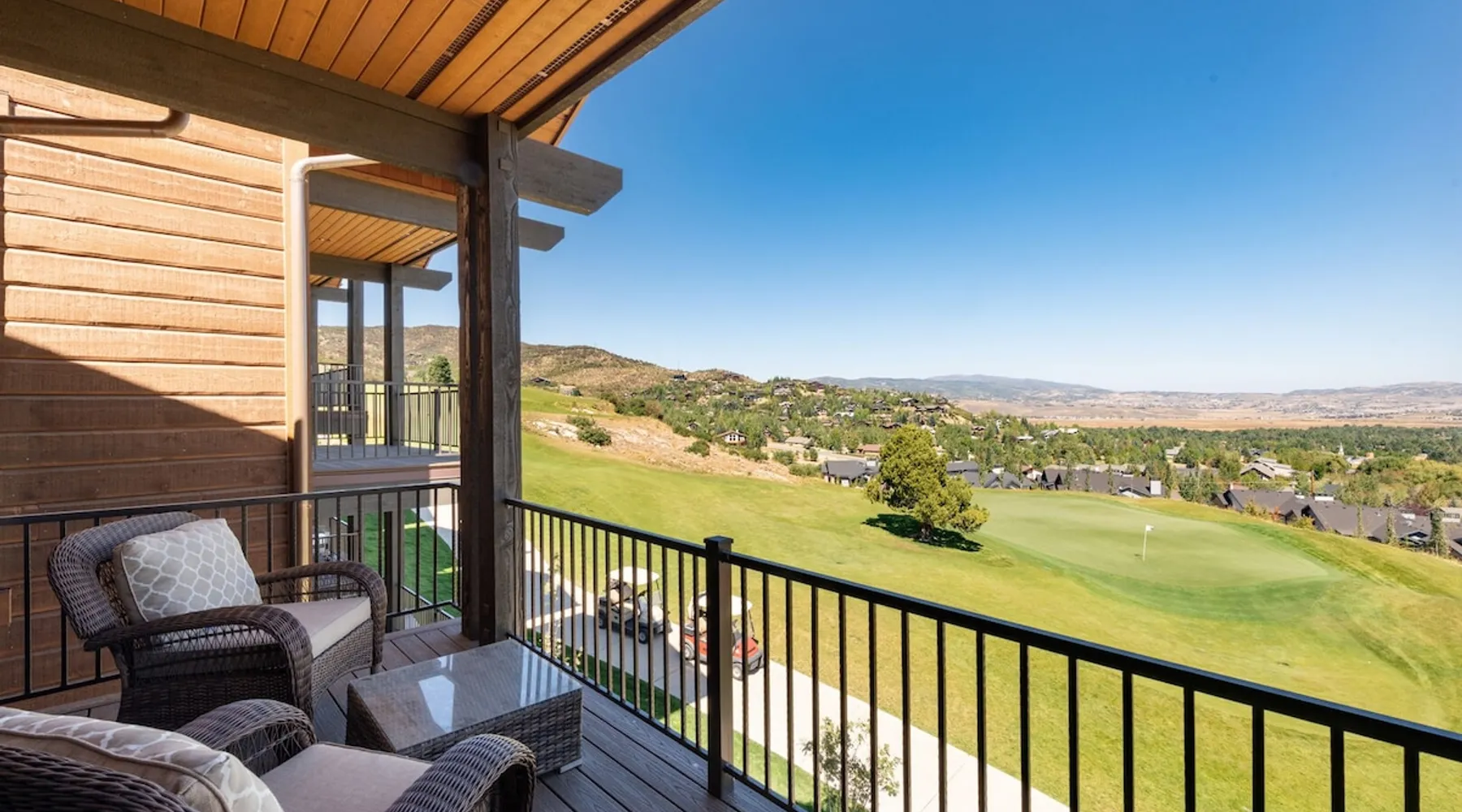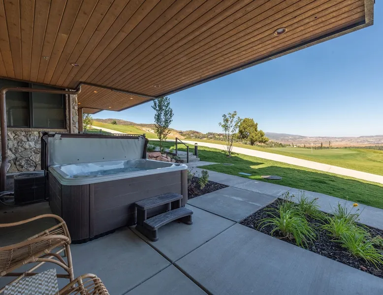 Located in the exclusive community of Juniper Landing this 4 bedroom+den, 5 bathroom, contemporary townhome with private hot tub offers an elegant home away in an ideal location. Directly on the Canyons Golf course, such offers superb panoramic views of the golf course and valley. Conveniently located, such is a short walk or complimentary shuttle ride to the Frostwood Gondola. The perfect place to enjoy all the best Park City has to offer. The space Located in the exclusive community of Juniper Landing this 4 bedroom+den, 5 bathroom, contemporary townhome offers an elegant home away in an ideal location. Directly on the Canyons Golf course, just off the 10th green, such offers superb panoramic views of the golf course and valley. Conveniently located, such is a short walk (0.2 miles, 5 minutes) or complimentary shuttle ride to the Frostwood Gondola, your gateway to Park City Mountains’ 7300 skiable acres. As a townhouse with private entrance, it is ideal for your social distancing. The perfect place to enjoy all the best Park City has to offer. The luxury residence offers the opportunity for wonderful gatherings of family and friends with plenty of room for everyone to spread out in ultimate comfort. You’ll appreciate the superb craftsmanship of the deluxe home, including multiple decks, patios and views. The heart of the three level home is the second level, relax in the living room, prepare feasts in the sumptuous kitchen and play games around the dining table. The fully equipped gourmet kitchen is appointed with high-end appliances, so bring the chef in the family and don’t forget the gas grill on the balcony, ideal for your favorite grill master to prepare socially-distant meals. Enjoy relaxing in the afternoon sun on the balcony year round, summers dine al-fresco, and both daytime and night enjoy the golf course and valley view. Lower level there is the family room/den, broad windows provide a spectacular view of the golf course and valley beyond, while large screen TV is available for movies, sporting events, previewing home videos and more. Ideal for mixed age groups, such provides a space distinct from the main living area for teens to gather, and kids to watch movies, while doubling as a 5th bedroom with its pull out sofa and full bath. As with all TVs in the home, the smart TVs support internet apps (Netflix, Hulu, etc.). The views from the room open up to the large patio outside with over-sized hot tub and relaxing seating, come late afternoon and evening share stories of the day while overlooking the twinkling lights and Juniper tree for which the community is named. The master bedroom, located on the top floor, is spacious and elegant. Fireplace warms the evening, while sofa and private balcony face the panoramic vista. King bed is provided facing the valley and golf course as well. The modern ensuite bathroom is designed to lavish you with double bowls, massive steam shower and large soaking tub. Luxury appointments go well beyond the master suite, second and third bedrooms providing warmly decorated sanctuaries with queen beds and seating. Modern ensuite baths are a given, and one of the bedrooms enjoys a private balcony. The fourth bedroom is comprised of one queen and two twin beds, thus making it ideal for up to four children, while with a queen such can also be used for by a couple. Bathroom is just outside in the hallway. All bedrooms have smart TVs supporting internet apps (Netflix, Hulu, etc.). All together the home sleeps 10 in bedrooms, or 12 when the lower level sleep sofa is used. Complementing the private hot tub and golf course, the intimate development has a gorgeous, uncrowded year-round outdoor heated pool (one of the best in the area), hot tub, and a fully equipped fitness room. Located in the exclusive community of Juniper Landing this 4 bedroom+den, 5 bathroom, contemporary townhome offers an elegant home away in an ideal location. Directly on the Canyons Golf course, just off the 10th green, such offers superb panoramic views of the golf course and valley. Conveniently located, such is a short walk (0.2 miles, 5 minutes) or complimentary shuttle ride to the Frostwood Gondola, your gateway to Park City Mountains’ 7300 skiable acres. As a townhouse with private entrance, it is ideal for your social distancing. The perfect place to enjoy all the best Park City has to offer. The luxury residence offers the opportunity for wonderful gatherings of family and friends with plenty of room for everyone to spread out in ultimate comfort. You’ll appreciate the superb craftsmanship of the deluxe home, including multiple decks, patios and views. The heart of the three level home is the second level, relax in the living room, prepare feasts in the sumptuous kitchen and play games around the dining table. The fully equipped gourmet kitchen is appointed with high-end appliances, so bring the chef in the family and don’t forget the gas grill on the balcony, ideal for your favorite grill master to prepare socially-distant meals. Enjoy relaxing in the afternoon sun on the balcony year round, summers dine al-fresco, and both daytime and night enjoy the golf course and valley view. Lower level there is the family room/den, broad windows provide a spectacular view of the golf course and valley beyond, while large screen TV is available for movies, sporting events, previewing home videos and more. Ideal for mixed age groups, such provides a space distinct from the main living area for teens to gather, and kids to watch movies, while doubling as a 5th bedroom with its pull out sofa and full bath. As with all TVs in the home, the smart TVs support internet apps (Netflix, Hulu, etc.). The views from the room open up to the large patio outside with over-sized hot tub and relaxing seating, come late afternoon and evening share stories of the day while overlooking the twinkling lights and Juniper tree for which the community is named. The master bedroom, located on the 
