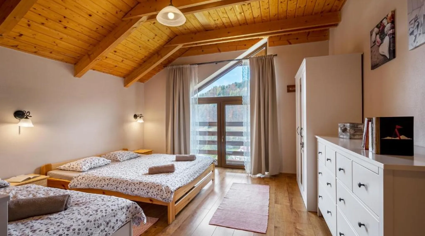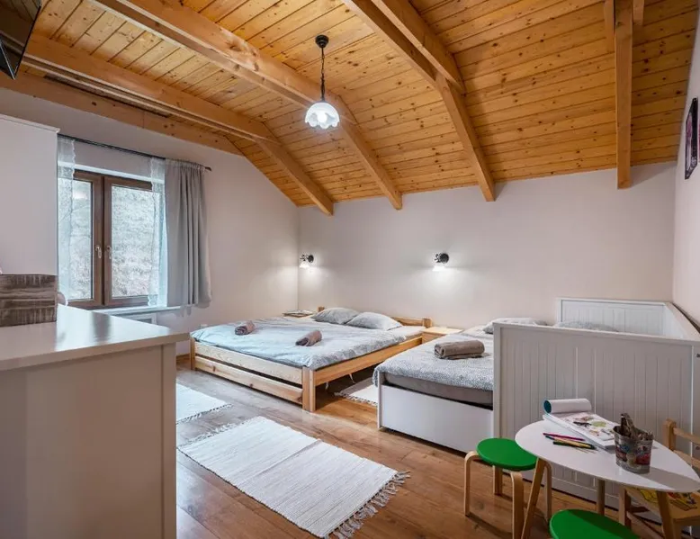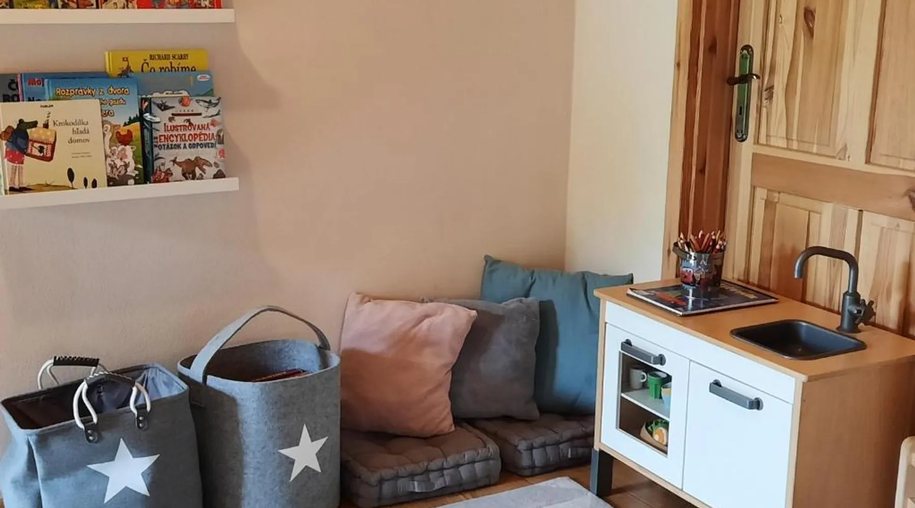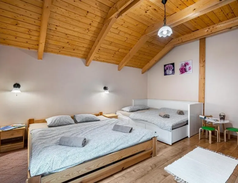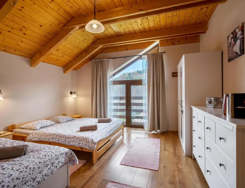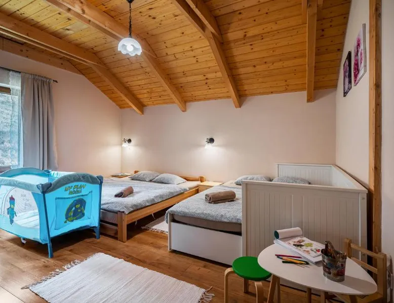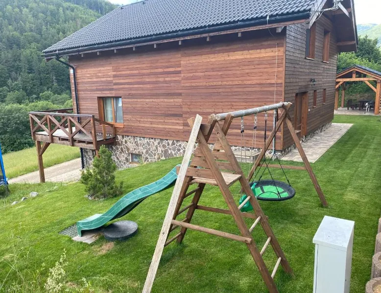 Accommodations Features: Chata Bystrá in Mýto pod Ďumbierom offers a holiday home with five bedrooms and two bathrooms. The property includes a spacious living room and family rooms, ensuring comfort for all guests. Outdoor Spaces: Guests can enjoy a garden and terrace with mountain views. The terrace is equipped with outdoor furniture and a barbecue, perfect for relaxing outdoors. Amenities: The holiday home provides free WiFi, a fully equipped kitchen, and a washing machine. Additional amenities include streaming services, a fireplace, and a dishwasher. Location and Attractions: Located 45 mi from Poprad-Tatry Airport, Chata Bystrá is 11 mi from Chopok mountain and 24 mi from Liptov Castle. The surrounding area offers scenic mountain views and various activities. This holiday home provides a fireplace. Guests will find a stovetop, a refrigerator, a dishwasher and kitchenware in the fully equipped kitchen. The holiday home also provides guests with a barbecue. This holiday home includes a flat-screen TV with streaming services, a shared bathroom as well as a terrace with garden views. The unit offers 9 beds.