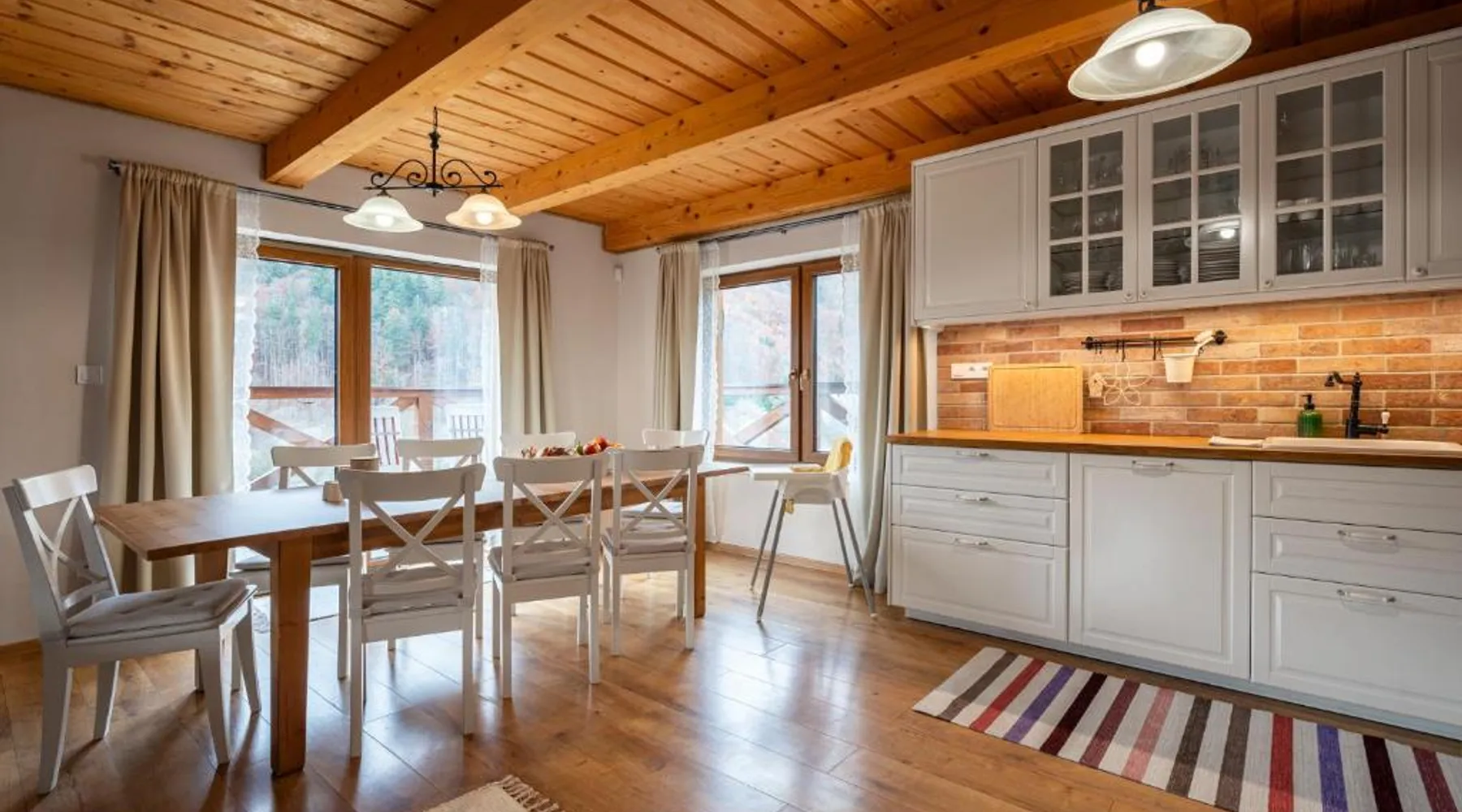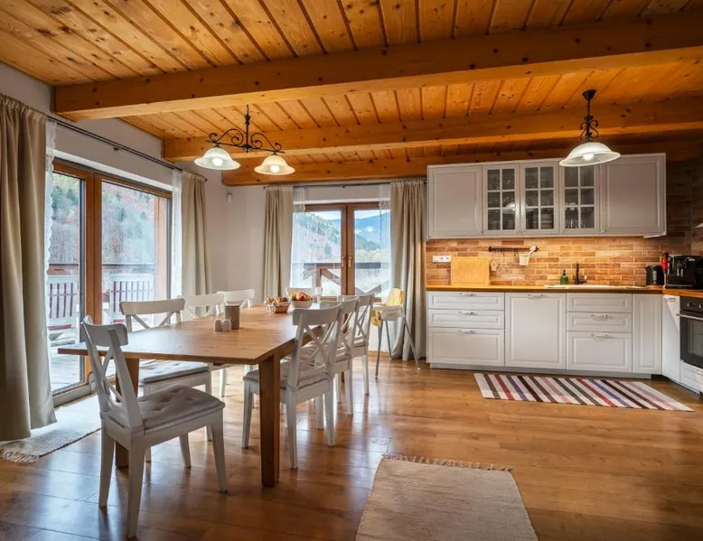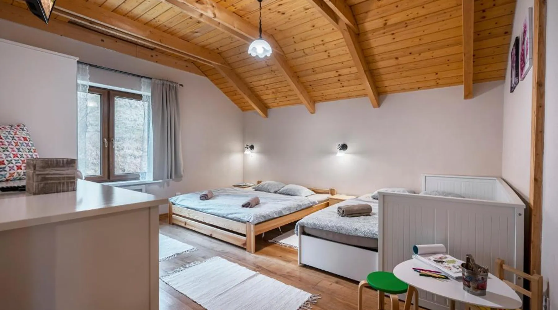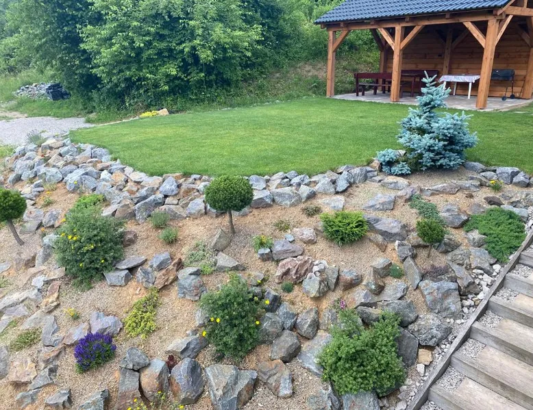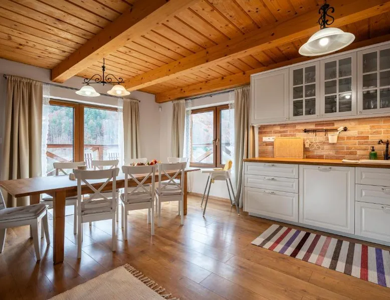 Accommodations Features: Chata Bystrá in Mýto pod Ďumbierom offers a holiday home with five bedrooms and two bathrooms. The property includes a spacious living room and family rooms, ensuring comfort for all guests. Outdoor Spaces: Guests can enjoy a garden and terrace with mountain views. The terrace is equipped with outdoor furniture and a barbecue, perfect for relaxing outdoors. Amenities: The holiday home provides free WiFi, a fully equipped kitchen, and a washing machine. Additional amenities include streaming services, a fireplace, and a dishwasher. Location and Attractions: Located 45 mi from Poprad-Tatry Airport, Chata Bystrá is 11 mi from Chopok mountain and 24 mi from Liptov Castle. The surrounding area offers scenic mountain views and various activities. This holiday home provides a fireplace. Guests will find a stovetop, a refrigerator, a dishwasher and kitchenware in the fully equipped kitchen. The holiday home also provides guests with a barbecue. This holiday home includes a flat-screen TV with streaming services, a shared bathroom as well as a terrace with garden views. The unit offers 9 beds.