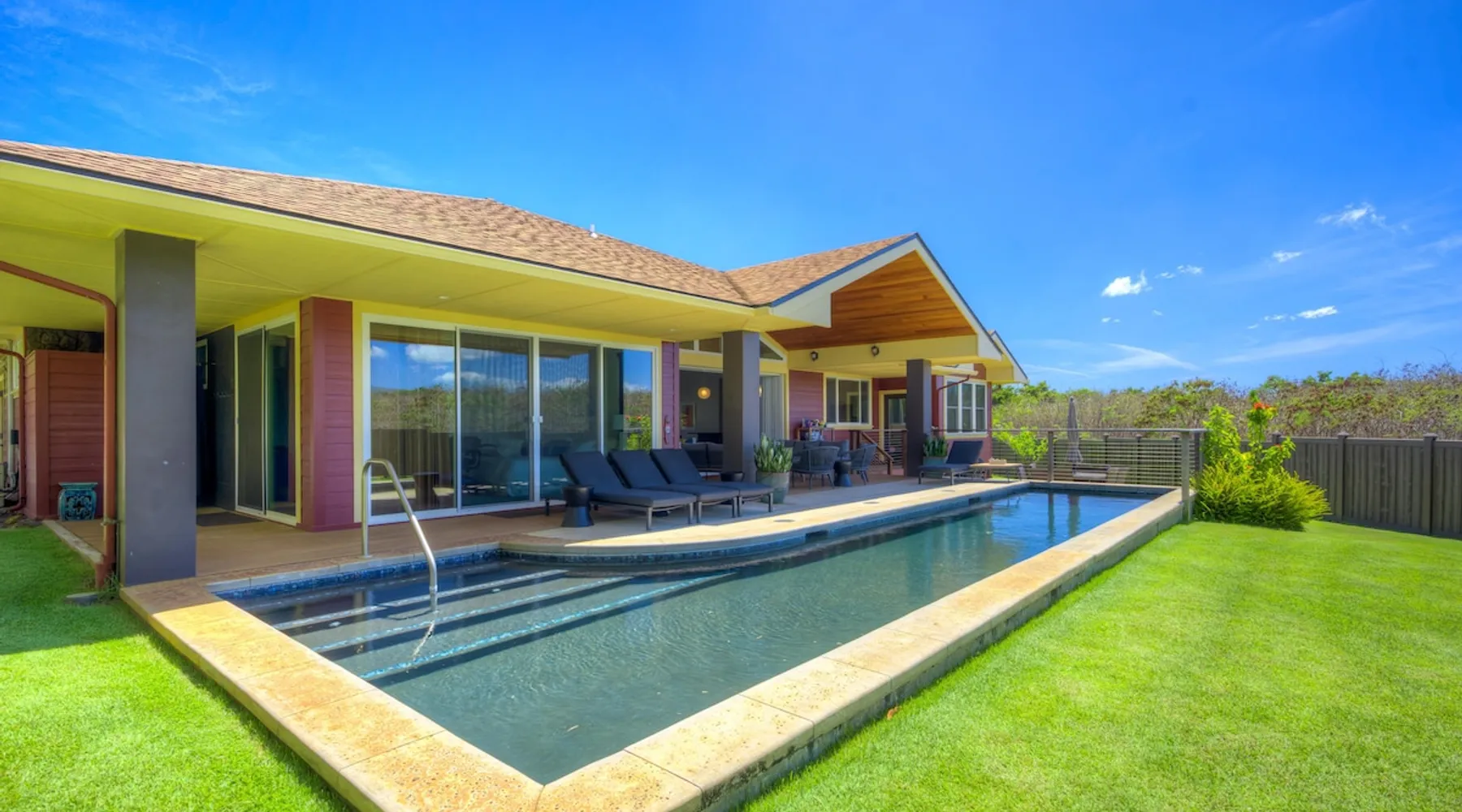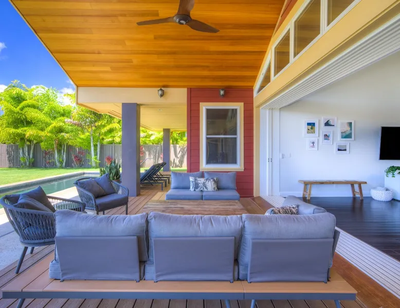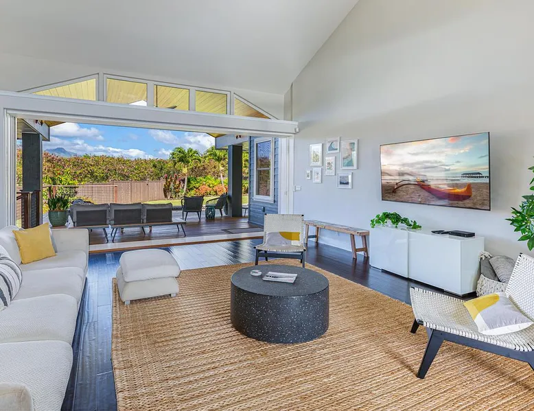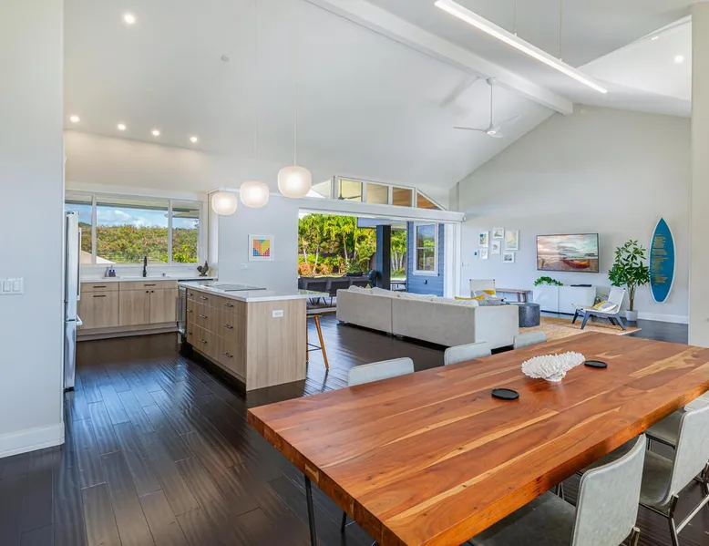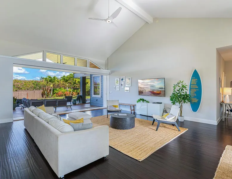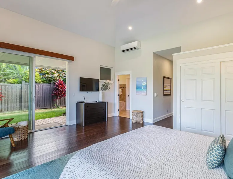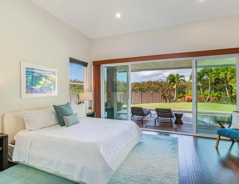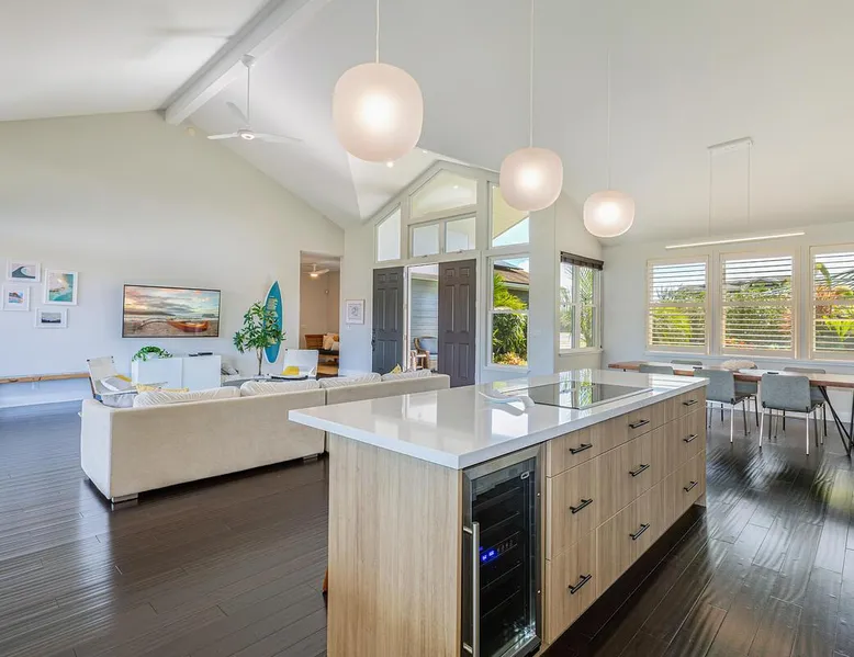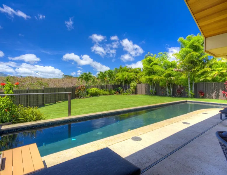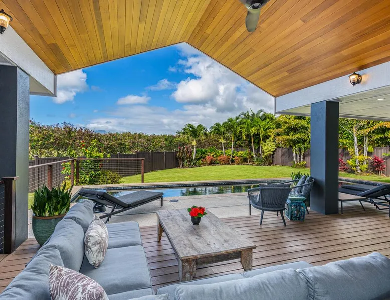 Hawaii Life Rentals Presents Nakoa Kai Exquisite three-bedroom vacation home is located in the heart of sunny Poipu, swimming pool, lovely barbeque area, outdoor lava rock shower, and a large, fenced yard. The space Nestled in the back of a private cul-de-sac, this exquisite three-bedroom vacation home is located in the heart of sunny Poipu, walking distance to beautiful white sand beaches and the shops and restaurants of Kukuiula. Sixteen-foot glass-panel pocket doors open to an expansive outdoor covered lanai which features a black bottom swimming pool, lovely barbeque area, outdoor lava rock shower, and a large, fenced yard. This is indoor/outdoor living at it’s finest! Beautiful cathedral ceilings give this home a feeling of grandeur from the moment you step inside. The expansive chef’s kitchen features a breakfast bar and plenty of space to spread out. There is indoor dining for six as well as an outdoor, covered dining table for eight. The entertainment area flows seamlessly from the the kitchen and offers up the perfect space to watch a movie on those rare, rainy days. Featuring modern tropical décor and local surf art, this home truly showcases island living. All three bedrooms have cold A/C and king-sized beds. Two of the bedrooms are spacious master suites on respective ends of the home and feature en-suite full bathrooms. The bigger master suite has sliding doors that lead to a lanai off the pool area and the bathroom has a double vanity, jetted tub, and walk-in shower. Some extra items the home includes - Surfboards, 4 bikes, boogie boards, beach chairs, umbrellas, beach towels, and a pack-n-play! This home is located in a quaint neighborhood and is just a stone’s throw from some of Kauai’s finest beaches and restaurants. Enjoy snorkeling in the calm, protected cove at Poipu Beach before relaxing at Keoki's Paradise for Hawaiian fare and aloha-hour drinks. End the day browsing the charming stores at The Shops at Kukui‘ula. The south shore of Kauai is also the gateway to Waimea Canyon and historic Hanapepe town. PLEASE NOTE THE POOL IS NOT HEATED After spending the day exploring this island, you’ll truly appreciate unwinding in this immaculate vacation retreat! Hawaii Life Rentals is a locally owned, licensed real estate company with rentals on Kauai, Maui, Oahu, and Hawaii. We offer on-island personal assistance and Concierge services. Rates do not include taxes, cleaning and applicable fees. Hawaii Life/VRBO bookings: Guests must sign a rental contract within 48 hours of booking to confirm the reservation. TA-135-782-2464-01 TMK-280311170000 Registration Details 280311170000, TA-135-782-2464-01