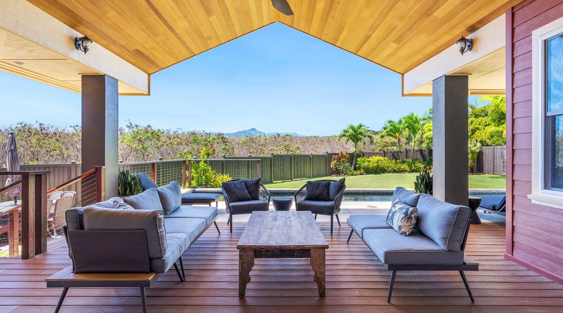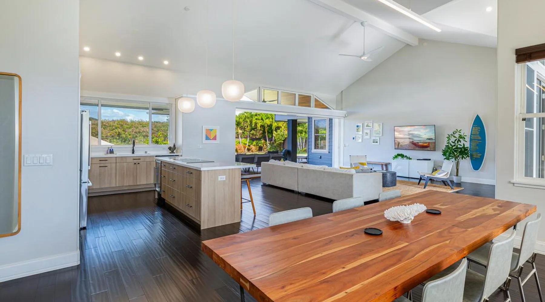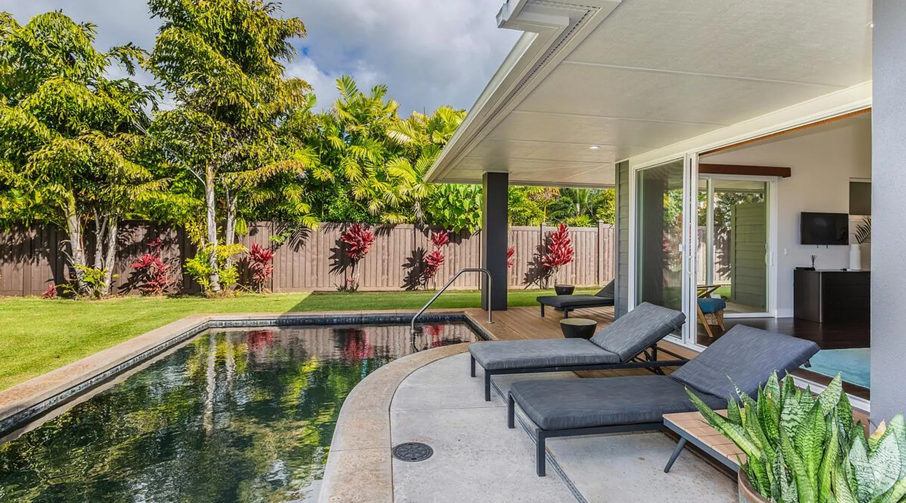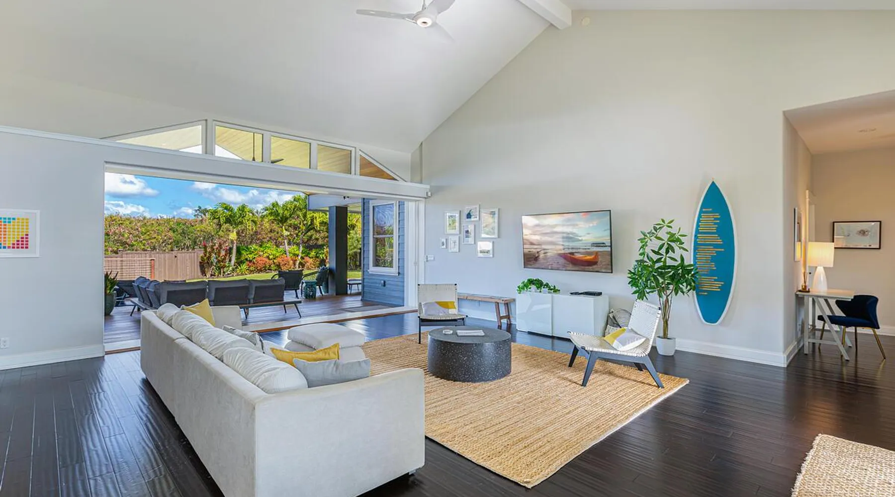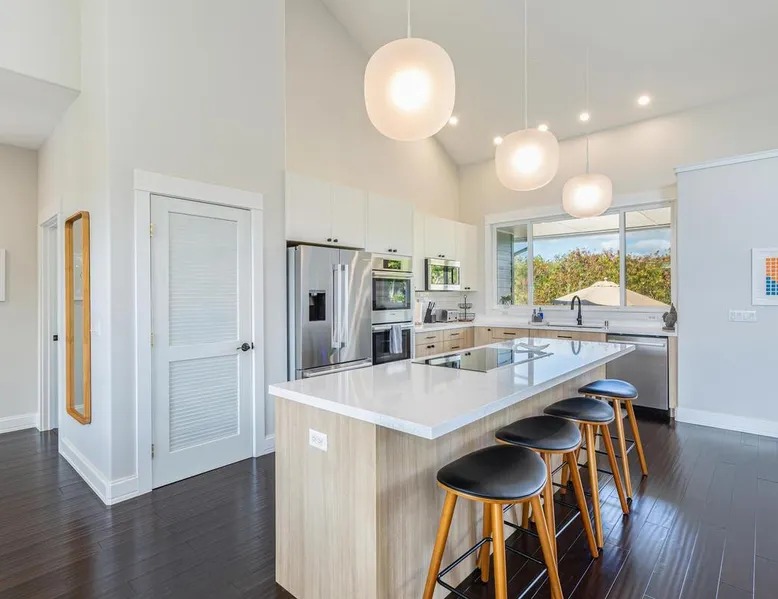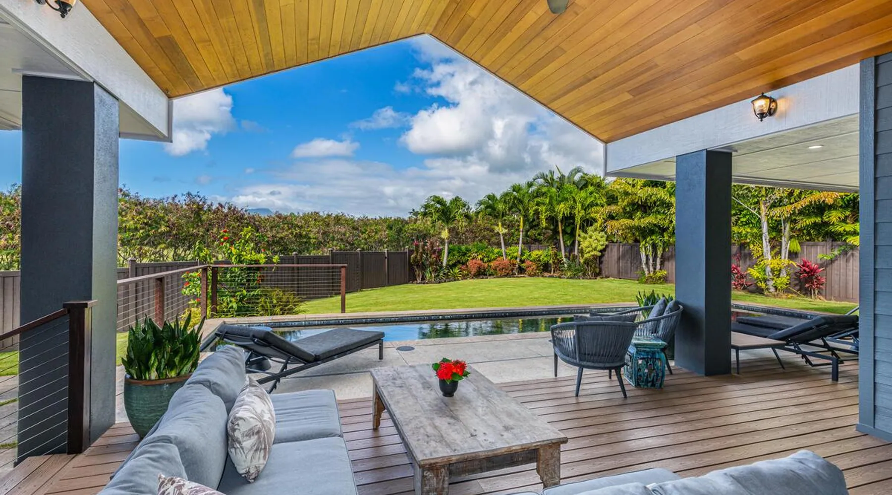 Hawaii Life Rentals Presents Nakoa Kai Exquisite three-bedroom vacation home is located in the heart of sunny Poipu, swimming pool, lovely barbeque area, outdoor lava rock shower, and a large, fenced yard. The space Nestled in the back of a private cul-de-sac, this exquisite three-bedroom vacation home is located in the heart of sunny Poipu, walking distance to beautiful white sand beaches and the shops and restaurants of Kukuiula. Sixteen-foot glass-panel pocket doors open to an expansive outdoor covered lanai which features a black bottom swimming pool, lovely barbeque area, outdoor lava rock shower, and a large, fenced yard. This is indoor/outdoor living at it’s finest! Beautiful cathedral ceilings give this home a feeling of grandeur from the moment you step inside. The expansive chef’s kitchen features a breakfast bar and plenty of space to spread out. There is indoor dining for six as well as an outdoor, covered dining table for eight. The entertainment area flows seamlessly from the the kitchen and offers up the perfect space to watch a movie on those rare, rainy days. Featuring modern tropical décor and local surf art, this home truly showcases island living. All three bedrooms have cold A/C and king-sized beds. Two of the bedrooms are spacious master suites on respective ends of the home and feature en-suite full bathrooms. The bigger master suite has sliding doors that lead to a lanai off the pool area and the bathroom has a double vanity, jetted tub, and walk-in shower. Some extra items the home includes - Surfboards, 4 bikes, boogie boards, beach chairs, umbrellas, beach towels, and a pack-n-play! This home is located in a quaint neighborhood and is just a stone’s throw from some of Kauai’s finest beaches and restaurants. Enjoy snorkeling in the calm, protected cove at Poipu Beach before relaxing at Keoki's Paradise for Hawaiian fare and aloha-hour drinks. End the day browsing the charming stores at The Shops at Kukui‘ula. The south shore of Kauai is also the gateway to Waimea Canyon and historic Hanapepe town. PLEASE NOTE THE POOL IS NOT HEATED After spending the day exploring this island, you’ll truly appreciate unwinding in this immaculate vacation retreat! Hawaii Life Rentals is a locally owned, licensed real estate company with rentals on Kauai, Maui, Oahu, and Hawaii. We offer on-island personal assistance and Concierge services. Rates do not include taxes, cleaning and applicable fees. Hawaii Life/VRBO bookings: Guests must sign a rental contract within 48 hours of booking to confirm the reservation. TA-135-782-2464-01 TMK-280311170000 Registration Details 280311170000, TA-135-782-2464-01